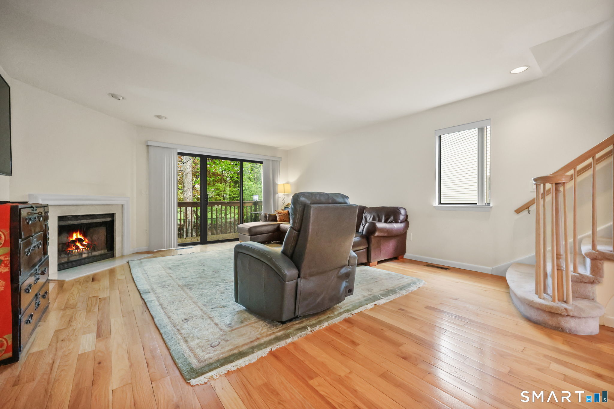 Welcome to this beautifully maintained end-unit townhouse located in the desirable Chesterfield community of Stamford, CT. This spacious home offers 2 bedrooms, 2.5 bathrooms, and a versatile multi-level layout perfect for modern living. The main level features a bright and open living room and dining room combination with hardwood floors and a glass slider leading to a private deck-ideal for relaxing or entertaining. The kitchen is equipped with stainless steel appliances, including a refrigerator and dishwasher, and a convenient half bath completes this level. Upstairs, the second floor is fully carpeted and includes two generously sized bedrooms. The primary suite boasts a full en-suite bathroom with both a shower stall and a jacuzzi tub. The second bedroom features a Jack and Jill bathroom for added convenience. The third floor offers a charming loft space with carpeting and skylights, perfect for a home office, guest area, or additional living space. The finished lower level provides even more flexibility with laminate flooring, a full bathroom, closet space, washer and dryer hookup, and sliders that open to a private patio. This level also offers direct access to a one-car garage. Residents of the Chesterfield community enjoy a quiet setting with amenities including a pool. Conveniently located close to downtown Stamford, shopping, restaurants, hospitals, and with easy access to I-95 and the Merritt Parkway, this home offers both comfort and accessibility