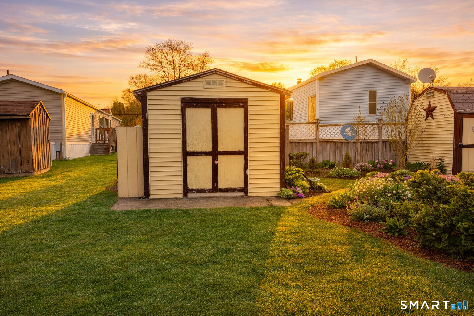 One of the best values in Sunny Waters Mobile Home Park, this extensively improved home offers a rare combination of meaningful upgrades, efficiency, and affordability. Located in a convenient central location within the community, the property has benefited from substantial recent improvements including new interior paneling and insulation, reinforced subflooring as needed, new flooring throughout, replacement of old copper plumbing with PEX, and heat tape installed laterally and longitudinally for added cold-weather protection. Additional updates include new exterior steps and railing plus an updated electrical panel. These improvements create a home that feels more secure, more comfortable, and more thoughtfully maintained than many comparable options. Two included sheds provide workshop potential and approximately 140 square feet of extra storage. Whether you are looking for an alternative to renting or a manageable, lower-maintenance lifestyle, this property presents an excellent opportunity. Conveniently located near shopping, restaurants, medical facilities, and I-395 for easy access to Electric Boat, Pfizer, and the Sub Base. Served by Norwich Public Utilities, a feature many buyers appreciate. Park approval required.