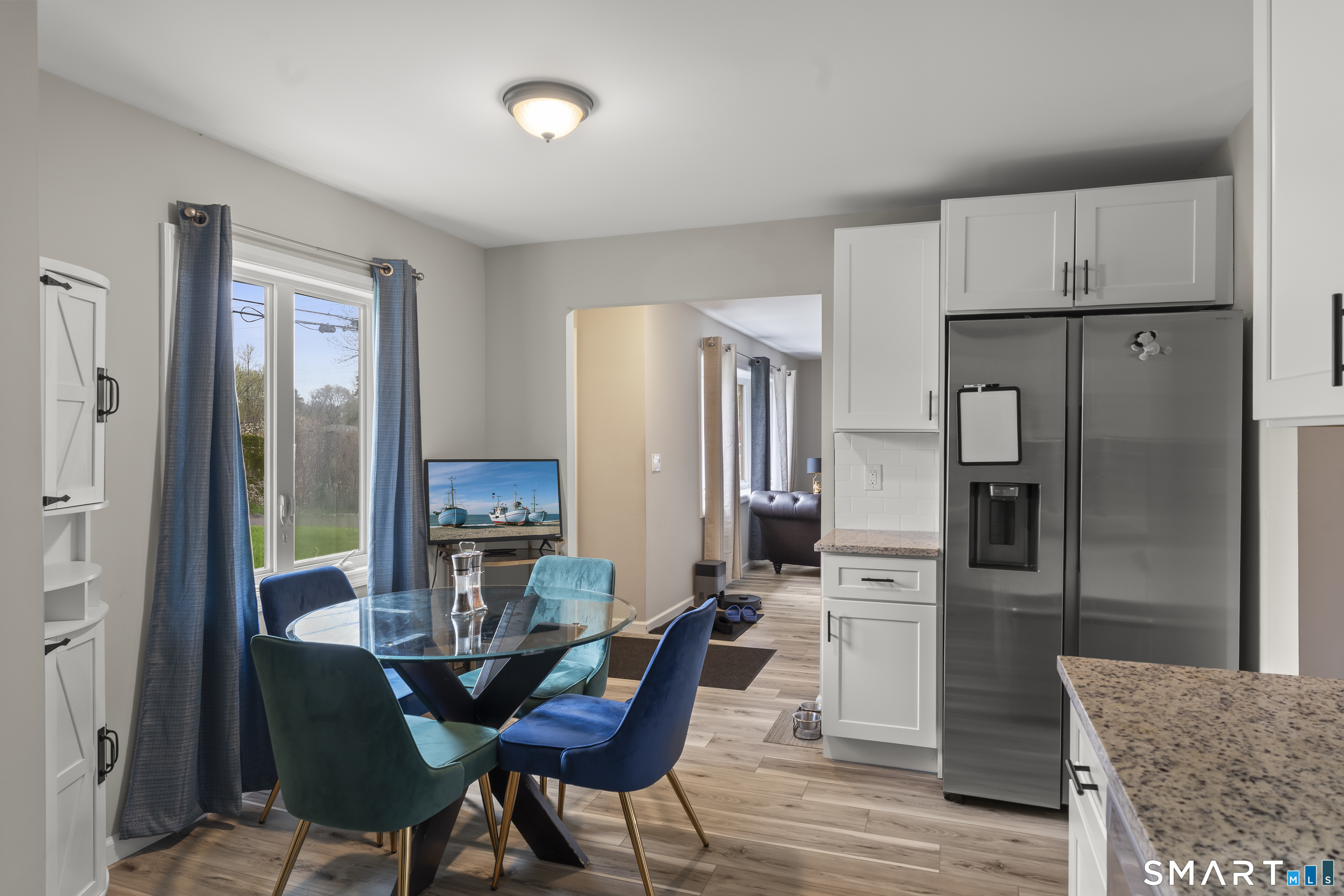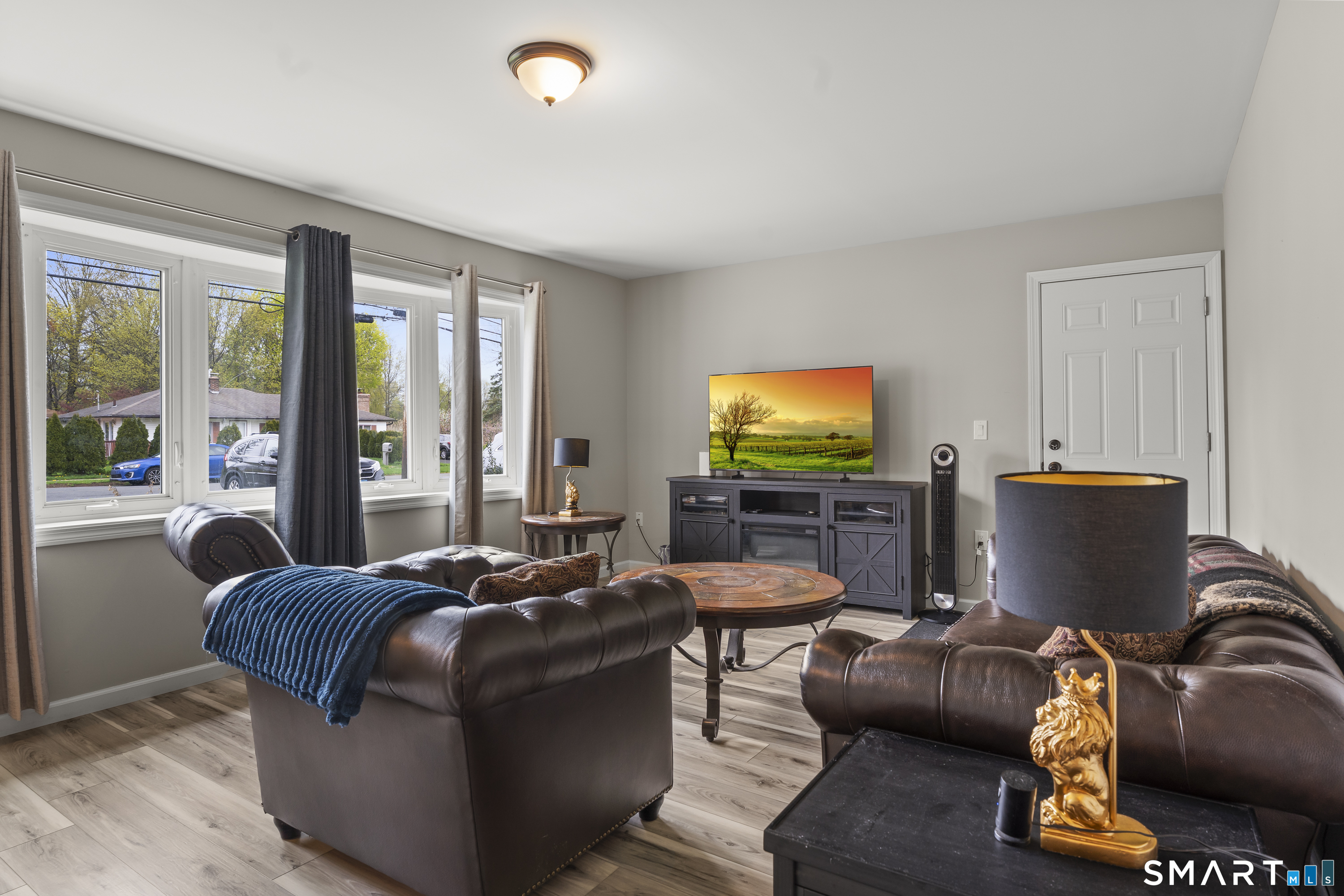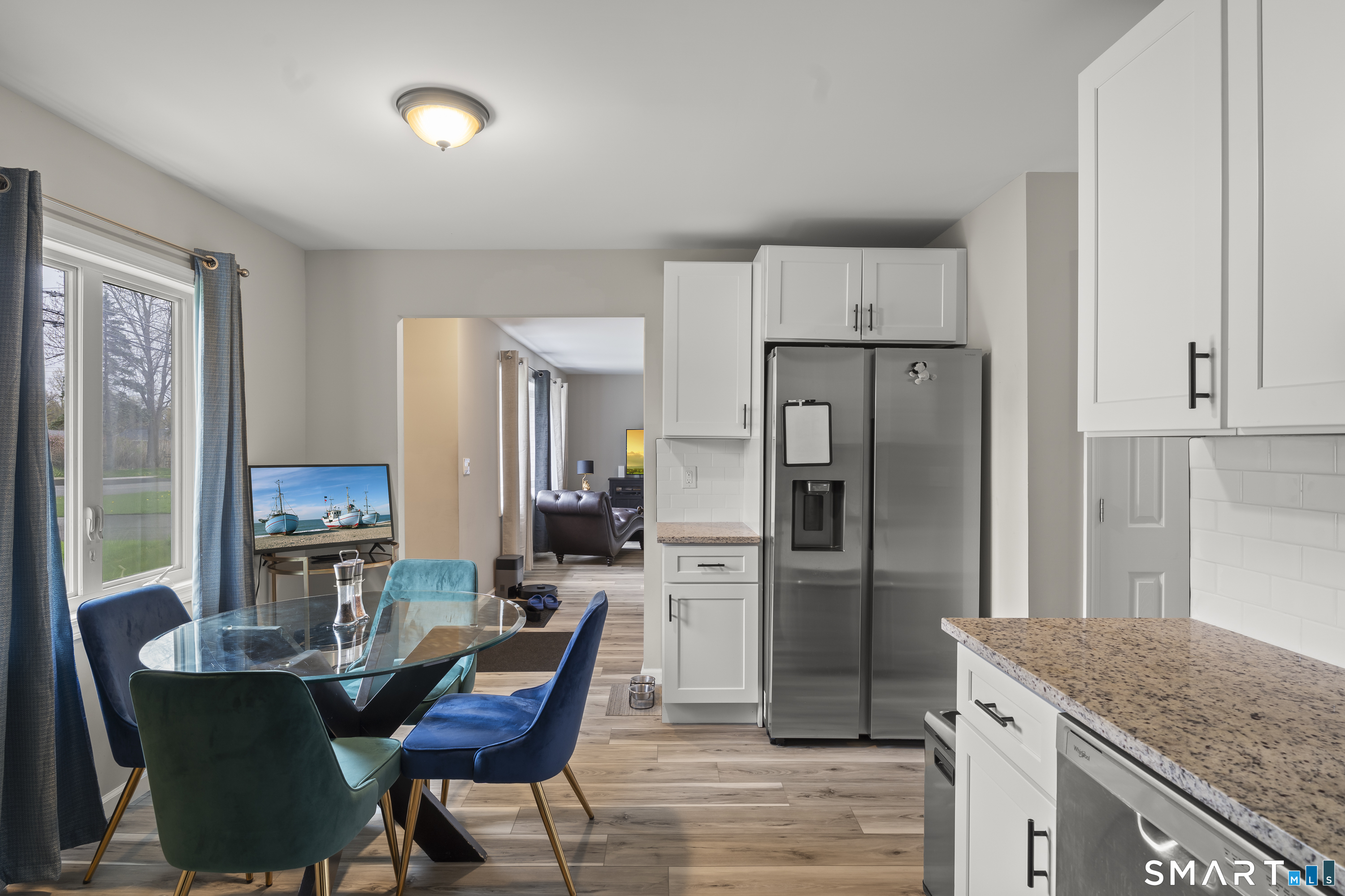 A very well-maintained ranch, renovated less than two years ago, presents a modern and inviting exterior that showcases its updated features. This charming single-story home includes three spacious bedrooms, providing comfortable living spaces. The bathroom is stylishly renovated, featuring contemporary fixtures and finishes. Inside, the design is open and bright, with a seamless flow between the living room and dining areas, enhanced by large windows that allow natural light to pour in. The kitchen is equipped with modern appliances, sleek countertops, and ample cabinetry, making it both functional and aesthetically pleasing. Central air conditioning and gas heating ensure year-round comfort, providing an ideal environment regardless of the season. The home is situated on a well-kept lot, offering a manageable outdoor space for relaxation or entertaining. Overall, this house combines modern renovations with practical features, making it a perfect choice for anyone looking for a comfortable and stylish living environment.
