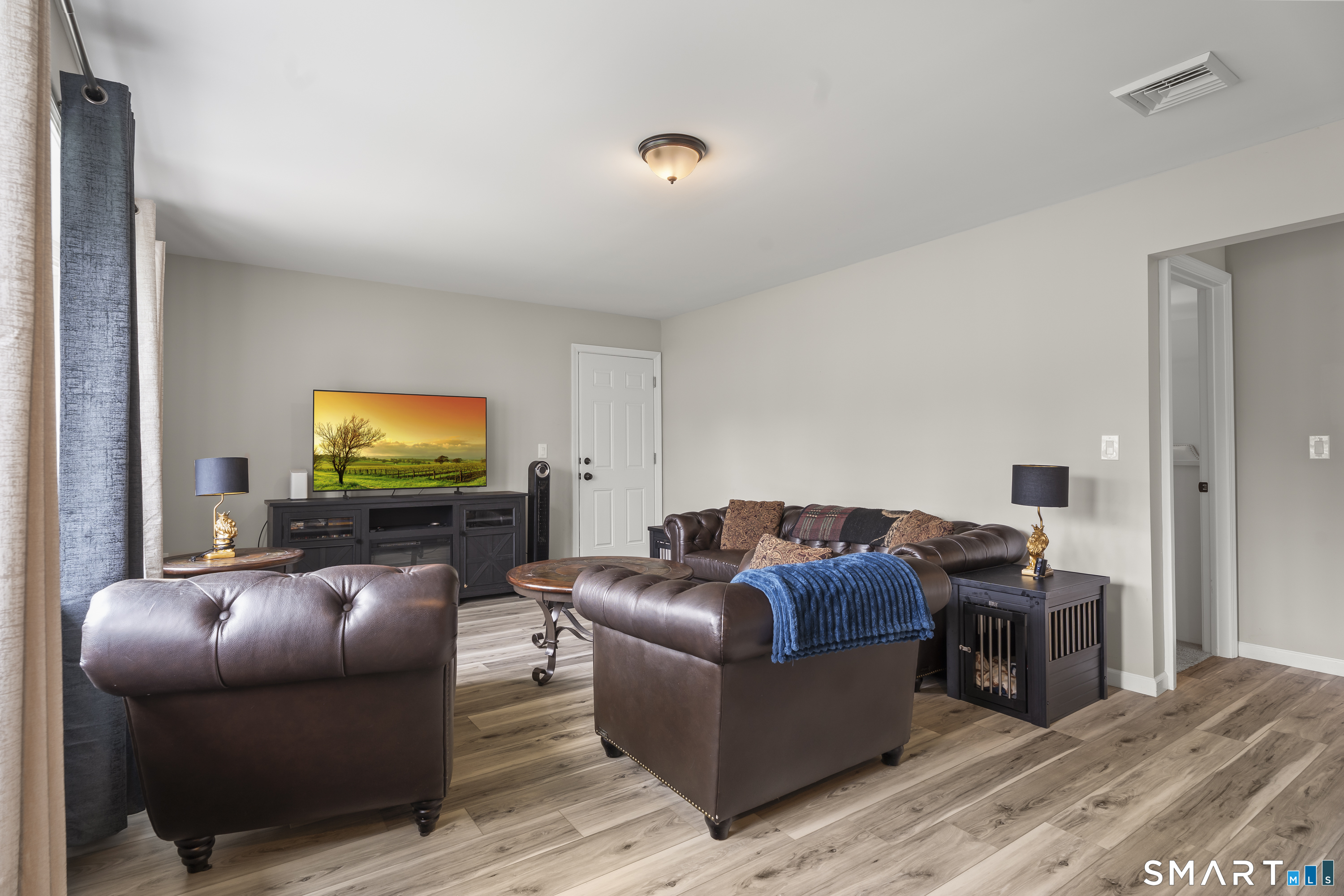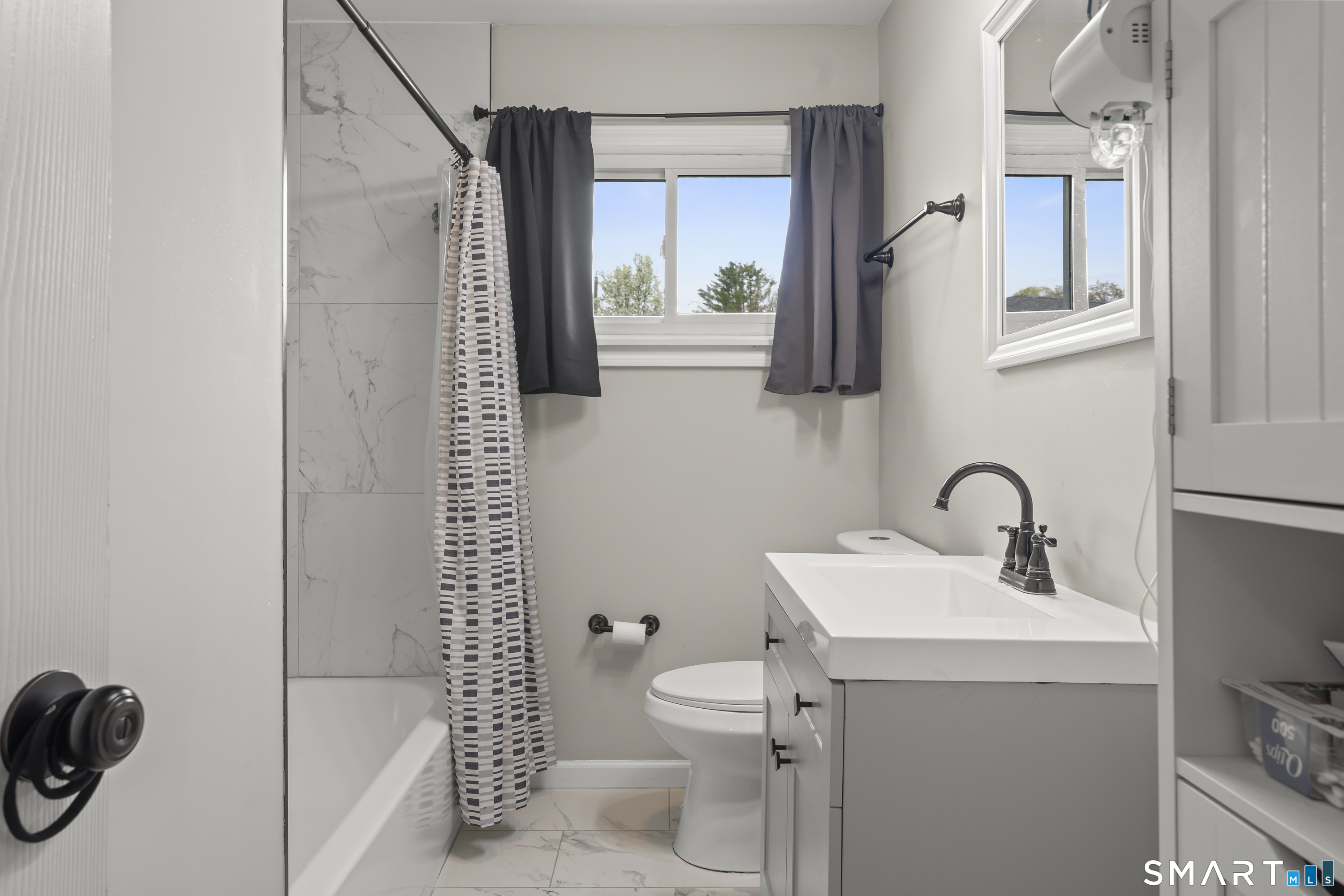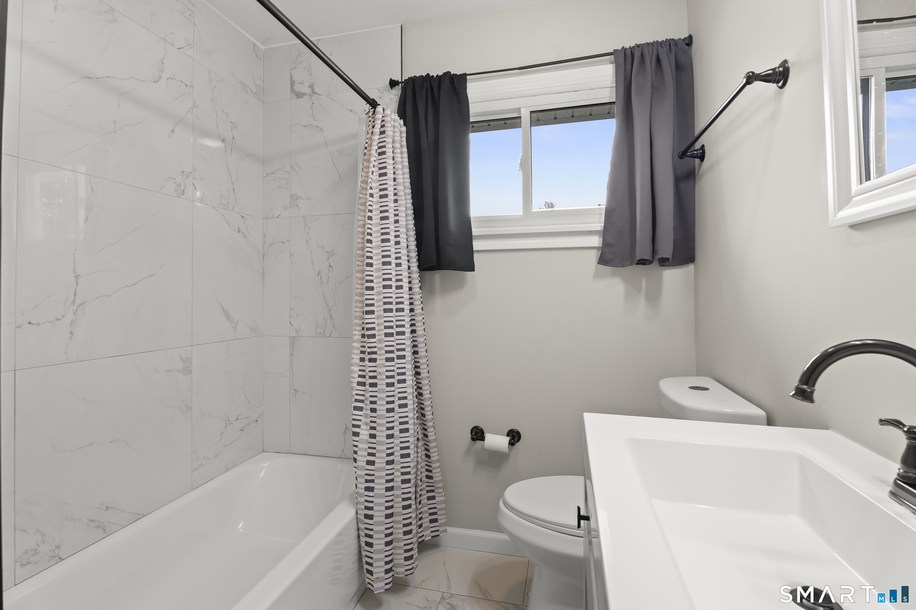 A very well-maintained ranch, renovated less than two years ago, presents a modern and inviting exterior that showcases its updated features. This charming single-story home includes three spacious bedrooms, providing comfortable living spaces. The bathroom is stylishly renovated, featuring contemporary fixtures and finishes. Inside, the design is open and bright, with a seamless flow between the living room and dining areas, enhanced by large windows that allow natural light to pour in. The kitchen is equipped with modern appliances, sleek countertops, and ample cabinetry, making it both functional and aesthetically pleasing. Central air conditioning and gas heating ensure year-round comfort, providing an ideal environment regardless of the season. The home is situated on a well-kept lot, offering a manageable outdoor space for relaxation or entertaining. Overall, this house combines modern renovations with practical features, making it a perfect choice for anyone looking for a comfortable and stylish living environment.