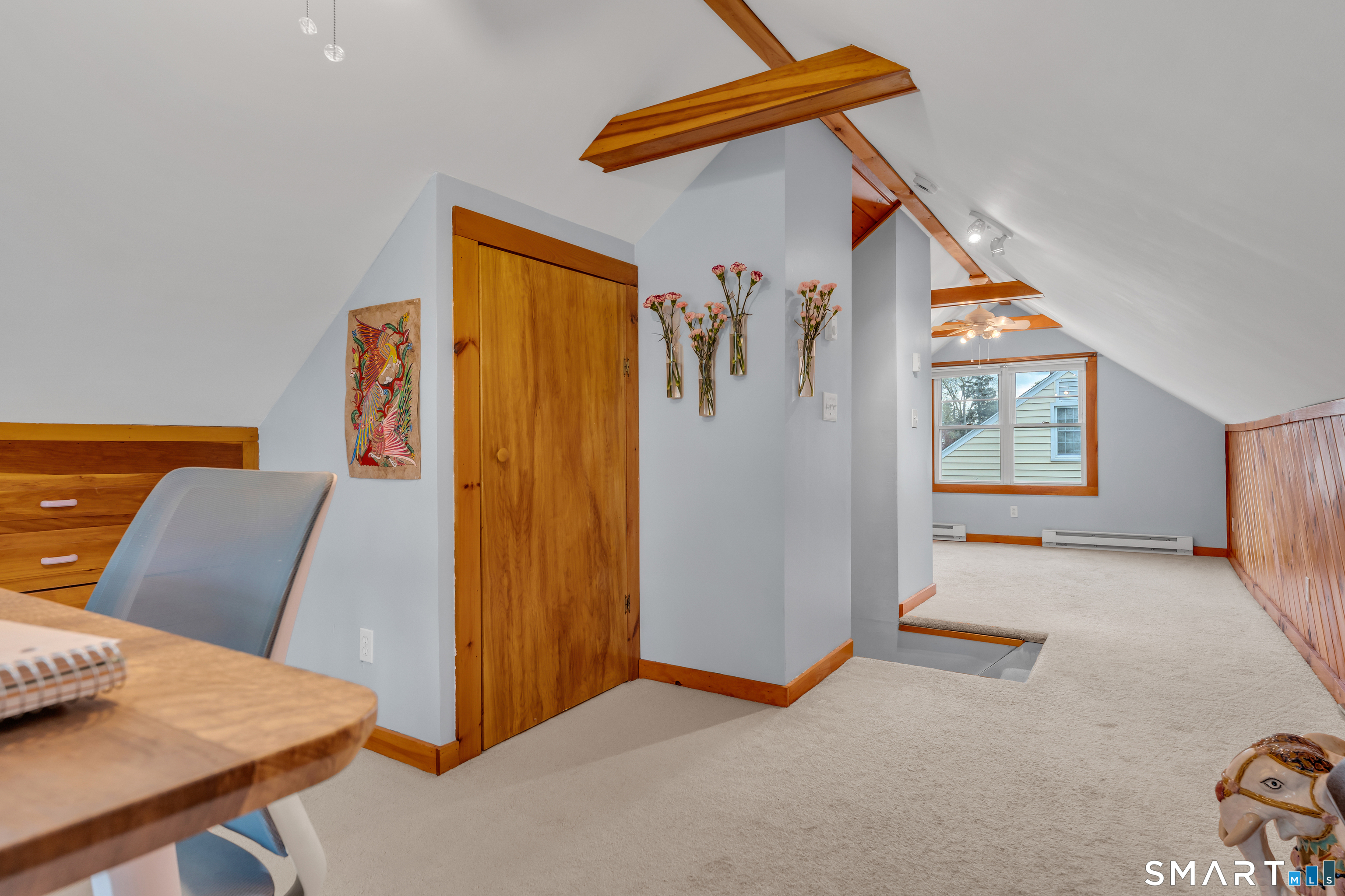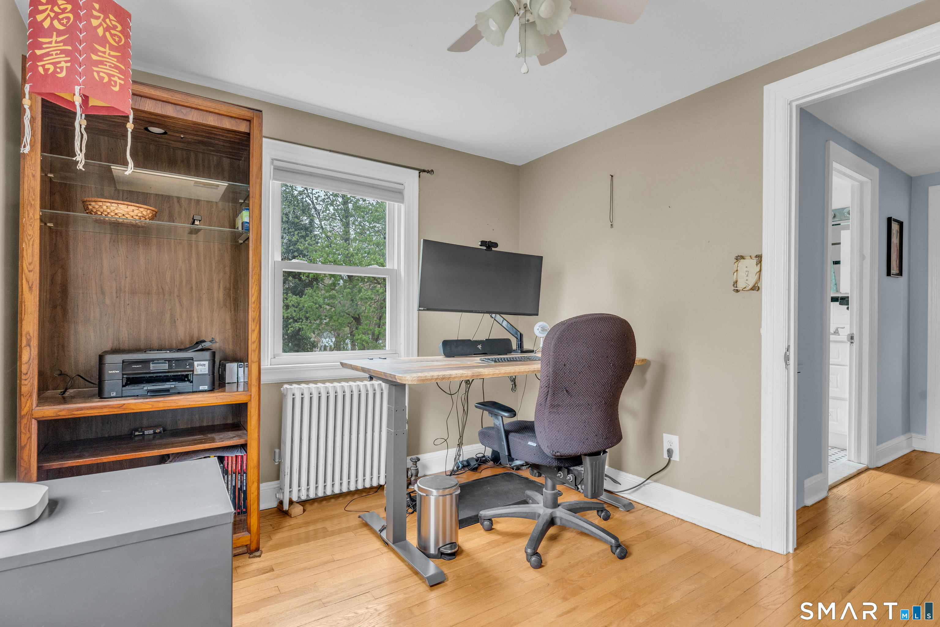 Charming 3+ bedroom Colonial set on a quiet street in North Haven, conveniently located near shopping, highways, and the bus line. This inviting home features a living room with built-ins and a cozy fireplace, opening to a spacious screened-in porch overlooking a private yard-perfect for relaxing or entertaining. The updated kitchen flows seamlessly into the dining room, creating an ideal layout for everyday living. A half bath and access to a finished lower level complete the main floor. Upstairs, the primary bedroom offers a walk-in closet, accompanied by two additional bedrooms and a full bath. The third floor provides true flex space-ideal for two home offices, a den and office combination, or even guest accommodations. Let your imagination shape this versatile area to fit your needs. The finished lower level adds almost 400 additional sq. ft. Enjoy the lovely yard, perfect for gardening, gatherings, or quiet moments outdoors. Walk to nearby favorites like Dairy Queen and the High Lane Club. Close to Yale, Hospitals, QU, Farmington Canal & Sleeping Giant. Come, make this wonderful home your own!