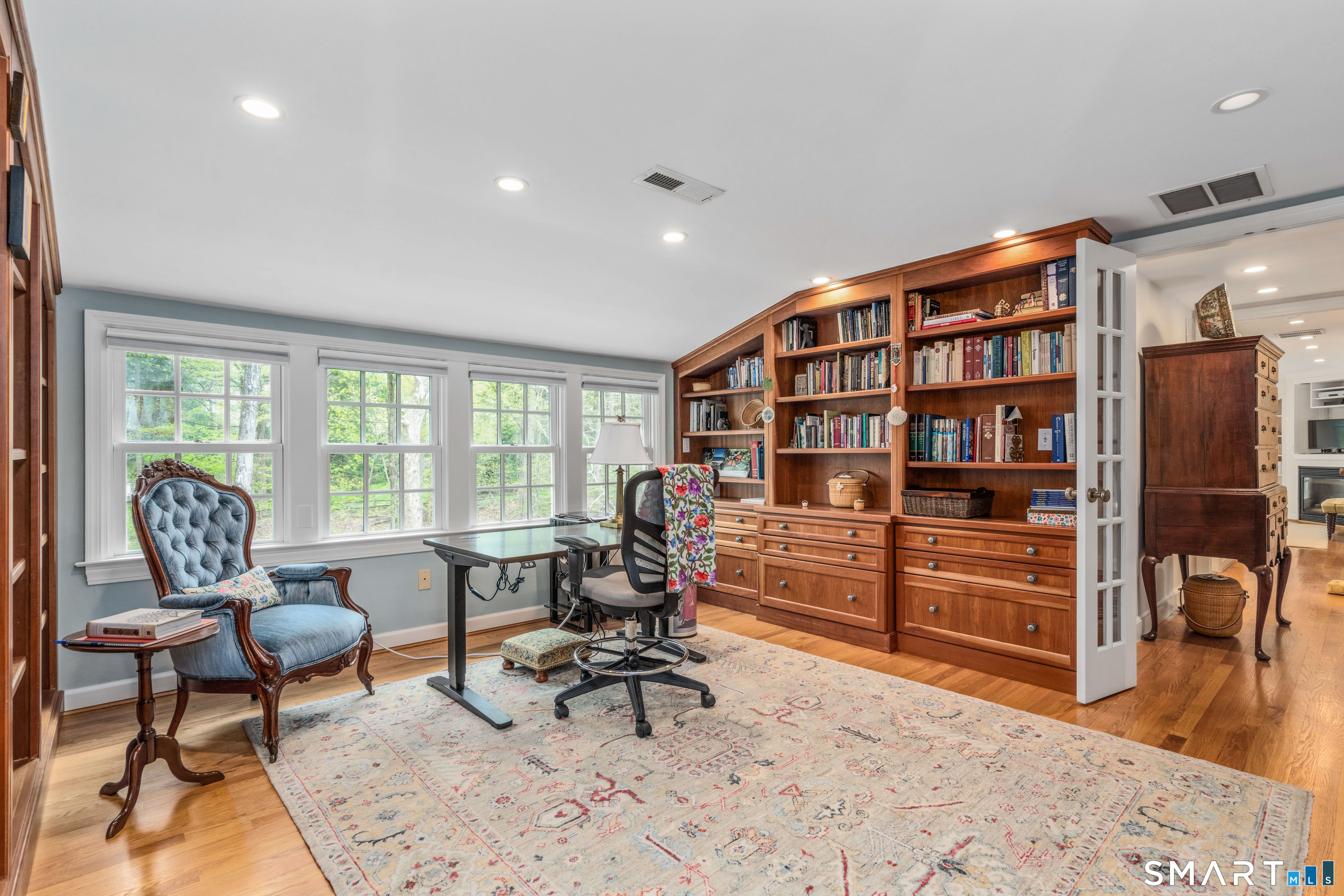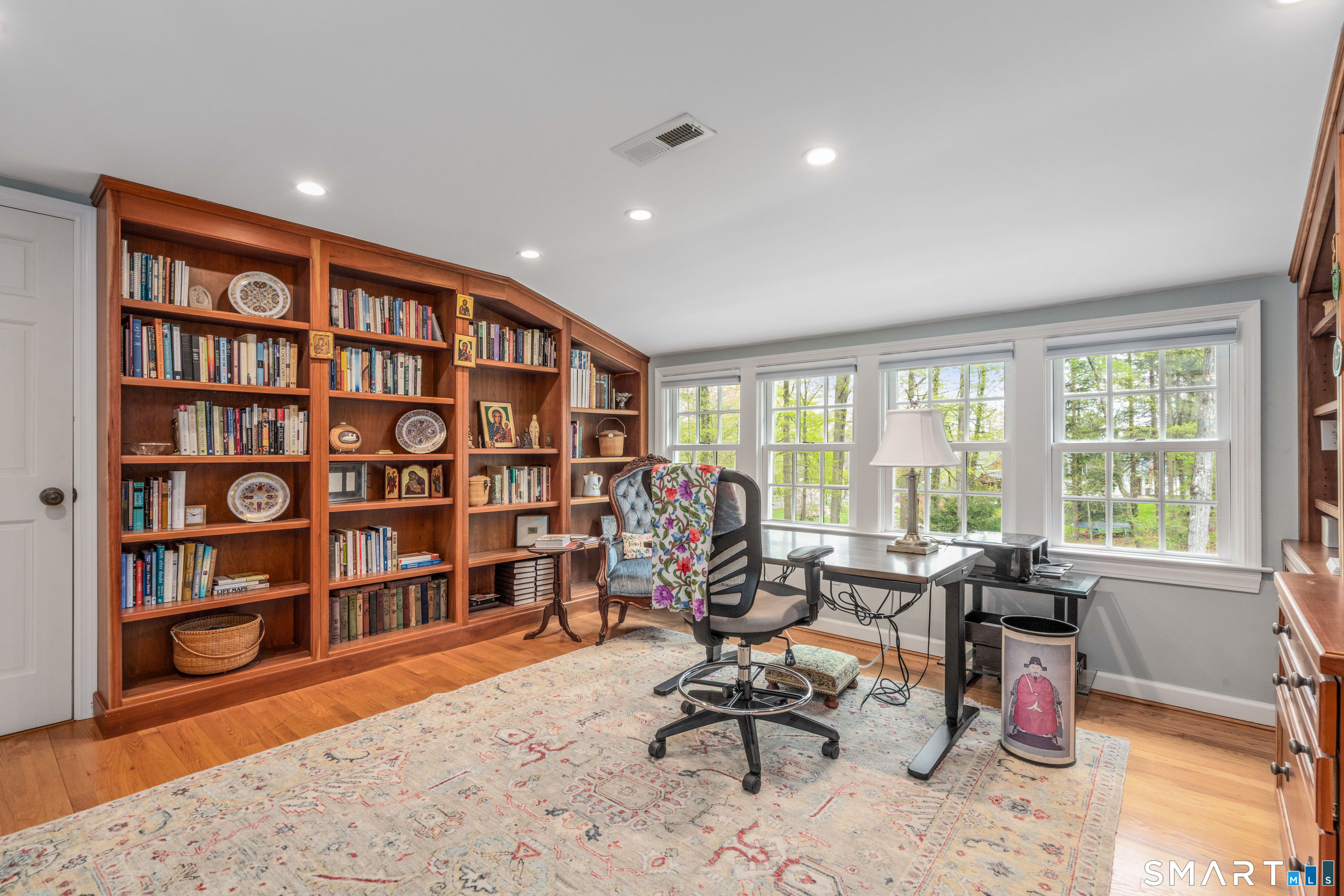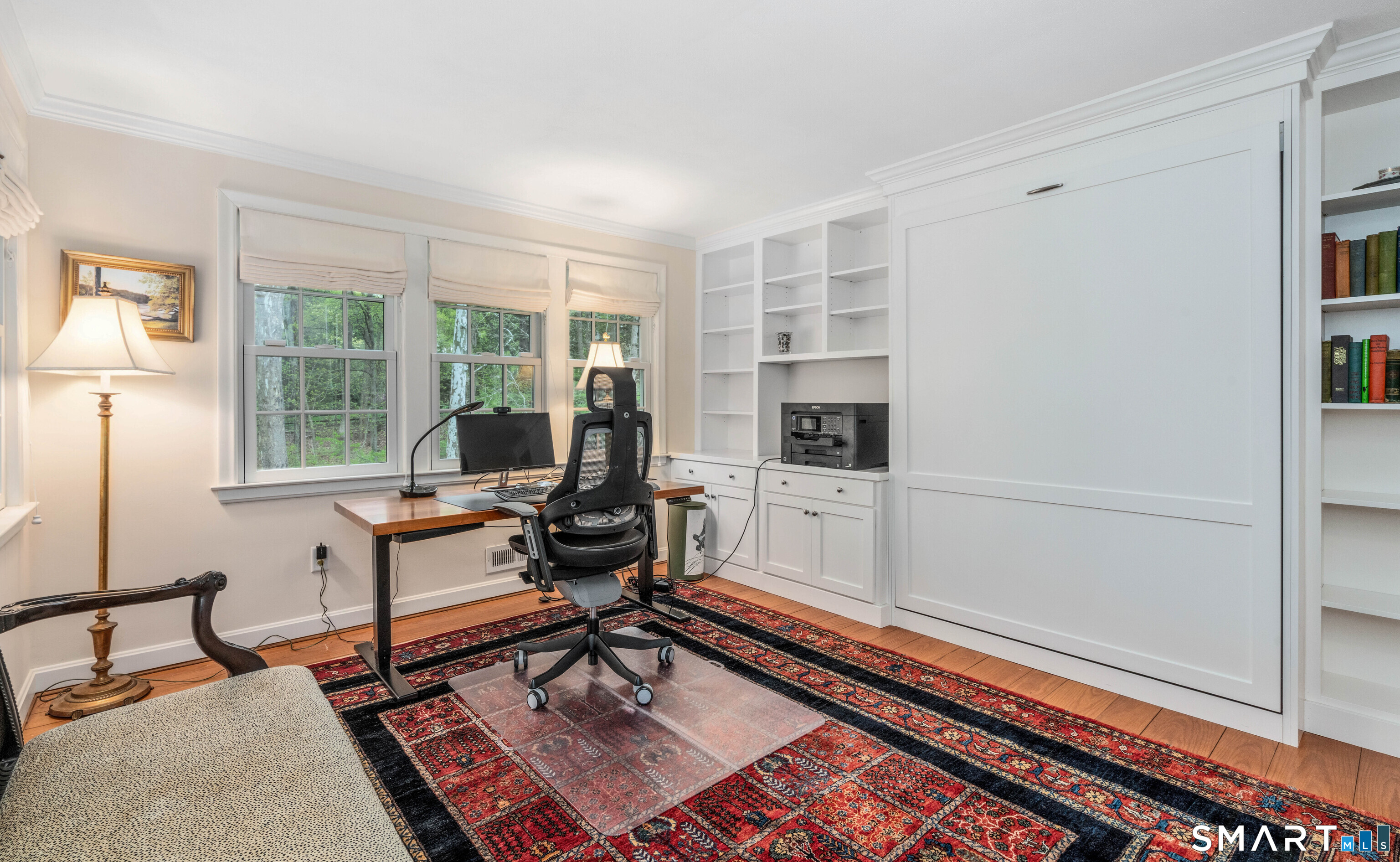 You won't fully appreciate the magic of this home in Sunset Farm until you experience it in person. Perfectly sited to capture views of our neighbor's waterfall, nearly every room in the home is designed to bring the outdoors in. The main level offers an open floor plan w/a kitchen w/gas fireplace & dining area which flows into the dining & living rooms, where a 2nd gas fireplace, expansive windows & french doors frame the breathtaking backyard. Two 1st flr bedrooms include one with ensuite bath, along with an office featuring a murphy bed that can easily serve as an additional bedroom. A full bath & spacious mudroom with access to the 2 car garage complete the level. Upstairs, the primary suite is highlighted by a gas fireplace & french doors that open to a juliet balcony overlooking the waterfall. 2 walk-in closets & a luxurious bath w/tub & steam shower elevate the space. This level also includes an office/study & a partially finished walk-in attic offering excellent storage or expansion potential.The walkout lower level provides even more living space with a family room with fireplace, an additional bedroom with full bath, & an exercise room. While the home itself is exceptional, the grounds are truly unforgettable. Set on .9 acres and abutting association land for added privacy, the professionally landscaped yard showcases extensive stonework and multiple vantage points to enjoy the beauty of the waterfall and brook-creating a serene, private oasis unlike any other!