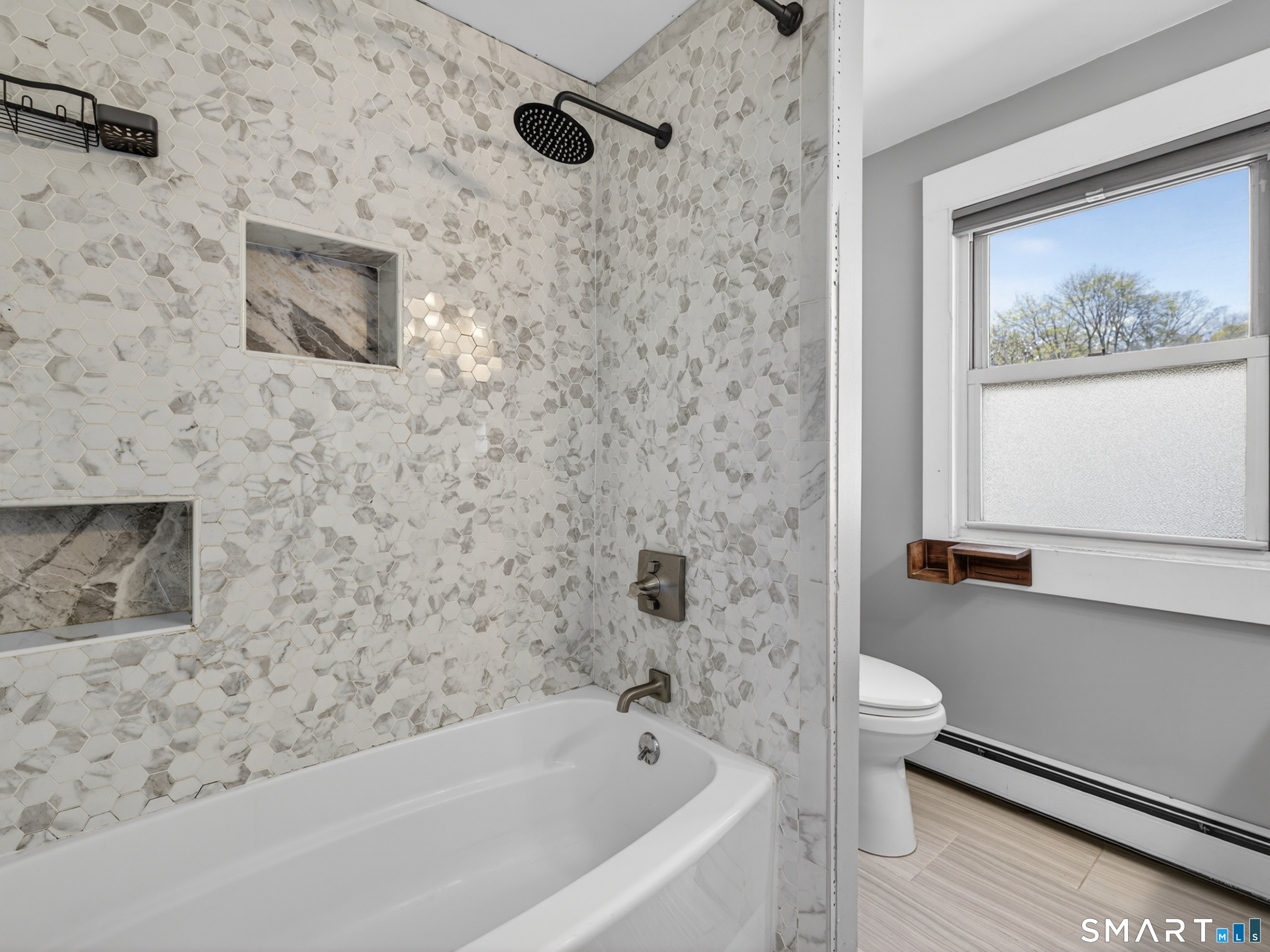This 3-bedroom, 1.5-bath Colonial has been updated where it counts, and the care put into it is obvious. Hardwood floors run through the main living areas, natural light pours in through oversized windows, and the woodwork throughout gives it a character that's hard to manufacture. The kitchen delivers - quartz countertops, soft-close shaker cabinets, LVP floors, and stainless appliances. A remodeled half bath is tucked conveniently off the kitchen, and upstairs you'll find three hardwood bedrooms and a fully updated full bath with a quartz vanity, tile floors, and tub/shower combo. The basement offers your laundry hookups and enough flex space to actually use - home office, workout room, overflow storage, etc. Behind the scenes, the important stuff has been addressed: plumbing, electrical, siding, and gutters all updated, composite decking on the front porch, and a detached two-car garage with new siding and windows. Practically located near I-95, the Coast Guard Academy, local parks, shopping, and downtown New London with Amtrak and the Ferry.