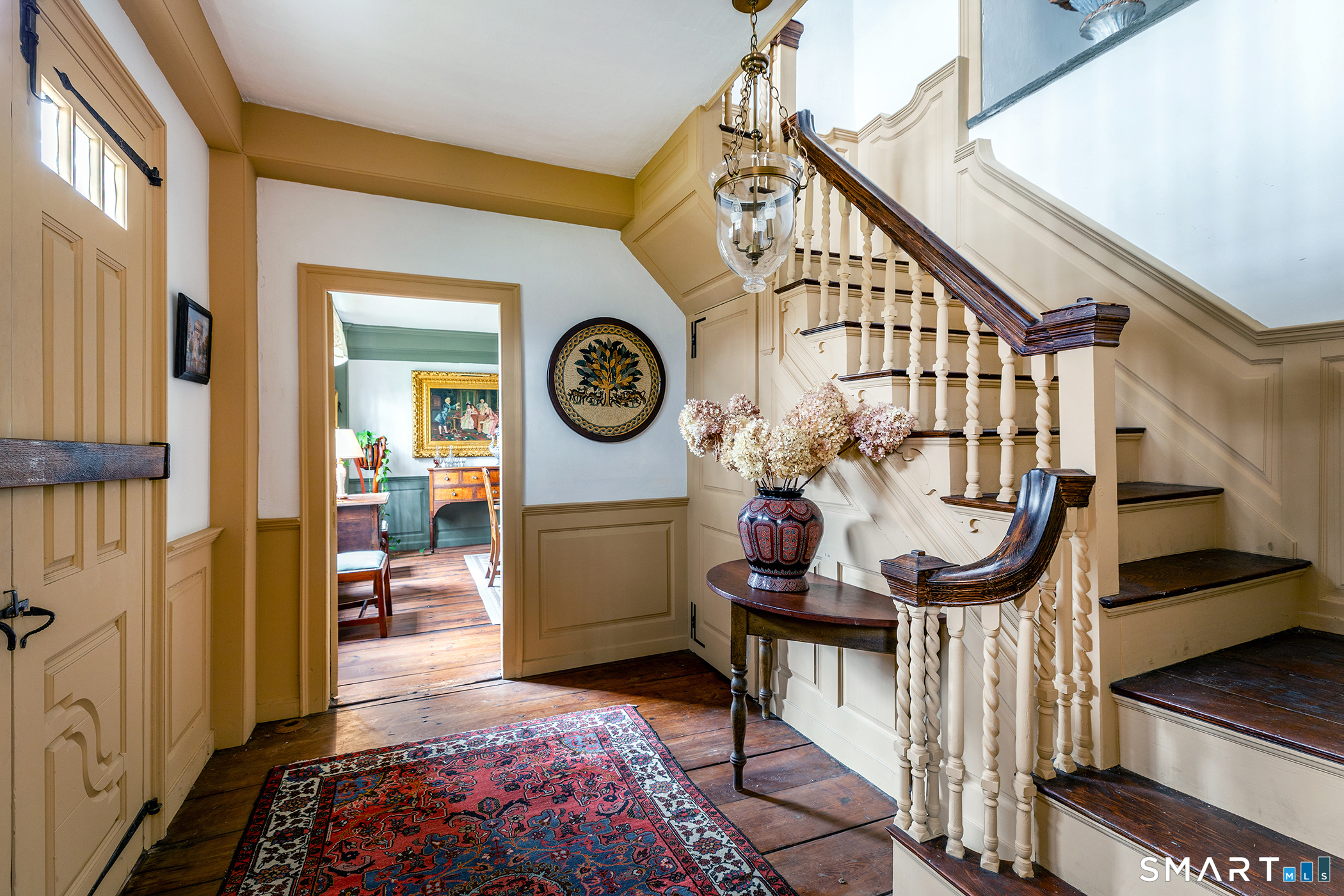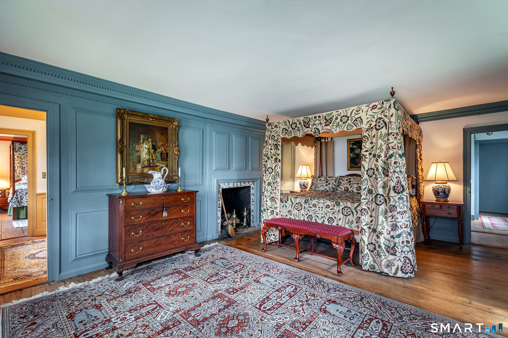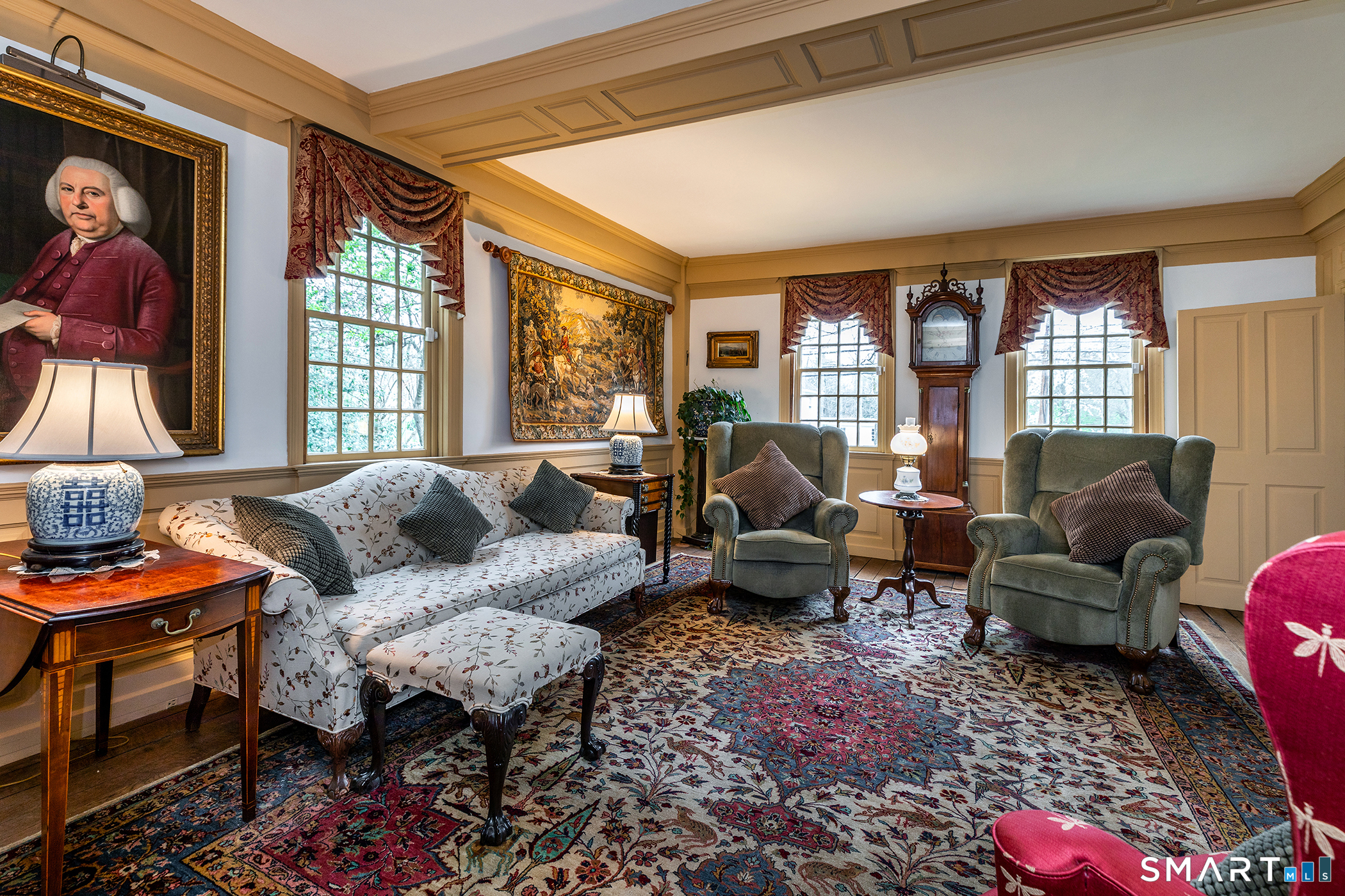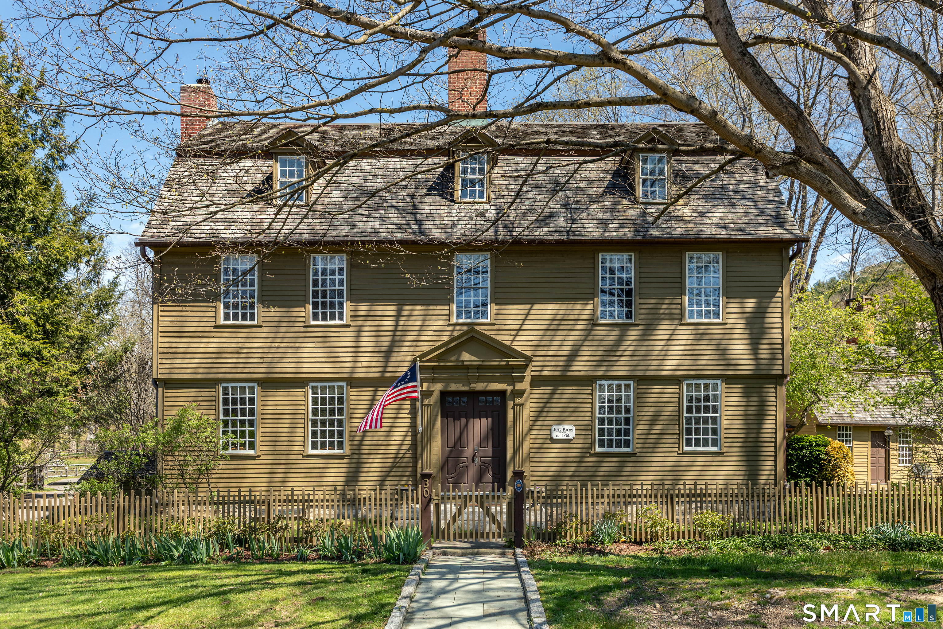 Step through the doors of history and into one of Connecticut's most treasured colonial residences. Built in 1760 and proudly listed on the National Register of Historic Places, the Jabez Bacon House is a rare masterpiece of 18th-century American architecture that has endured with remarkable grace for over 260 years. This distinguished home has also been recognized for its exceptional preservation and character, having been featured in Early American Life magazine and Historic Homes magazine-an honor that speaks to its authenticity and enduring appeal. This stately five bedroom home showcases original architectural details that collectors and history enthusiasts dream about. Seven fireplaces anchor the home's character across its generous 4,800+ square feet. Five beautifully paneled rooms reveal the craftsmanship of a bygone era, while antique wide-board flooring runs throughout, whispering stories of centuries past beneath every footstep.
