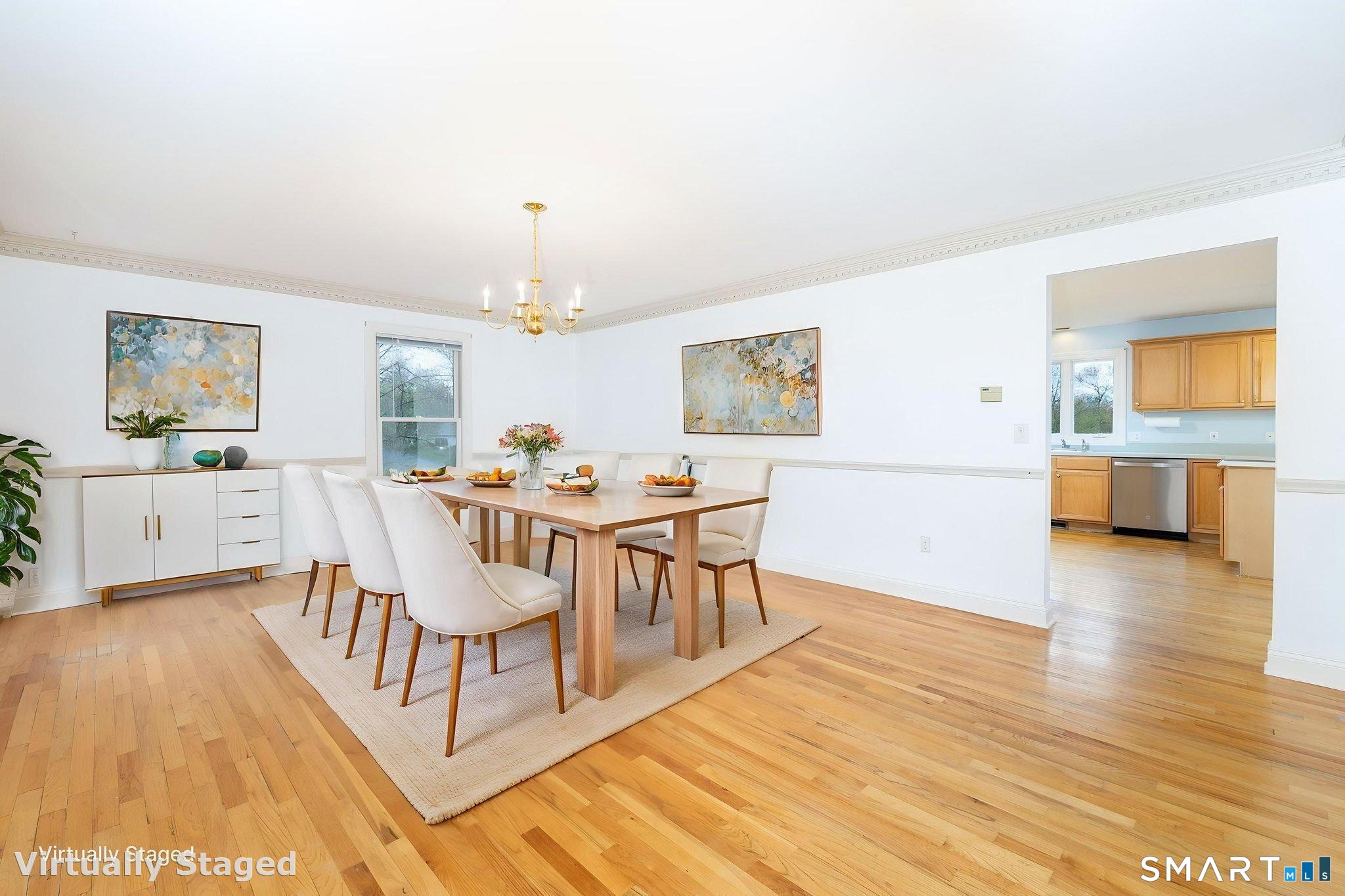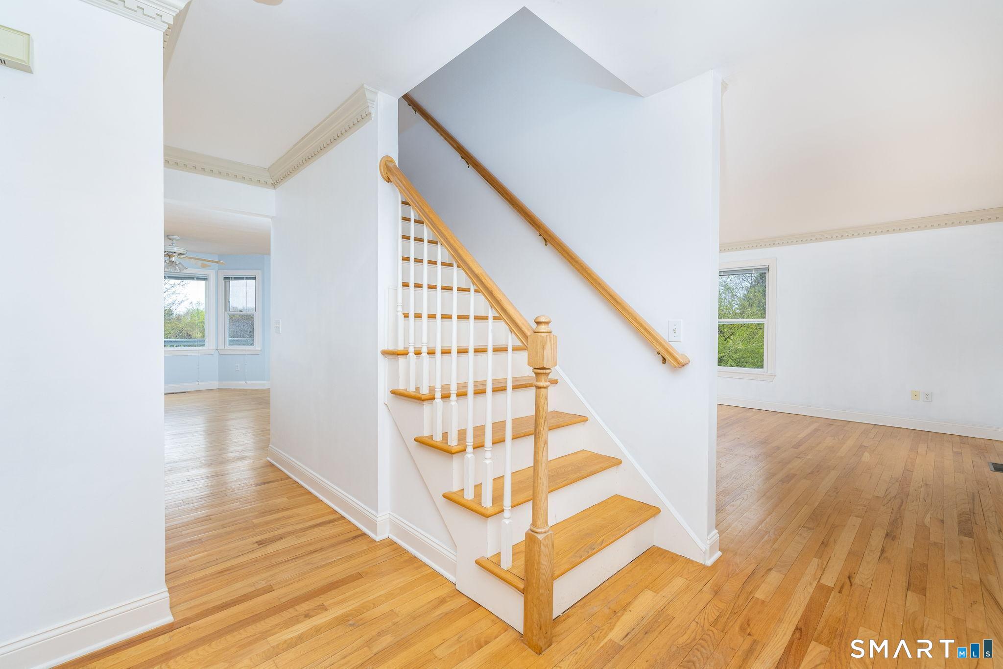 Welcome home to this stunning four-bedroom, two and a half bath Colonial nestled in the highly desirable Daniels Farms section of Trumbull's sought-after Hillandale neighborhood, set on a beautifully landscaped 1.40-acre lot. From the inviting front porch and elegant circular driveway, this home makes a lasting first impression before you even step inside. Enter through the gracious foyer where a formal living room graces one side and an elegant formal dining room awaits on the other, setting the tone for the thoughtful layout throughout. The heart of the home is a custom kitchen featuring a breakfast nook, recessed lighting, and stainless steel appliances, flowing seamlessly into the warm and inviting family room anchored by a cozy fireplace and offering direct access to the expansive deck. A main level laundry room adds everyday convenience that is hard to beat. Upstairs, four ample-sized bedrooms with carpet. The primary suite is a true retreat, complete with a walk-in closet and a private full bathroom. The partially finished lower level offers tremendous potential for additional living space and features a walk-out to the backyard, perfect for entertaining or simply enjoying the flat, cleared, garden-ready lot. A three-car attached garage completes this exceptional offering. Conveniently located near top-rated schools, parks, shopping, dining, and major highways, with Westfield Trumbull Mall just minutes away and easy access to both NYC and Stamford!