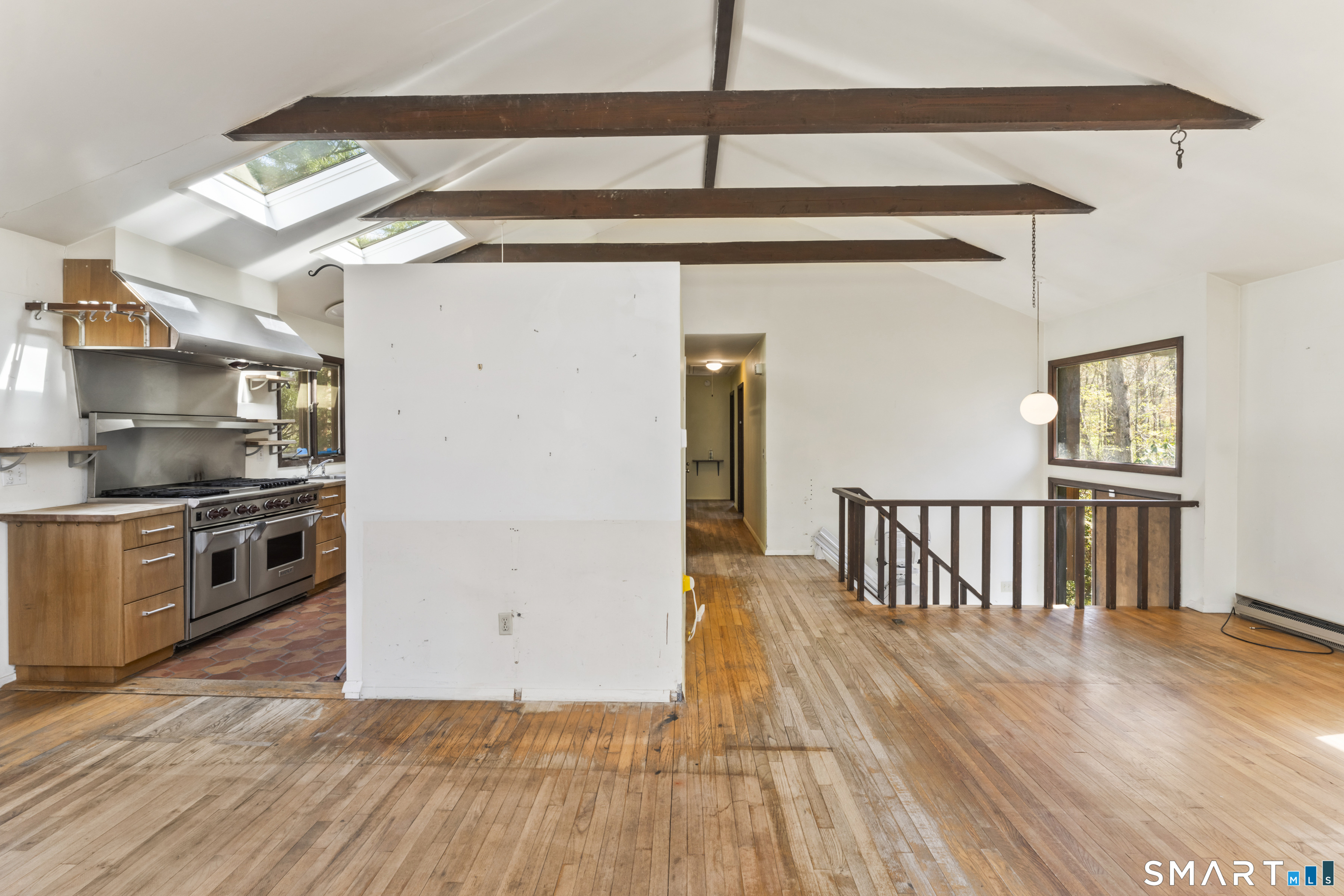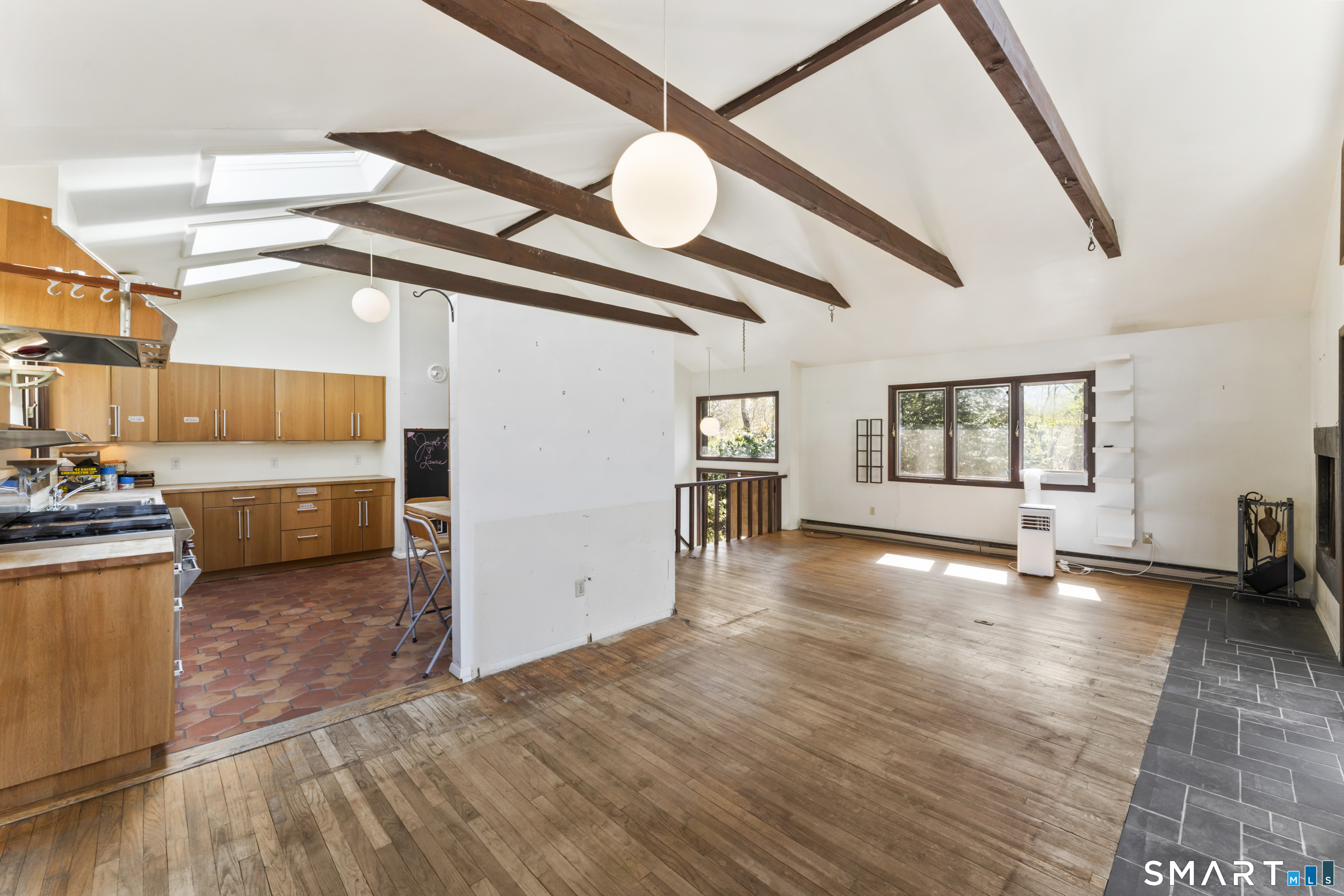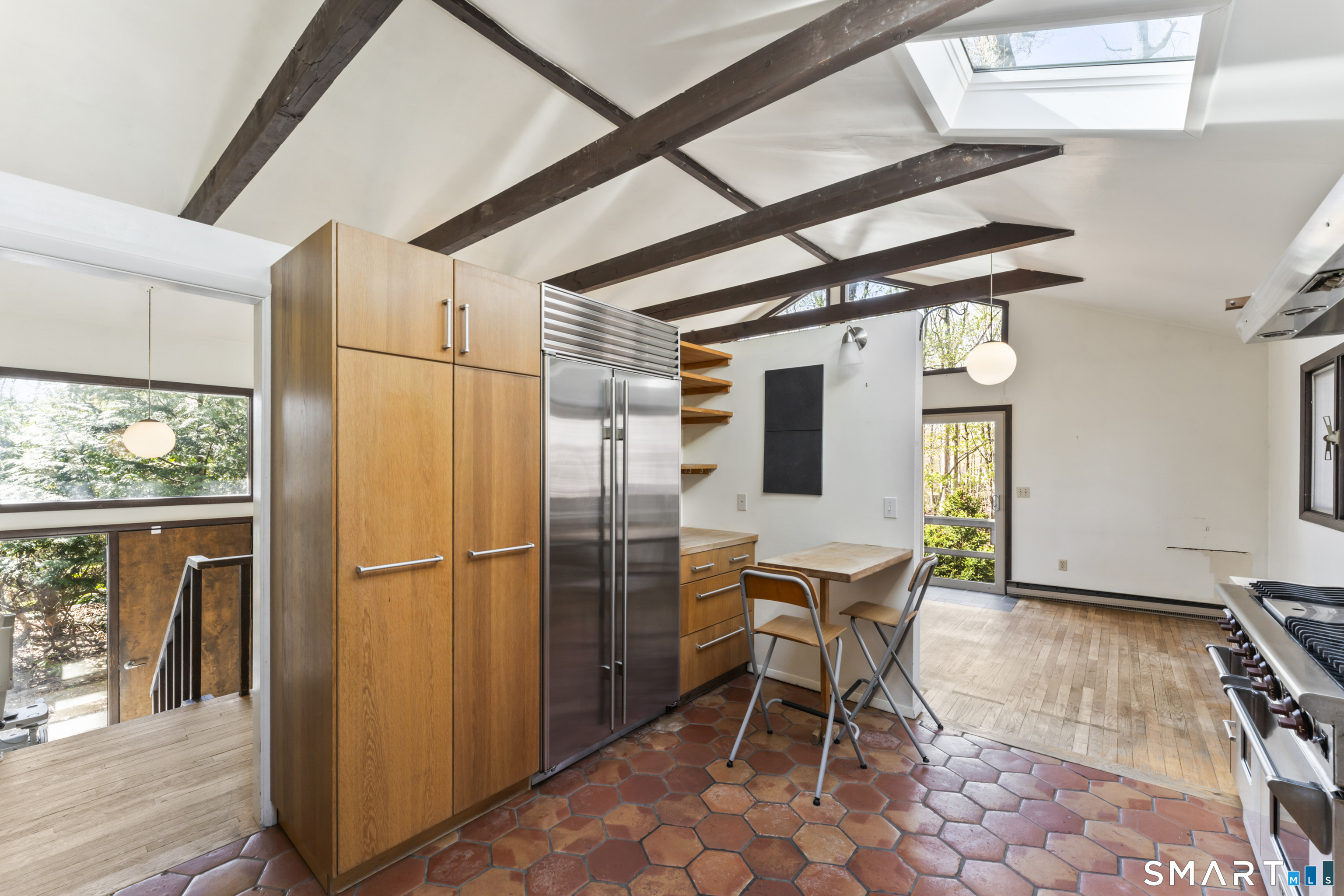 Charming 3-bedroom, 2.5-bathroom Raised Ranch with mid-century modern character, tucked into a lightly wooded setting that offers privacy without isolation. The open floor plan provides wonderful flexibility for a variety of uses. The kitchen features chef-grade stainless steel appliances with generous counter and cabinet space. Vaulted ceilings in the family and dining rooms create an airy, light-filled atmosphere throughout the day. The primary suite offers a peaceful retreat with a full bath, while two additional generously sized bedrooms share a well-appointed full bath. The finished lower level with half bath is ideal as a den, home office, or additional sleeping quarters. A well-priced opportunity - don't miss it.