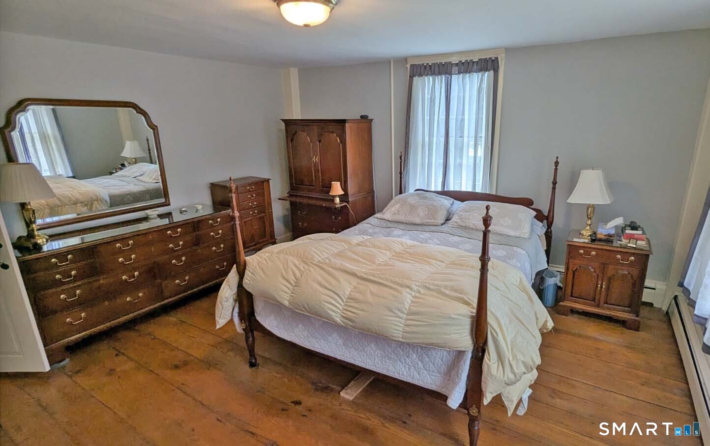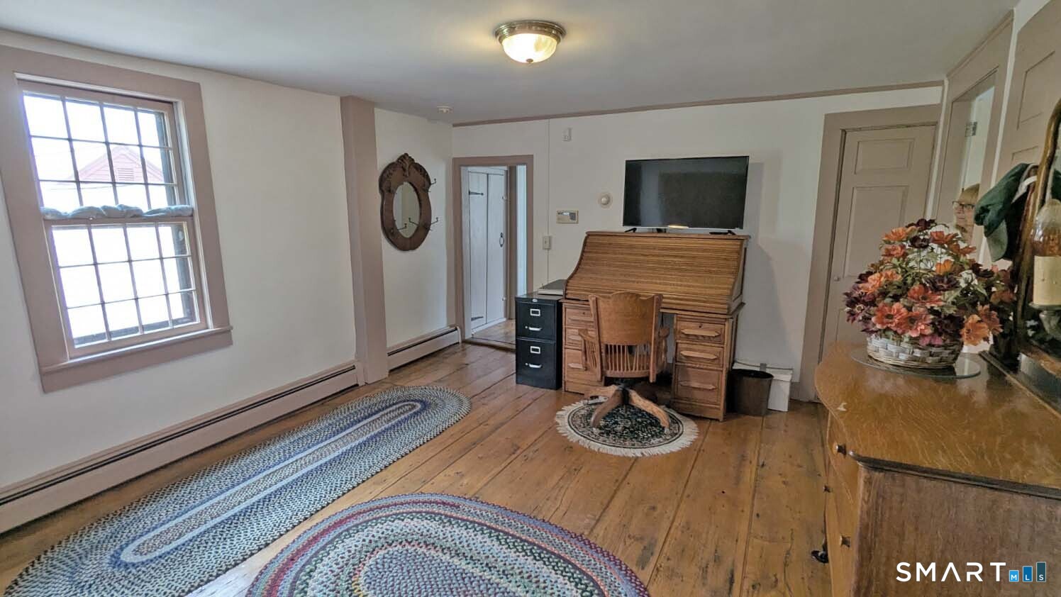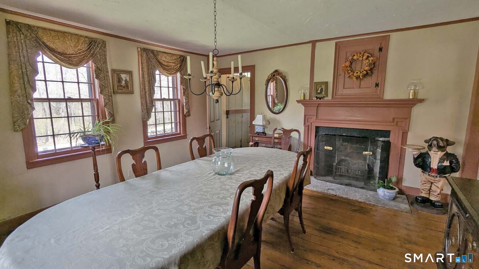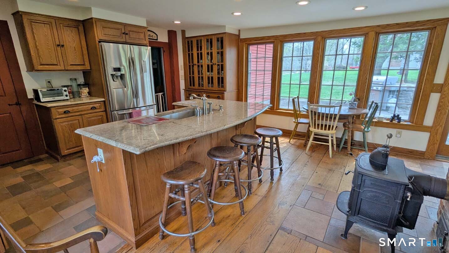Built in 1750, this beautifully updated and meticulously maintained historic home blends timeless character with modern comfort. Rich wide-board floors and classic 12-over-12 windows highlight its heritage, complemented by four fireplaces throughout the home. The inviting kitchen features granite countertops, custom cabinetry, a wood stove, and abundant natural light from multiple windows and a sliding door leading to the patio-perfect for everyday living and entertaining. A charming library with custom built-ins sits just off the kitchen, offering a cozy and functional retreat. Both the living and dining rooms showcase impressive fireplaces with updated liners, enhancing both style and efficiency. Two staircases provide convenient access to the second floor, where you'll find two spacious bedrooms, a beautifully remodeled full bath, and an additional room ideal for a nursery. An open landing area between the bedrooms offers flexible space for a home office or playroom. Set on 3.8 acres of rolling, usable land, the property also features a new driveway, an expansive three-car garage with a loft workshop-perfect for hobbies, storage, or creative pursuits, a barn and a well house. A rare opportunity to own a thoughtfully preserved historic home with modern updates in a serene setting. Country living at its best.