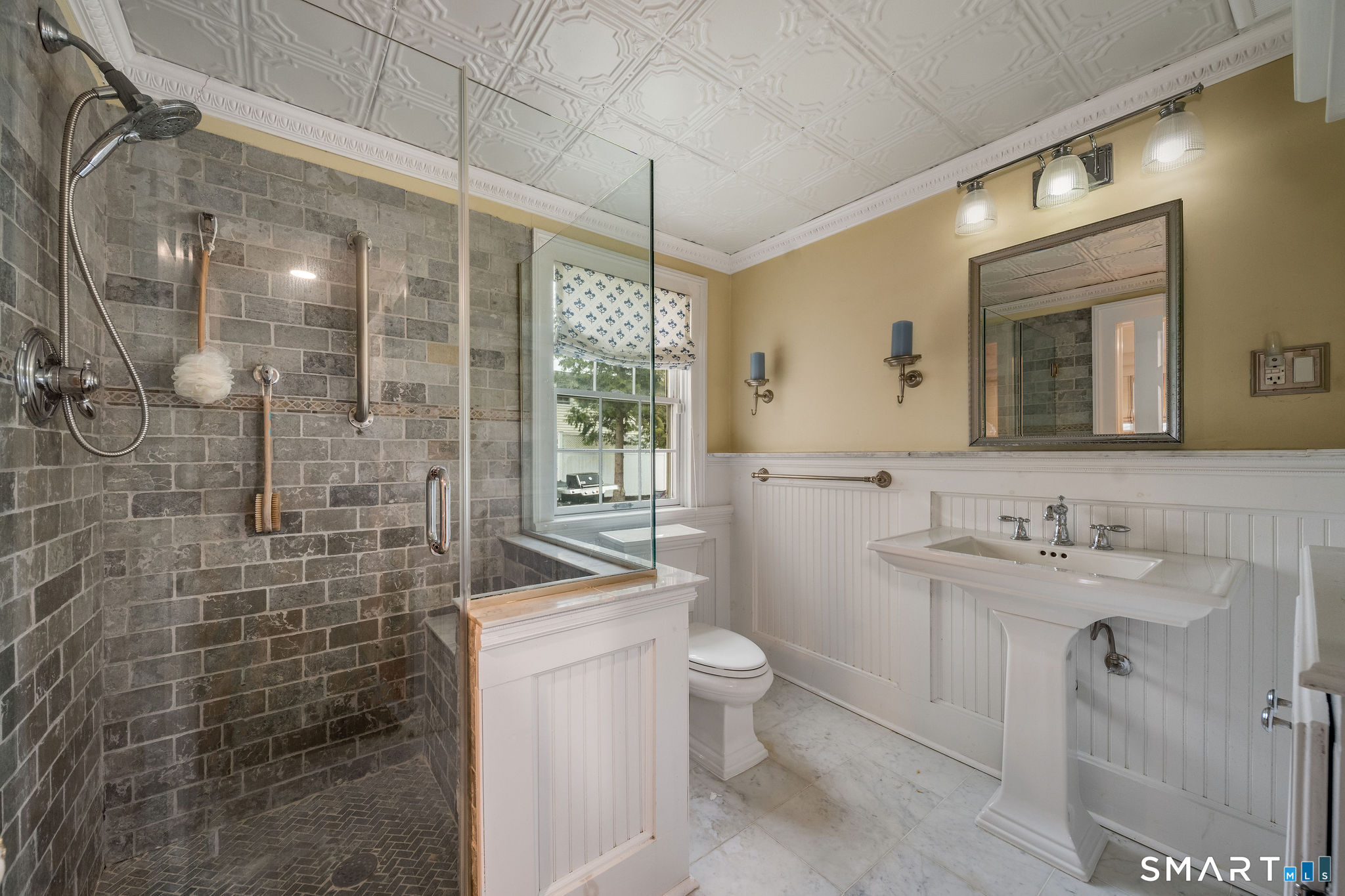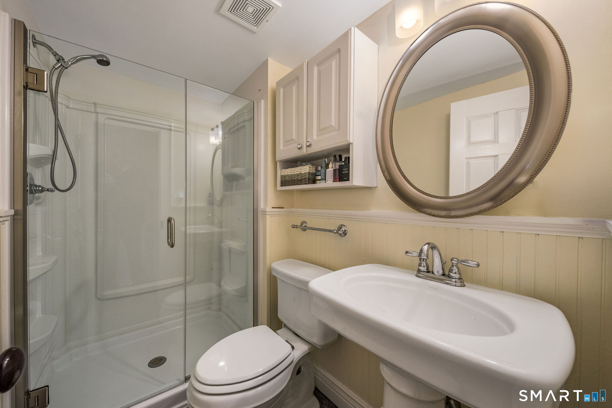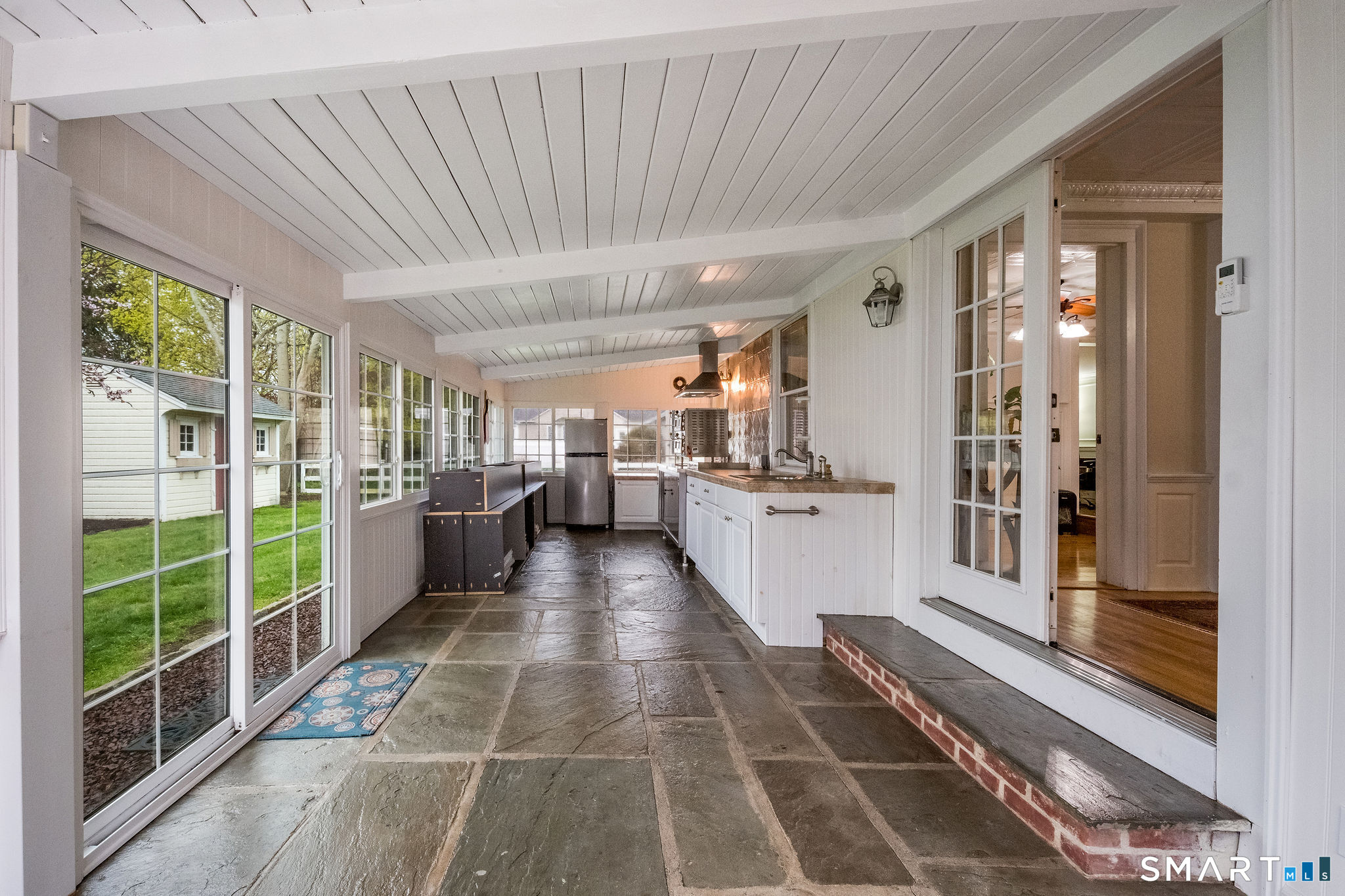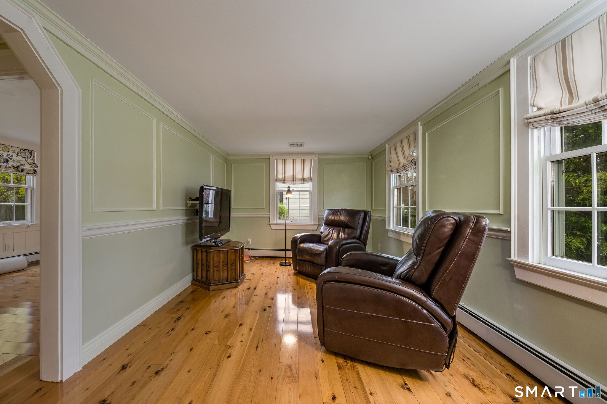 Just a short walk from Clinton's downtown shopping, marinas, and waterfront dining, this charming, remodeled 1940s ranch/cape offers a true coastal life style. The home features easy one-level living with hardwood floors throughout, three bedrooms, two full and one half baths, a bright year-round sunroom, living and dining rooms, and a den. The existing layout would work well for someone needing a guest or in-law wing. The heated lower level is partially finished and includes a half bath, bonus room, exercise space, workshop, and ample storage. Additional expansion potential awaits in the spacious attic, which includes a dormered section with French doors, ideal for creating a deck above the sunroom. Partially fenced, sunny level yard with two sheds for storing all your lawn and recreational items. New bay window with copper top detail, tree removal, new landscaping and irrigation system, and a new chimney from the roofline are just a few of the upgrades by the current owners. Conveniently located near I-95 and the train station, New York City and Boston are just two hours away.