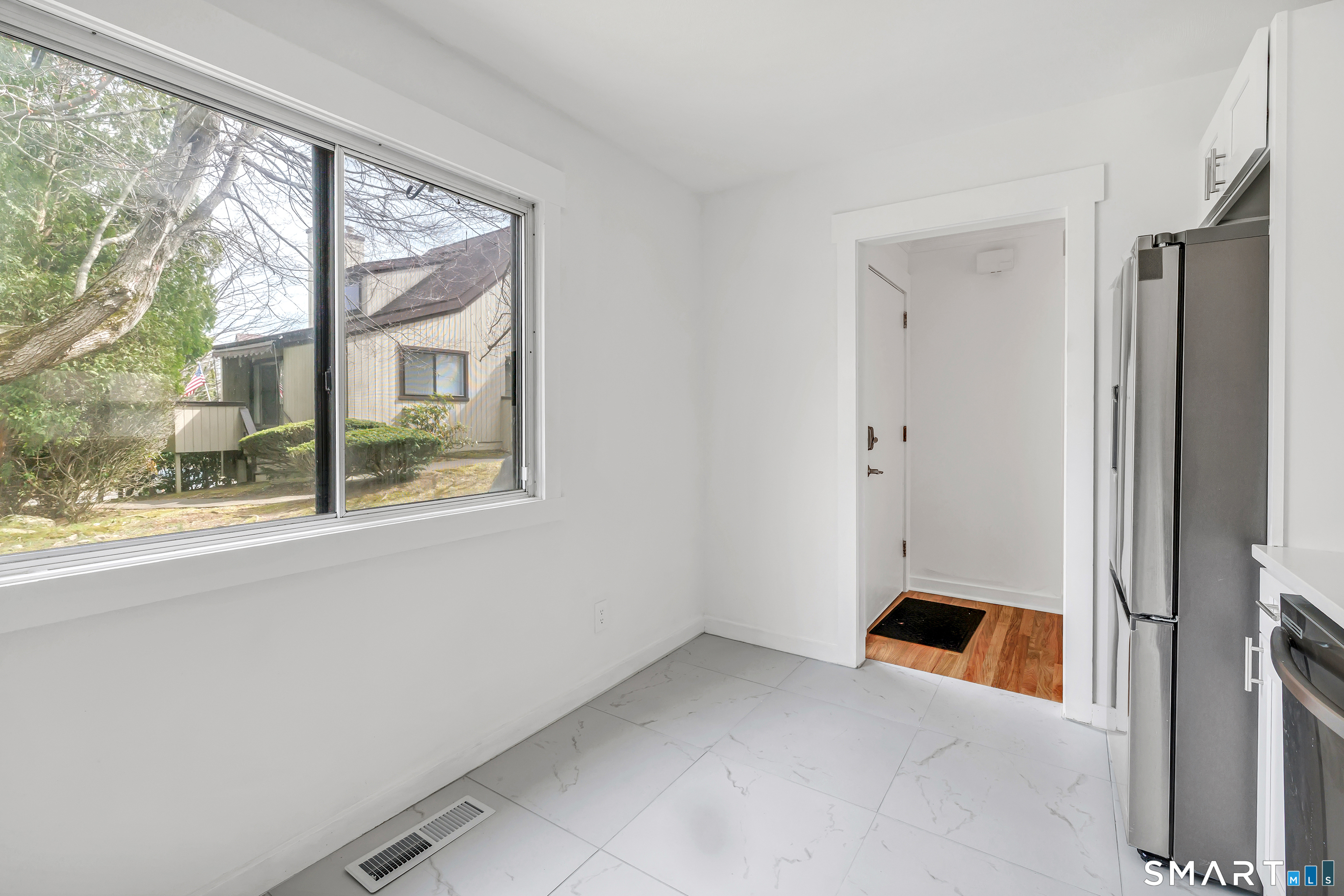 Step into the possibilities of this beautifully updated, ideally located Emerson-style condo in the lively 55+ community of Oronoque Village. Thoughtfully renovated, the home features gleaming hardwood floors, a brand-new kitchen, and stylishly updated baths. Designed for easy single-level living, the main floor welcomes you with a bright, open-concept living and dining space, highlighted by a cozy wood-burning fireplace and sliding doors that lead to a private deck-perfect for quiet mornings or entertaining guests. The main level also includes the newly updated eat-in kitchen, a convenient half bath, and a spacious primary suite with a walk-in closet and refreshed full bath. Downstairs, the finished lower level adds 458 square feet of versatile living space, offering a second bedroom or home office, an updated full bath, and a flexible bonus area to suit your needs. You'll appreciate the abundant storage, generous closet space, and the convenience of a one-car garage. Beyond your front door, Oronoque Village offers an active lifestyle with beautifully maintained grounds, community gardens, multiple pools, tennis and pickleball courts, a fitness center, and a wide range of social clubs. Golf enthusiasts will also enjoy nearby Blackhawk Country Club, with reduced membership rates available to residents. With modern updates throughout and a warm, welcoming community, this move-in-ready condo is an exceptional opportunity to enjoy comfort, convenience, and vibrant living.