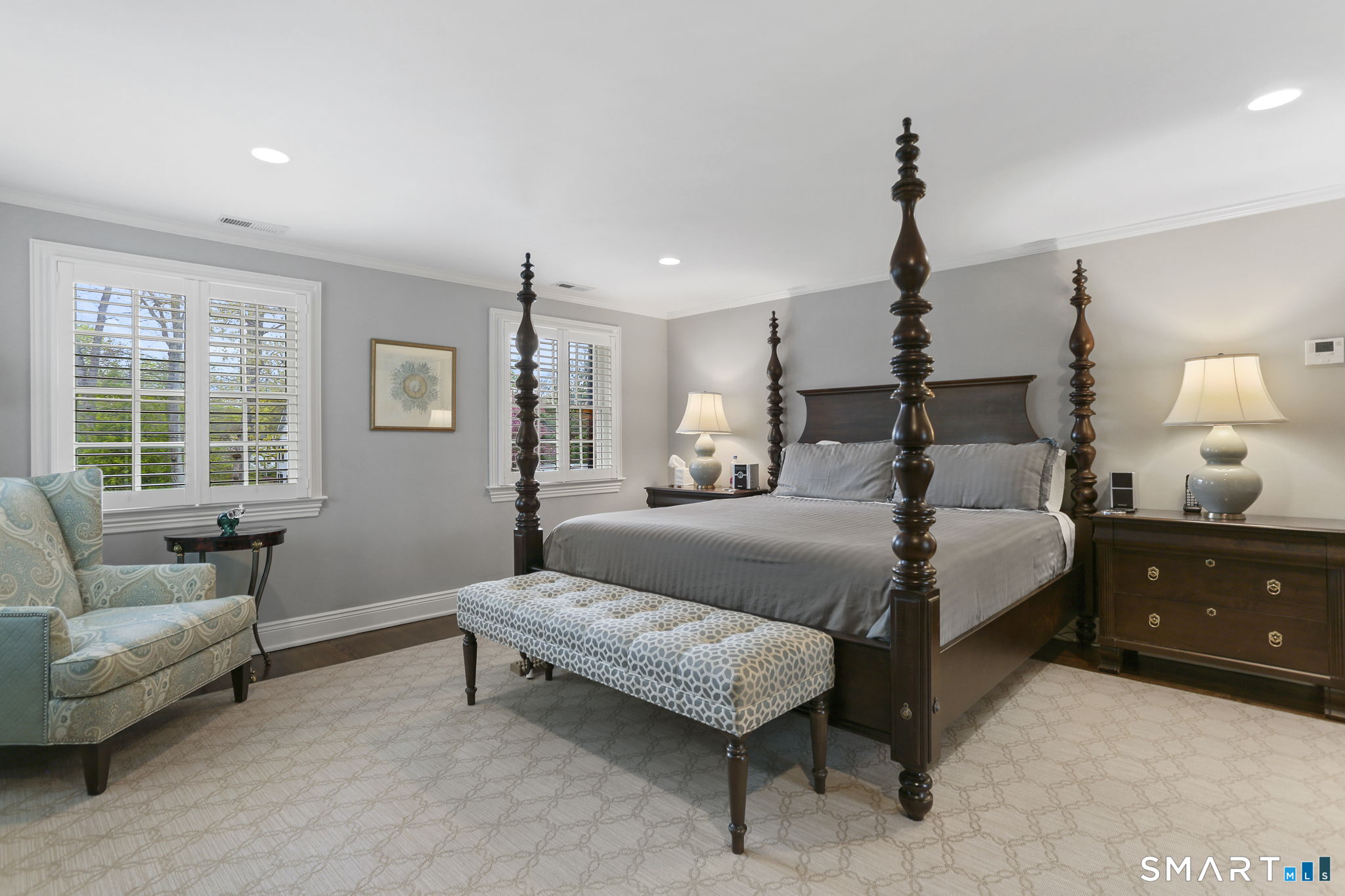 Beautifully redone stone and shingle home in the private downtown Indian Harbor Association with 24-hour security. Situated on a oversized 1.3 acre landscaped lot, this home features bright and spacious rooms, hardwood floors and custom detailing. Updated kitchen has stainless steel appliances, breakfast room with built-ins that opens to family room with floor to ceiling windows, skylights and French door access to a deck & large stone patio. Second floor offers a spacious primary suite with multi-closets and luxe bath, two family bedrooms & bath. Third floor has gym, bedroom or office & bath. Square footage includes the 300+sqft in lower level playroom. Separate lovely remodeled apartment in its own wing. Close to train, I95, ferry boats, park, shops and restaurants. Elegant & convenient.