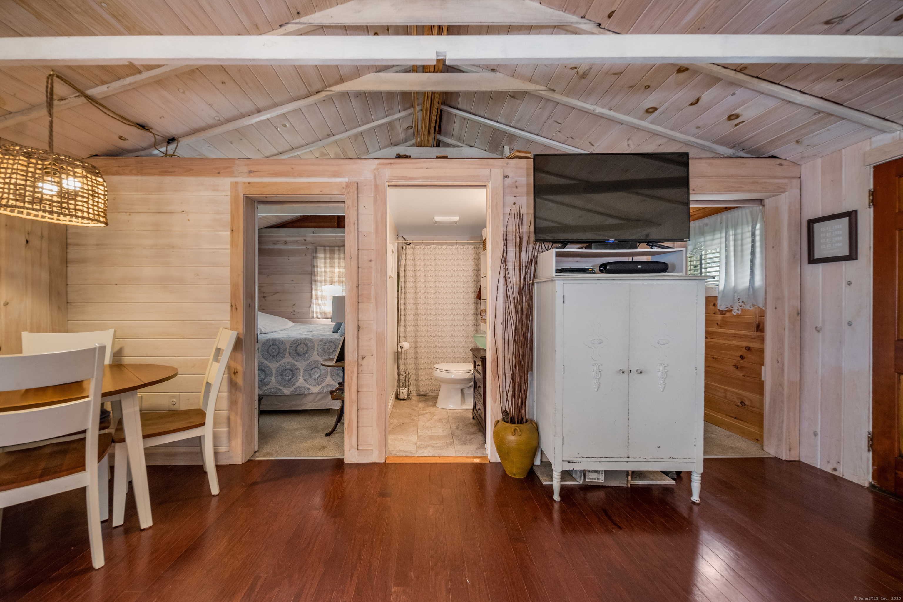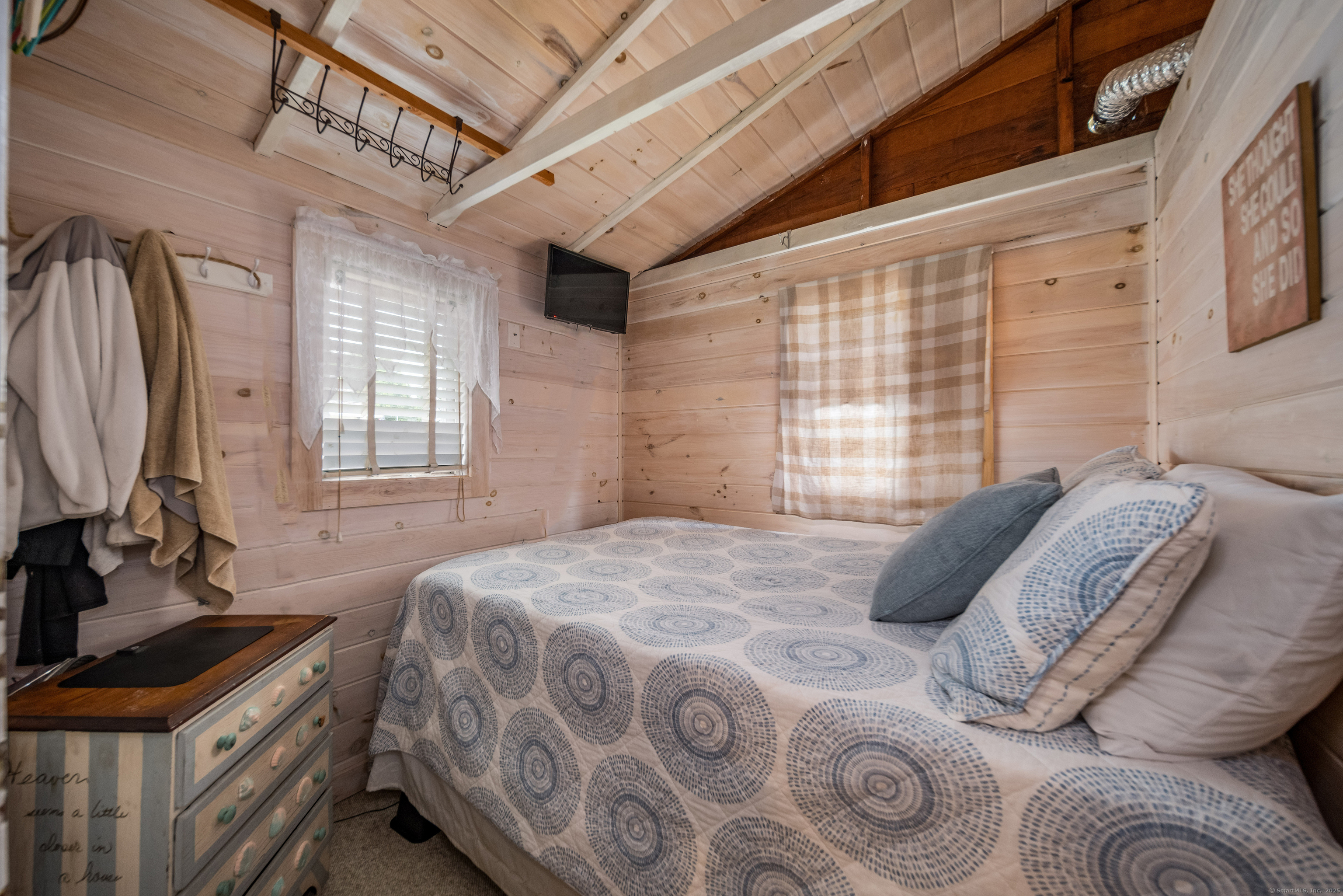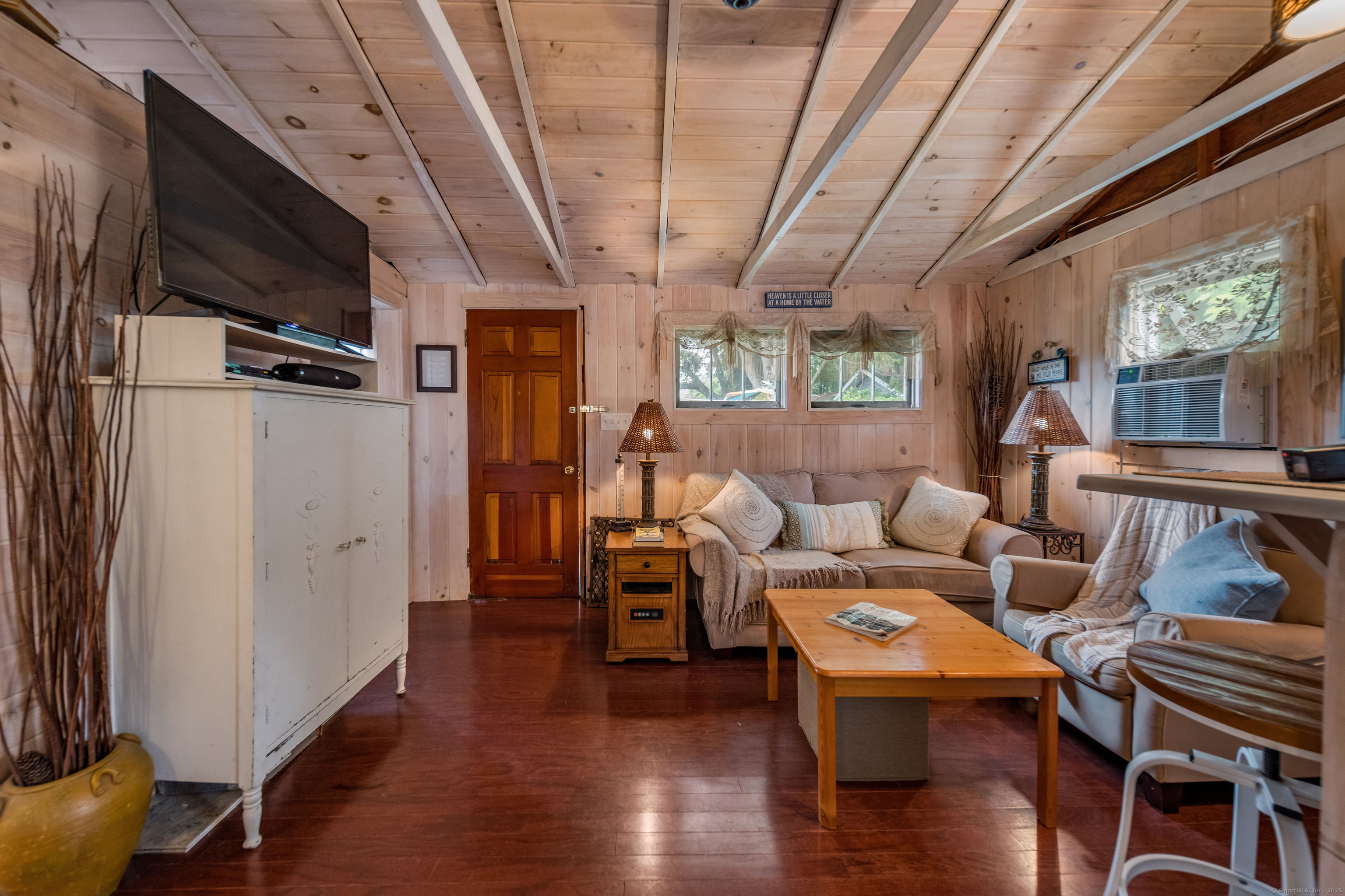 Nestled in the heart of picturesque Madison, this charming 2-bedroom, 1-bathroom seasonal cottage offers a serene sanctuary for enjoying summers along the shoreline. With a cozy living space, this quaint abode is perfectly designed for those seeking a peaceful beachside getaway. As you step inside, you're greeted by a warm and inviting atmosphere that captures the essence of coastal living. The open-plan living area maximizes the cottage's compact footprint, providing a comfortable space for relaxation and intimate gatherings. The kitchen is well-equipped for preparing light bites and beach picnics, while the two snug bedrooms offer a restful night's sleep after a day of fun in the sun. The loft space above the bedrooms awaits your imagination and offers an abundance of possibilities - pre-wired and ready to be finished to your heart's content! The cottage's prime location means you're just a short walk from the expansive sandy shores of Hammonasset Beach State Park. Madison's vibrant community is also at your doorstep, with its quaint downtown area, boutique shops, excellent restaurants, and attractions like the Madison Art Cinema and the historic E.C. Scranton Library. Whether you're looking for outdoor adventure or small-town charm, this cottage is the perfect seasonal home. Embrace the simplicity of cottage living and the beauty of coastal Connecticut with this delightful property, where endless summer memories await. Land lease - currently $5,400 per year.