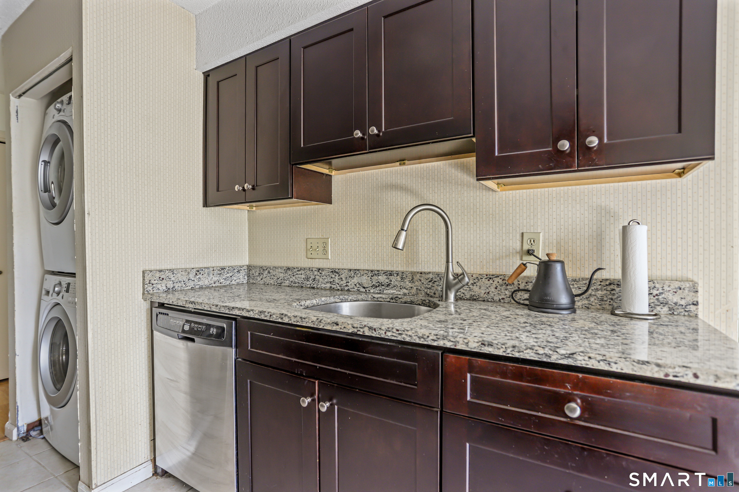 Conveniently located in Hamden with direct access to the Farmington Canal Trail, this ranch condo offers easy living with exceptional access to Yale University, Quinnipiac University, and downtown New Haven. Close to shopping, dining, Yale, Quinnipiac, parks, trails, and the Merritt Parkway. The interior features an updated eat-in kitchen with granite countertops and stainless steel appliances, along with a bright living room offering access to a private balcony. The spacious bedroom includes a walk-in closet. An in-unit washer and dryer add to everyday convenience, along with additional storage space in the basement. Enjoy a lifestyle where daily errands are within reach-walk via the trail to grocery stores, restaurants, CVS, Home Depot, and more. The complex offers low-maintenance living.