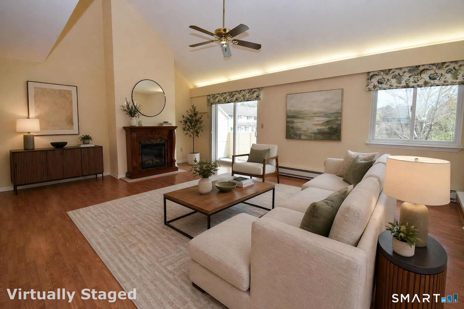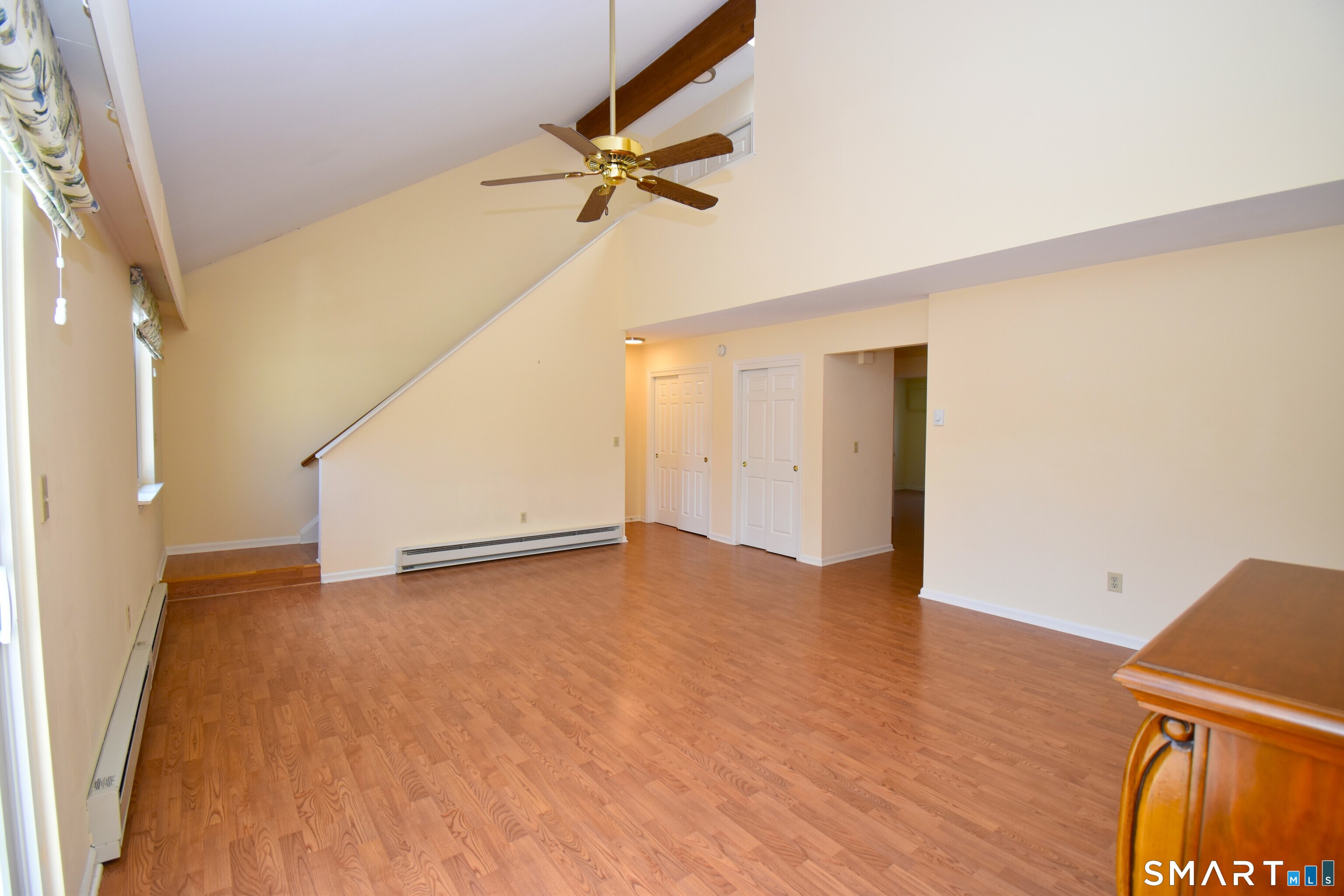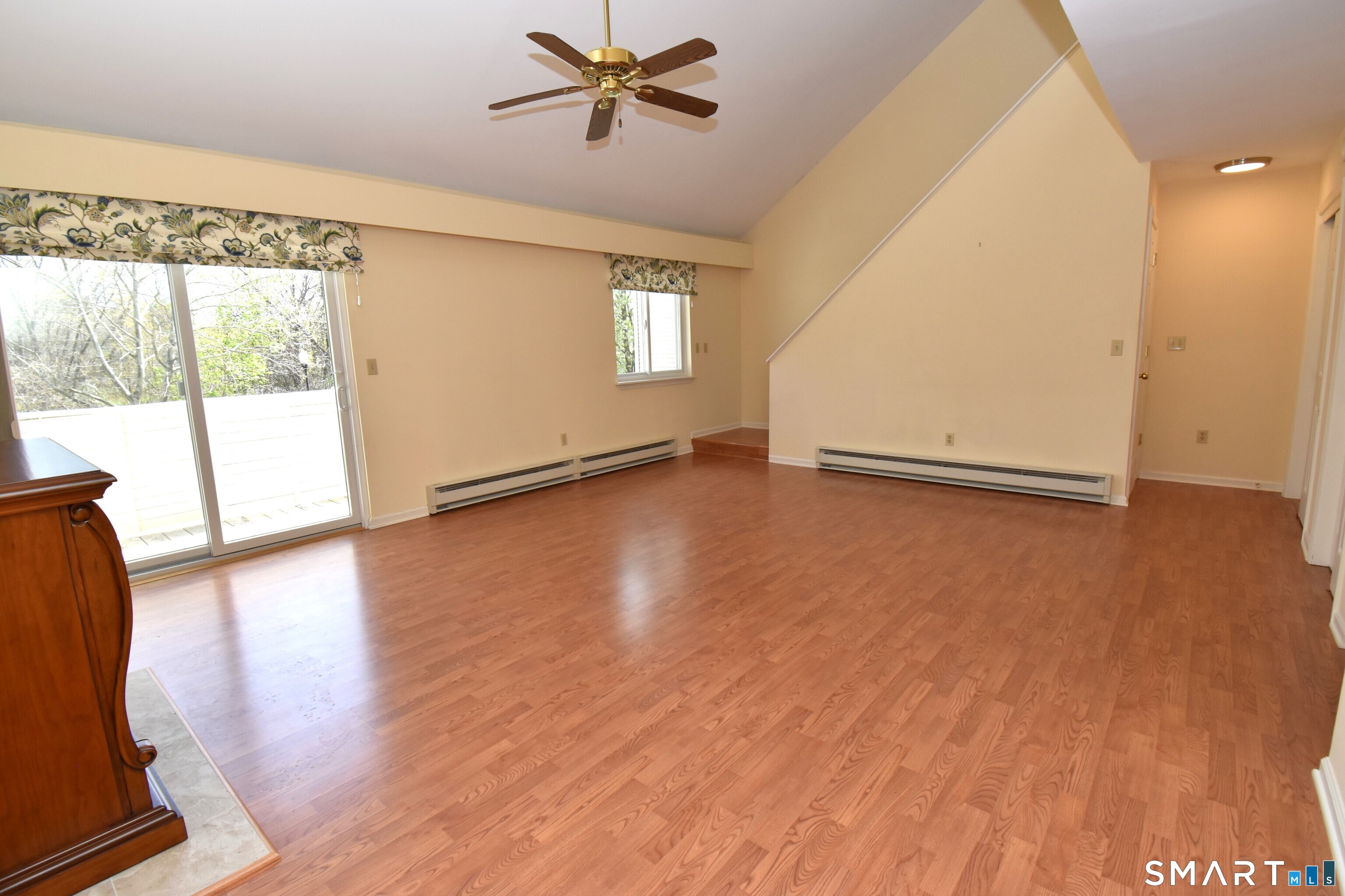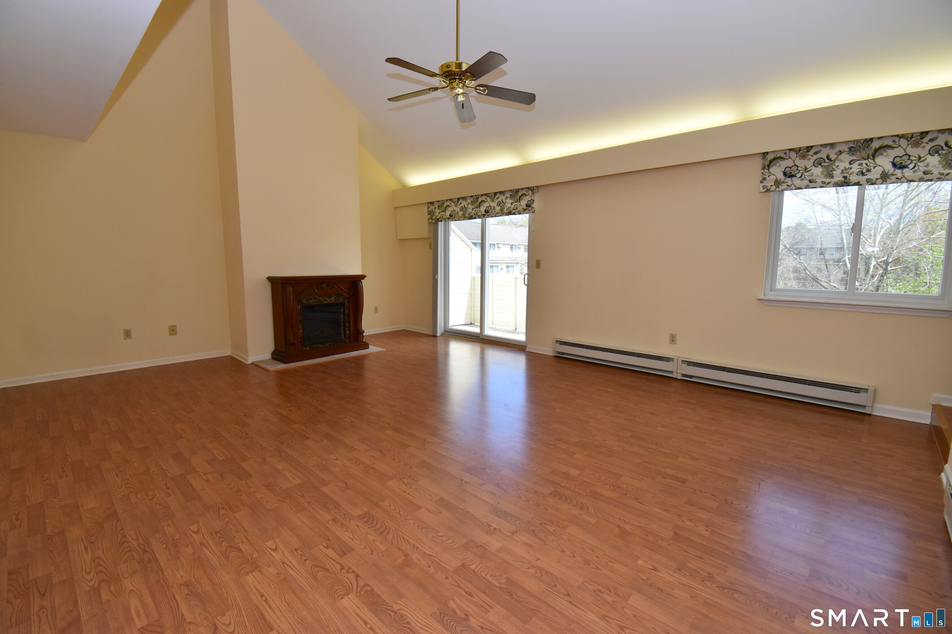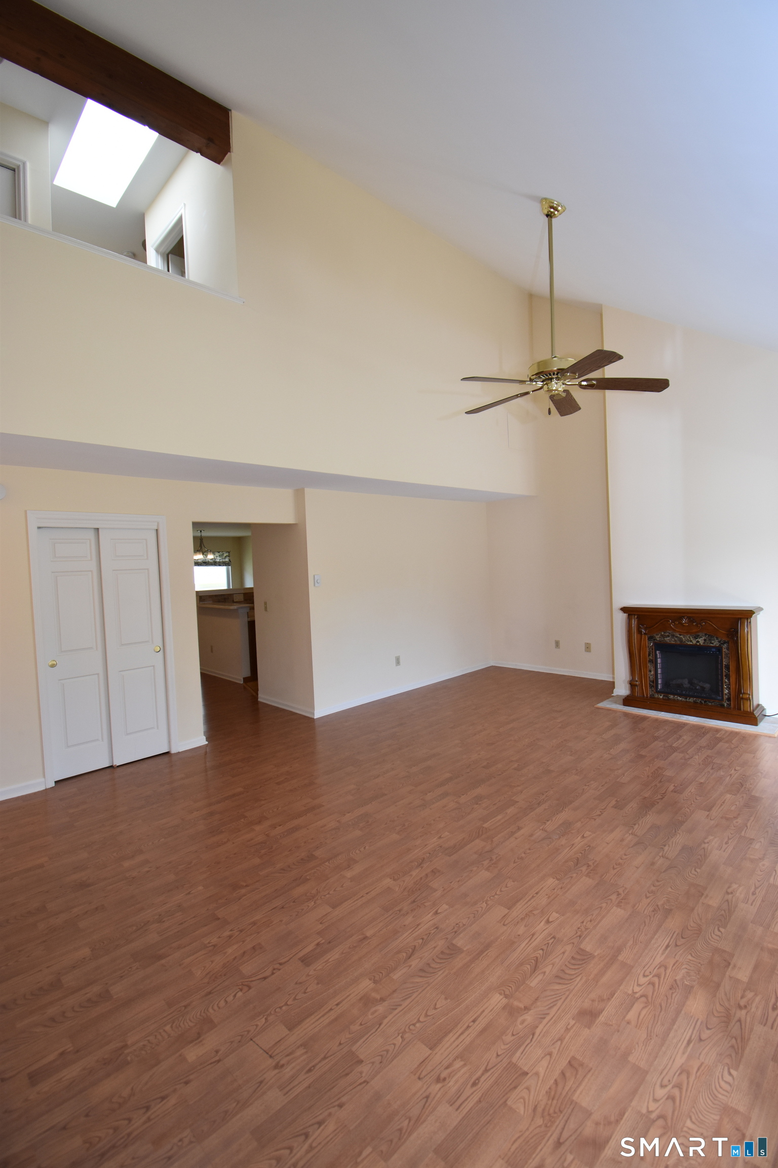 Welcome to sought-after Willow Springs in a southern New Milford location! This well-maintained community features an in-ground pool and a clubhouse complete with a kitchen, game room, and pool table-perfect for entertaining larger gatherings. Enjoy your beautifully updated 1776 sf, move-in-ready townhome, that was renovated within the last few years for modern comfort and style! Step inside to find beautiful laminate flooring throughout in a bright and sunny layout. The living room features soaring vaulted ceilings, an electric fireplace for added warmth and charm, and a sliding door that leads to a private balcony-perfect for relaxing. The stunning kitchen was renovated with Corian countertops, a double sink and features newer GE stainless steel appliances, abundant cabinetry, and a spacious pantry. It flows seamlessly into the dining area and breakfast bar, offering plenty of space for gatherings both large and small. The main level includes a versatile office with double closets, currently used as an additional bedroom. Upstairs, a sun-filled loft with skylight provides flexible living space and conveniently houses the laundry area. The primary bedroom is a true retreat, complete with access to the renovated full bath with double sinks and two closets-including a walk-in. A generously sized second bedroom with a double closet completes the upper level. Professional photos coming soon!