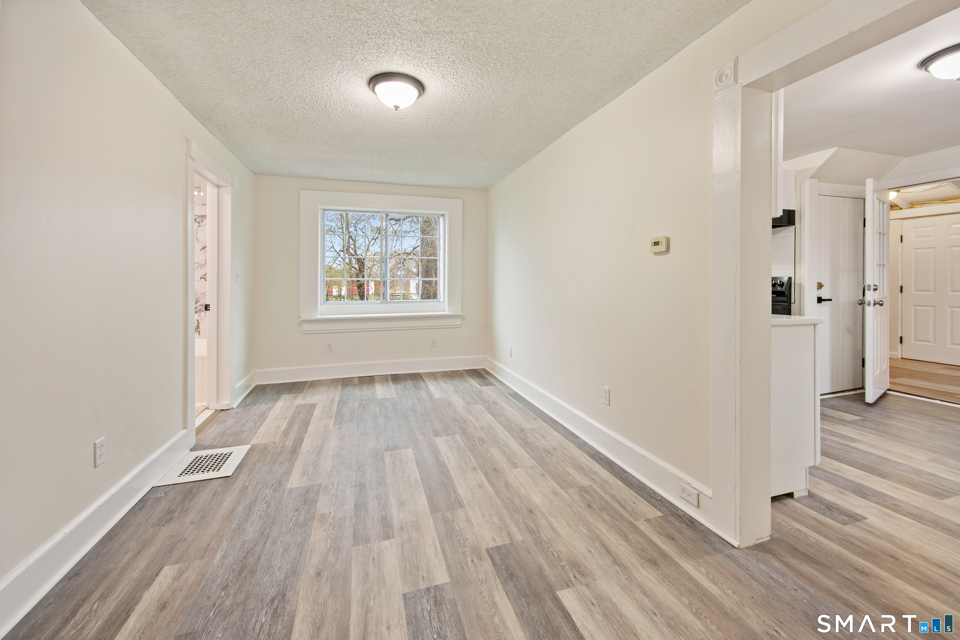 Clean, updated, and easy to live in - 290 Forest St offers a modern feel with a layout that simply makes sense. Set in a convenient East Hartford location with quick access to I-84, downtown Hartford, and nearby shopping, dining, and parks. The interior has been thoughtfully refreshed with updated flooring, refined trim details, and a consistent neutral palette that carries throughout the home. The main living area feels open yet defined, anchored by a fireplace that adds warmth and character while still keeping the space functional for everyday use. The kitchen has been fully updated with modern cabinetry, quartz countertops, and a clean backsplash, creating a space that is both practical and visually sharp. The bathroom has also been improved with updated tile and fixtures, continuing that same level of finish throughout. The layout offers flexibility with multiple living areas that can adapt depending on how the space is used. Additional features include newer windows, central air conditioning, and a dedicated laundry/utility area that adds to the home's overall functionality. Out back, a rear deck extends the living space outdoors, offering a simple and usable setup for day-to-day use. The yard provides additional room for recreation, entertaining, or future use over time.