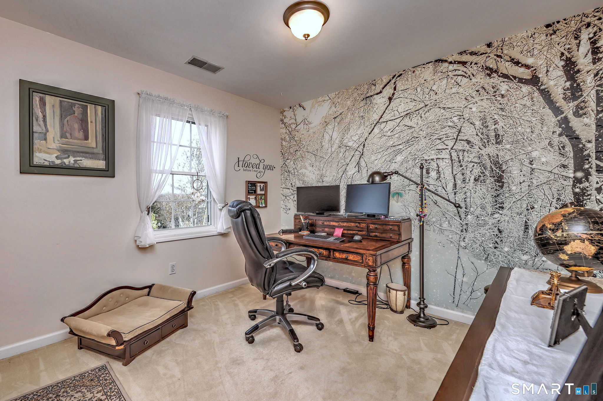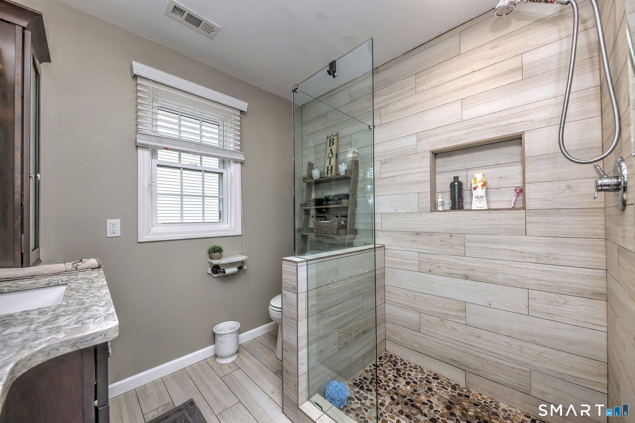 This gorgeous Colonial offers exceptional curb appeal and a welcoming front porch that instantly feels like home. Inside, you'll find gleaming hardwood floors, recessed lighting, and an abundance of natural light pouring in through large windows. The updated kitchen is both stylish and functional, flowing seamlessly into the main living spaces, perfect for everyday living and entertaining alike. Step outside to a beautiful back deck, ideal for relaxing or hosting gatherings in a private setting. The bathrooms have been tastefully updated with modern finishes, creating a fresh and sophisticated feel throughout. The spacious primary suite features a separate dressing area, full bath, and a walk-in closet, offering both comfort and convenience. Additional bedrooms provide flexibility, featuring wall-to-wall carpeting for added warmth and comfort. A truly move-in ready home that blends classic charm with thoughtful updates, don't miss this one it wont last long! **Gutter guards added in 2019 to upper level gutters. Property Management letter promising replacement of backyard trees is available. $7K Stone Garden Wall - 2019 $3K Trex Front Porch - 2025 $10K Trex Deck - 2021 $6K Fireplace -2018 $4K Kitchen Counters, Sink Faucet and Black Splash - 2023 $2K New Toilets -2025 $20K Master Bath - Dressing Room -2025 $4K Driveway tarred -2025 $1800 Hot Water Heater - 2023 $12K Stairs - 2015