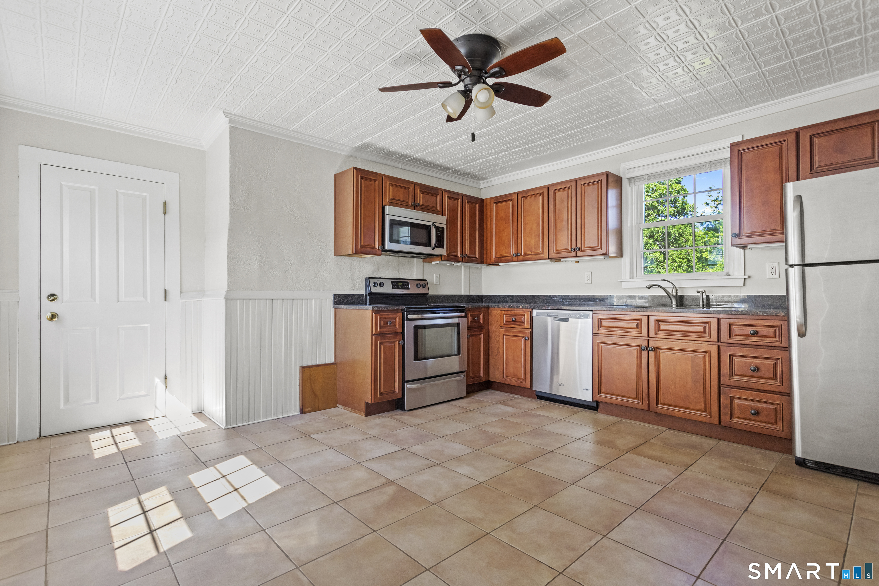 HISTORIC DOWNTOWN MYSTIC - TWO BEDROOM APARTMENT WITH 1 FULL BATH. 1,475 SQUARE FEET. ONE COVERED GARAGE BAY AND ONE UNCOVERED PARKING SPACE INCLUDED. WASHER & DRYER IN UNIT. Well loved and cared for property! Excellent Location near great restaurants, resort shopping, deep water marinas and amazing scenery. Live a Dream in Historic Downtown Mystic! Tenant pays electric, heat, A/C, Liability Insurance. No Smoking, no vaping and no pets.