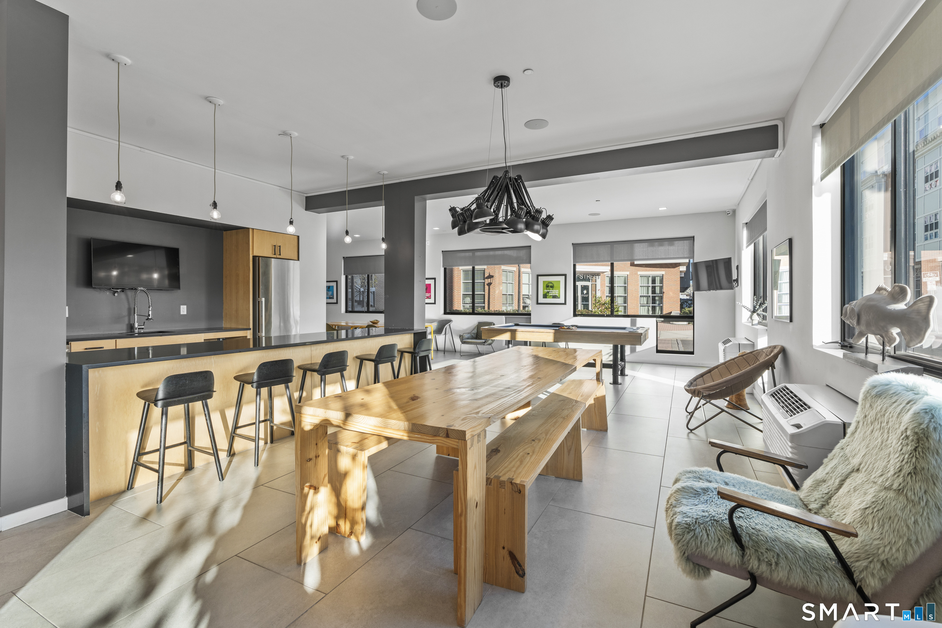 Experience elevated city meets coastal living at SoNo 19Day in South Norwalk, CT. This boutique luxury community offers a curated lifestyle with premier amenities: a rooftop terrace with panoramic skyline views, putting green, lounge chairs and grilling stations. Enjoy a state-of-the-art fitness center, a stylish business lounge, secure bike storage with a repair station, and a pet washing station for your four legged companions. Located in the vibrant SoNo neighborhood, you're steps from waterfront dining, trendy shops, cultural attractions, and the South Norwalk Metro North station, providing seamless access to the city. Residents also enjoy exclusive perks like free beach access to Calf Pasture and Shady Beach, perfect for leisurely weekends or sunset strolls along the coast. For those who value comfort, convenience, and a touch of sophistication, SoNo 19Day delivers a lifestyle where modern luxury meets coastal charm. This unique studio has a separated space for sleeping and living. Dual access to the bathroom allows you to enter the bathroom from the sleeping area or the living area, great for when you have gatherings. In-unit laundry. Images represent the same design style. Finishes or exact unit placement may differ slightly. Actual layout is a mirror image of the one depicted. Some images are virtually staged.