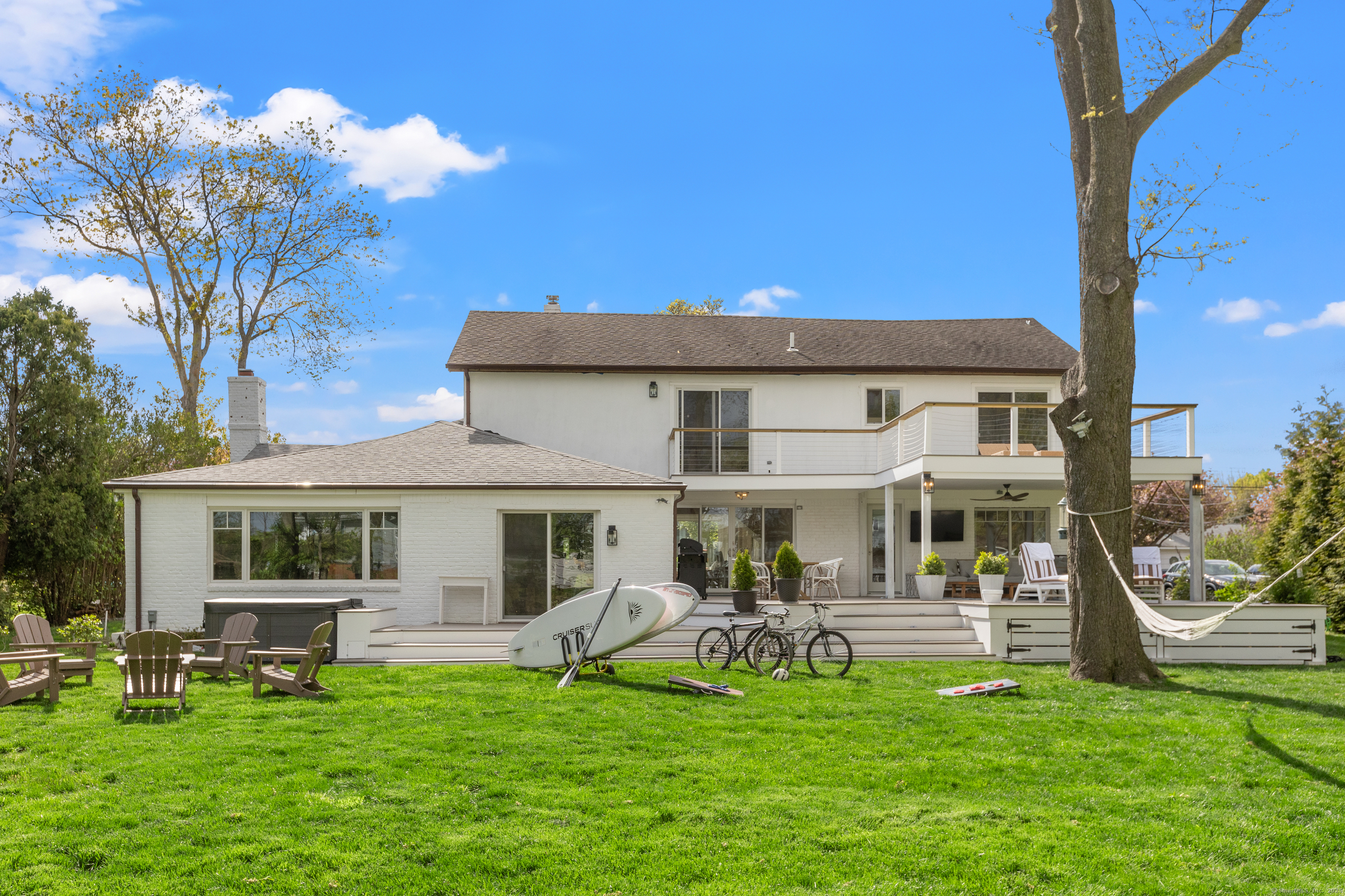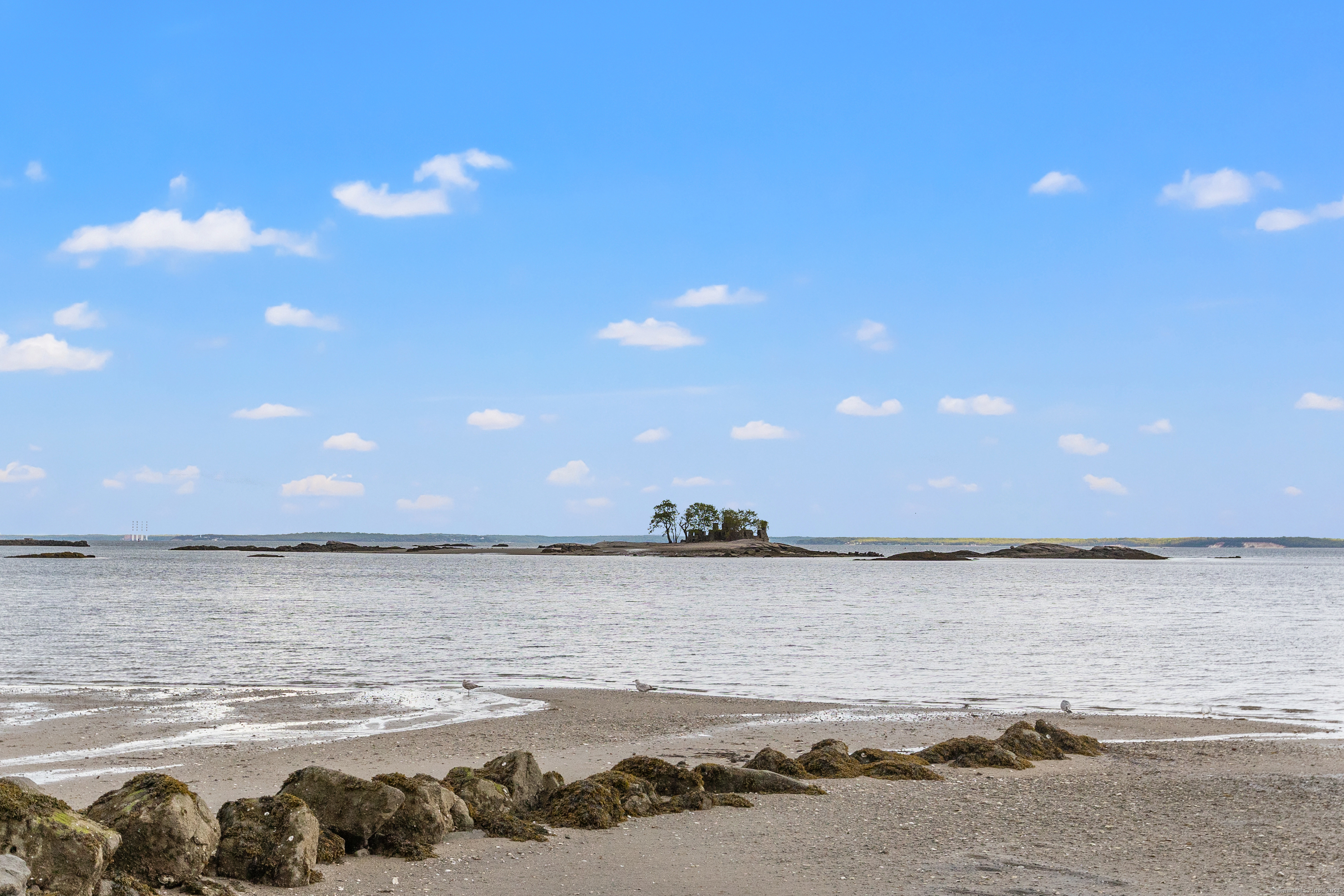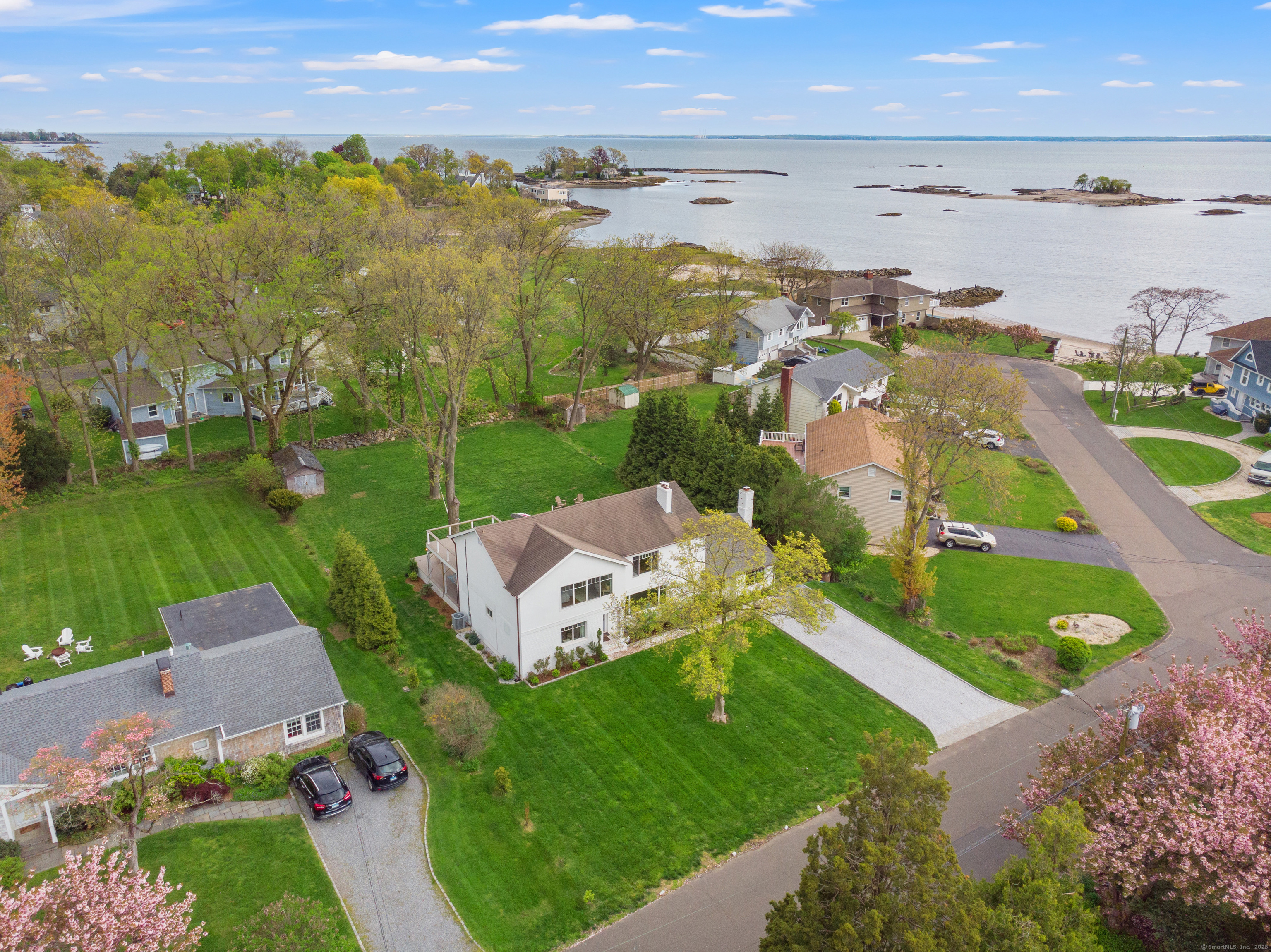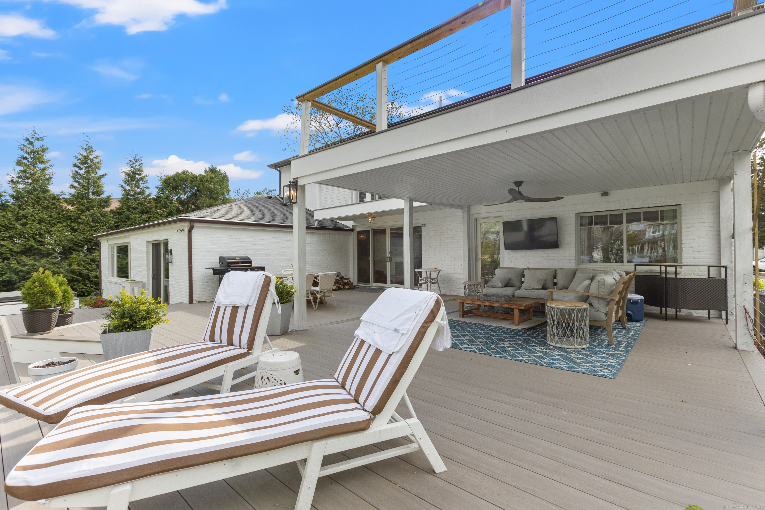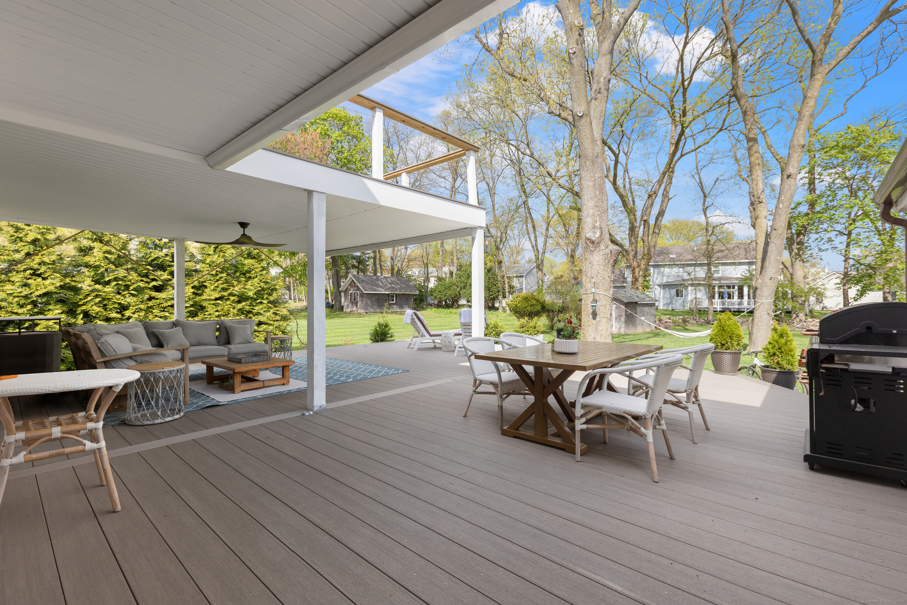 Spend your best summer yet in this stunning 5-bedroom retreat just steps from a private deeded beach, shared with only 12 homes, at the end of a peaceful cul-de-sac. Perfect for families, friends, or a remote working getaway, this fully furnished and beautifully updated home offers everything you need for a luxurious, laid-back summer on the Long Island Sound. Launch the included paddleboards for a quick trip to a nearby sandy island, or enjoy panoramic Sound views from almost every room. The open-concept main floor features a chef's kitchen, casual living space with a wood-burning fireplace, and dining area that flows out to an expansive deck-complete with an outdoor kitchen, dining space, and lounge areas. The backyard is designed for fun and relaxation: soak in the Jacuzzi, play a game of cornhole or volleyball, gather around the fire pit, or watch your favorite shows on the outdoor TV. Bikes, yard games (Giant Jenga included), and beach gear are all ready for your use. Inside, the first floor includes two bedrooms, a full gym, two full bathrooms, a spacious family room, and a dedicated home office set up for two. Upstairs, you'll find three additional bedrooms, including a suite with French doors opening to a private terrace. The spa-like bathroom includes a soaking tub, steam shower, and sauna. Conveniently located just minutes from Cove Island, Cummings Park, downtown Stamford, and the Metro North train station.