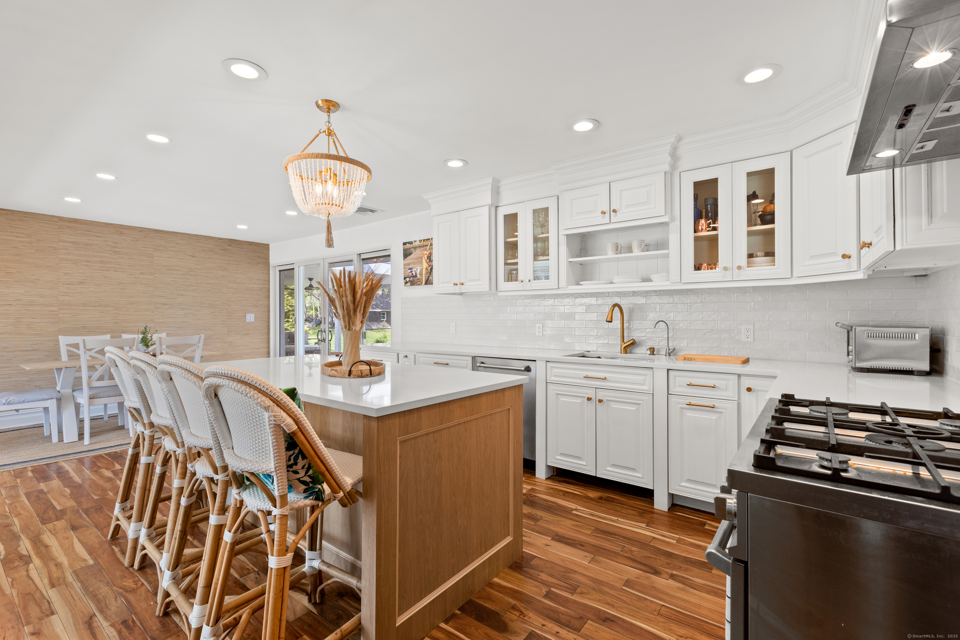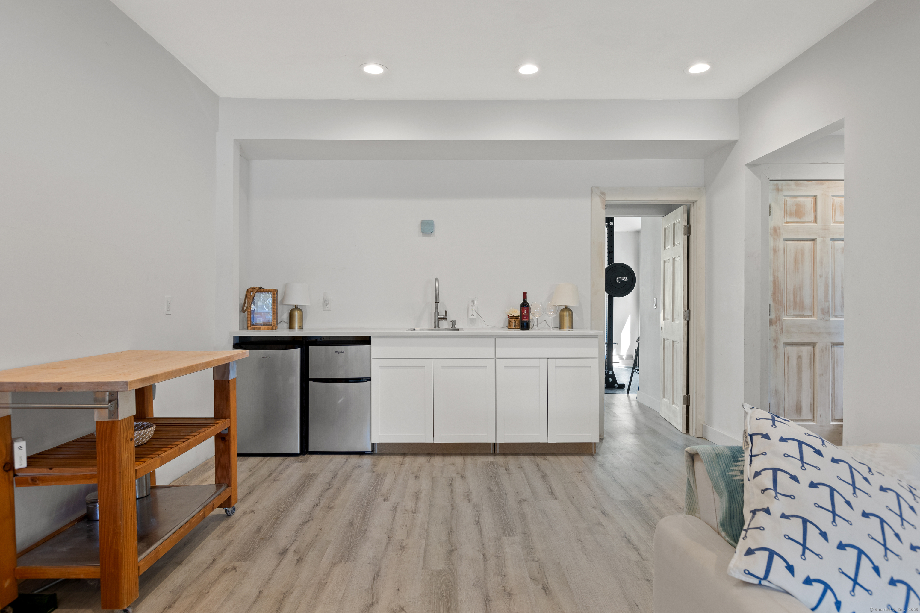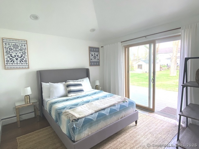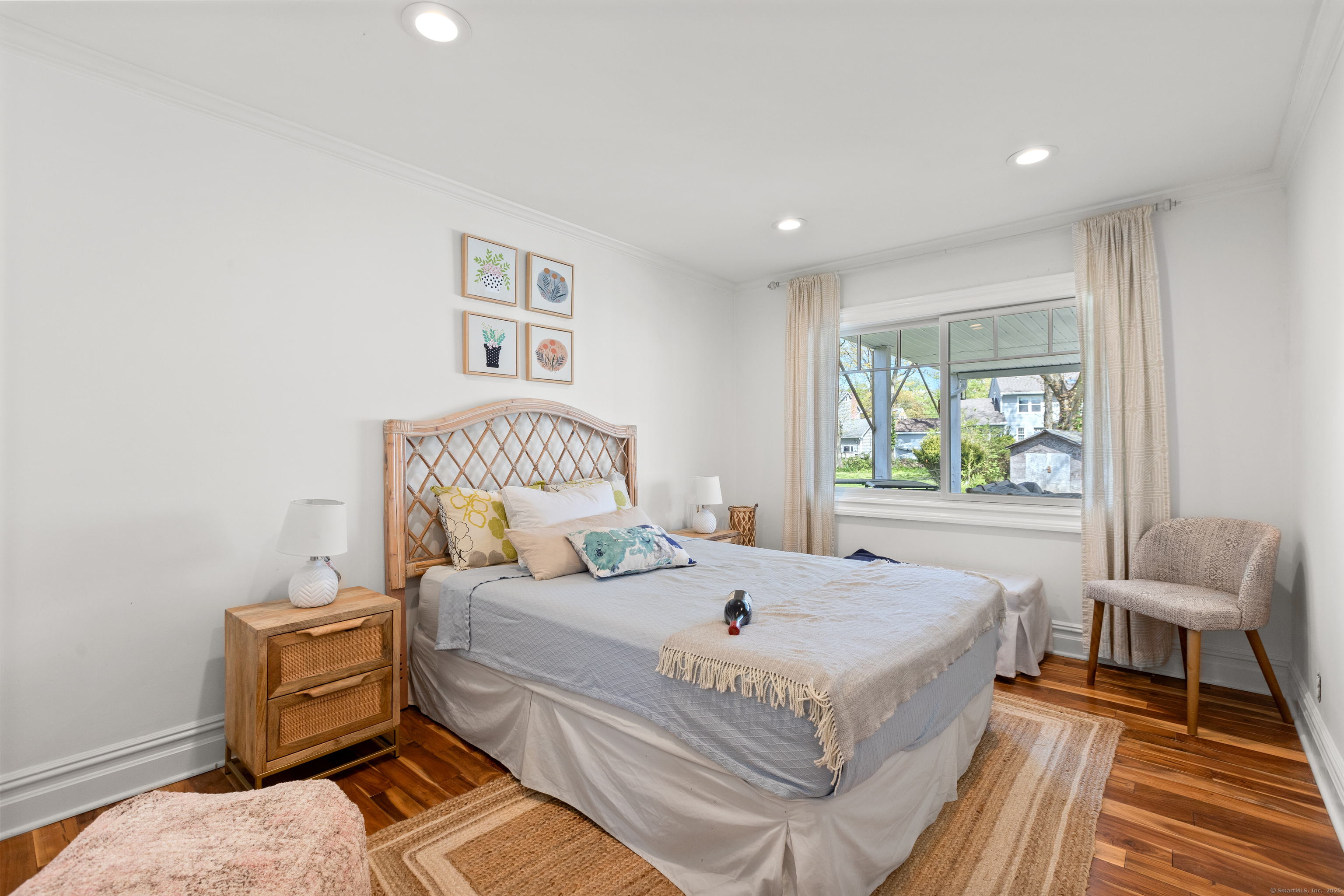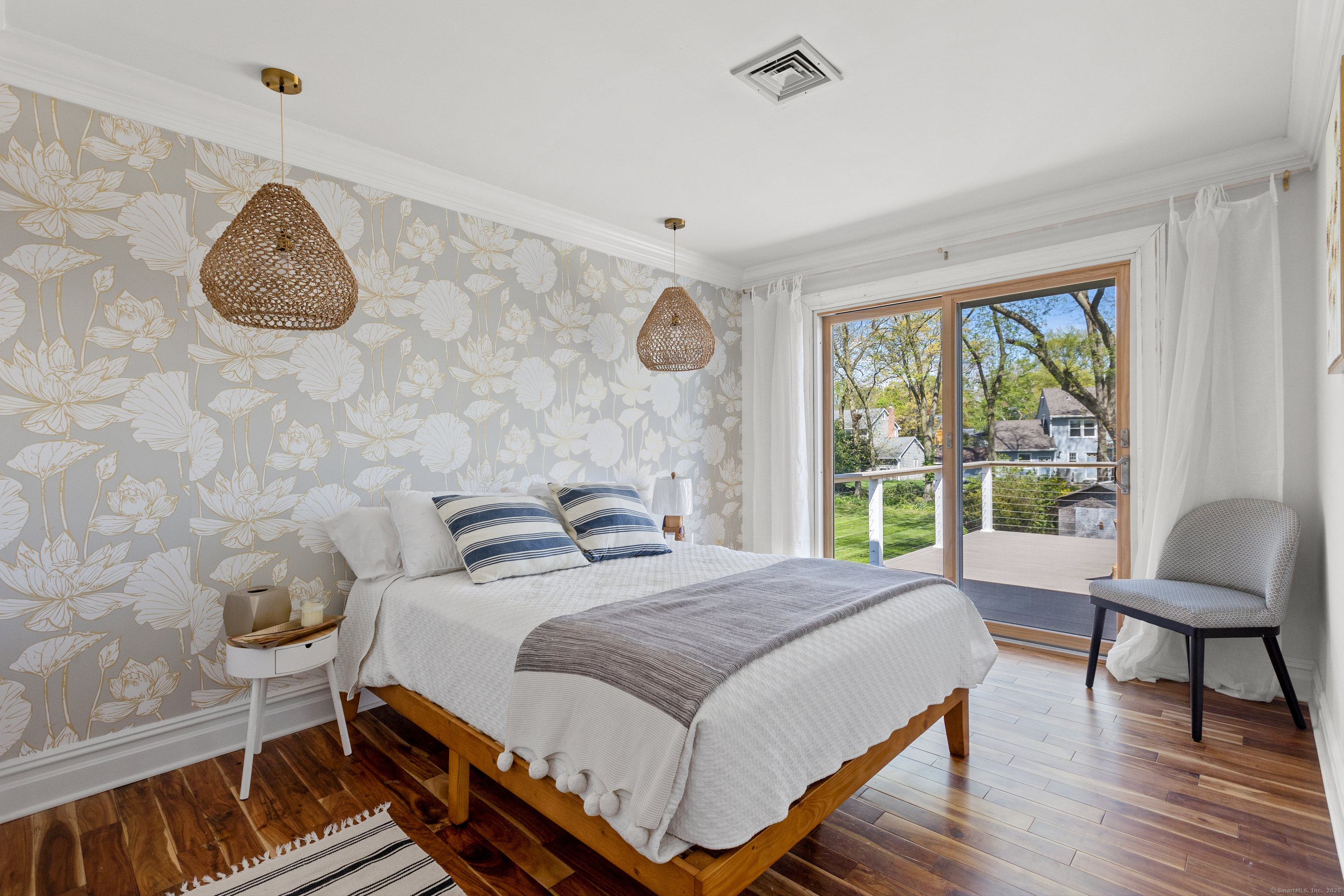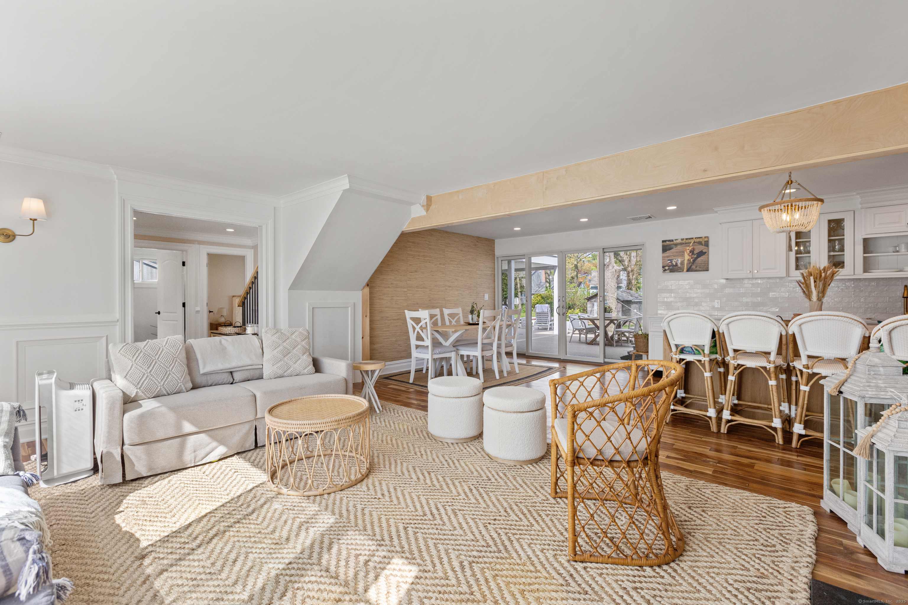 Spend your best summer yet in this stunning 5-bedroom retreat just steps from a private deeded beach, shared with only 12 homes, at the end of a peaceful cul-de-sac. Perfect for families, friends, or a remote working getaway, this fully furnished and beautifully updated home offers everything you need for a luxurious, laid-back summer on the Long Island Sound. Launch the included paddleboards for a quick trip to a nearby sandy island, or enjoy panoramic Sound views from almost every room. The open-concept main floor features a chef's kitchen, casual living space with a wood-burning fireplace, and dining area that flows out to an expansive deck-complete with an outdoor kitchen, dining space, and lounge areas. The backyard is designed for fun and relaxation: soak in the Jacuzzi, play a game of cornhole or volleyball, gather around the fire pit, or watch your favorite shows on the outdoor TV. Bikes, yard games (Giant Jenga included), and beach gear are all ready for your use. Inside, the first floor includes two bedrooms, a full gym, two full bathrooms, a spacious family room, and a dedicated home office set up for two. Upstairs, you'll find three additional bedrooms, including a suite with French doors opening to a private terrace. The spa-like bathroom includes a soaking tub, steam shower, and sauna. Conveniently located just minutes from Cove Island, Cummings Park, downtown Stamford, and the Metro North train station.