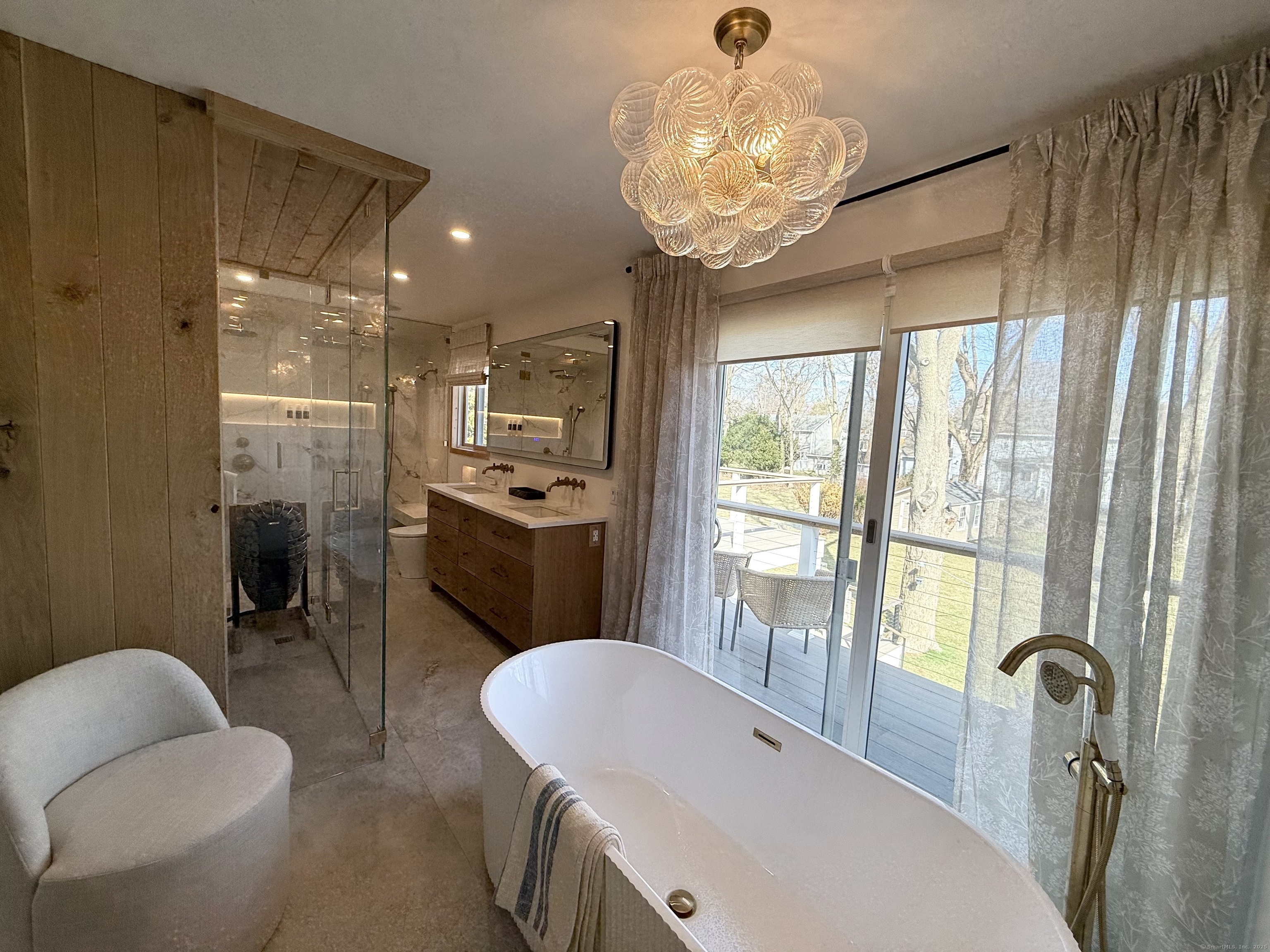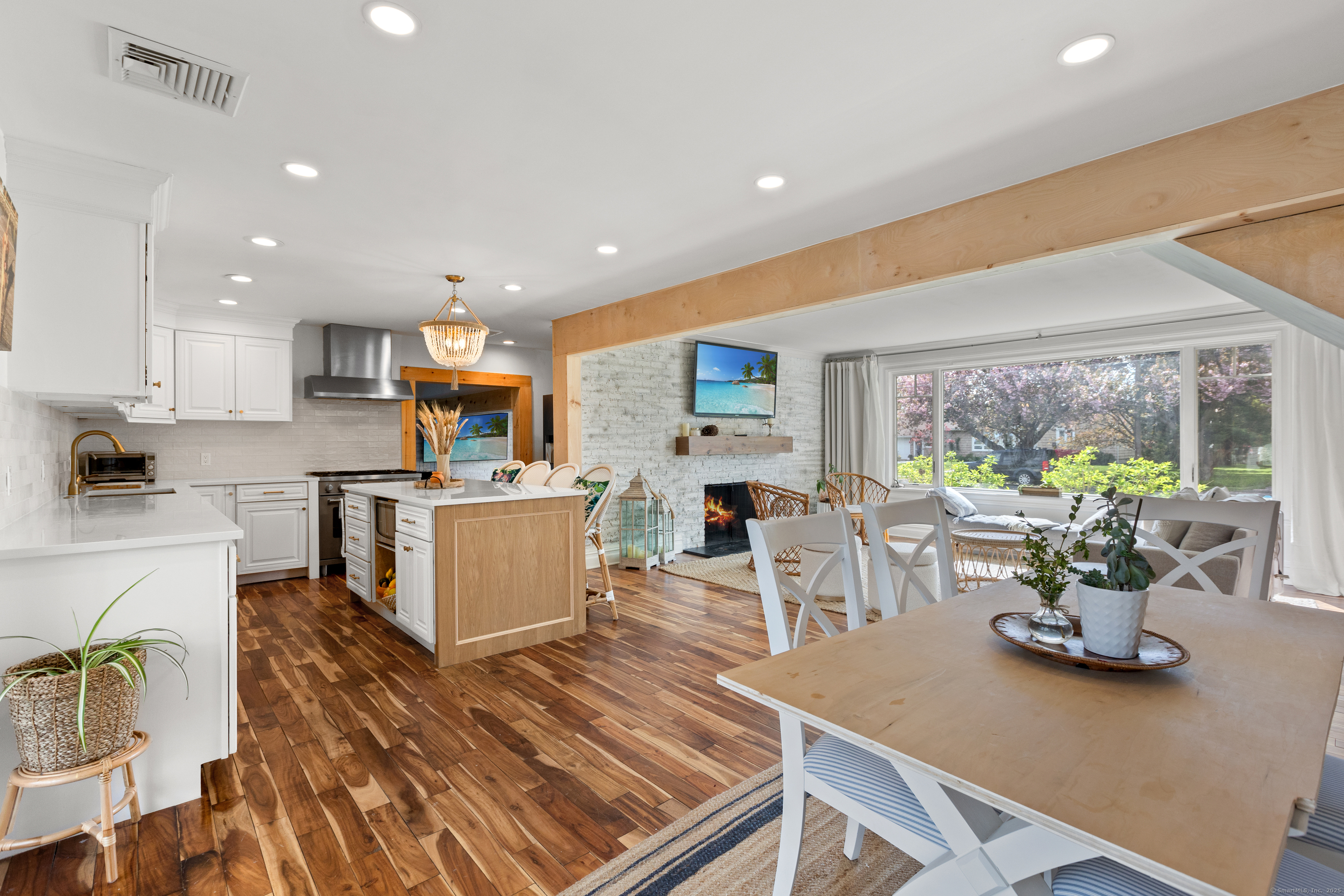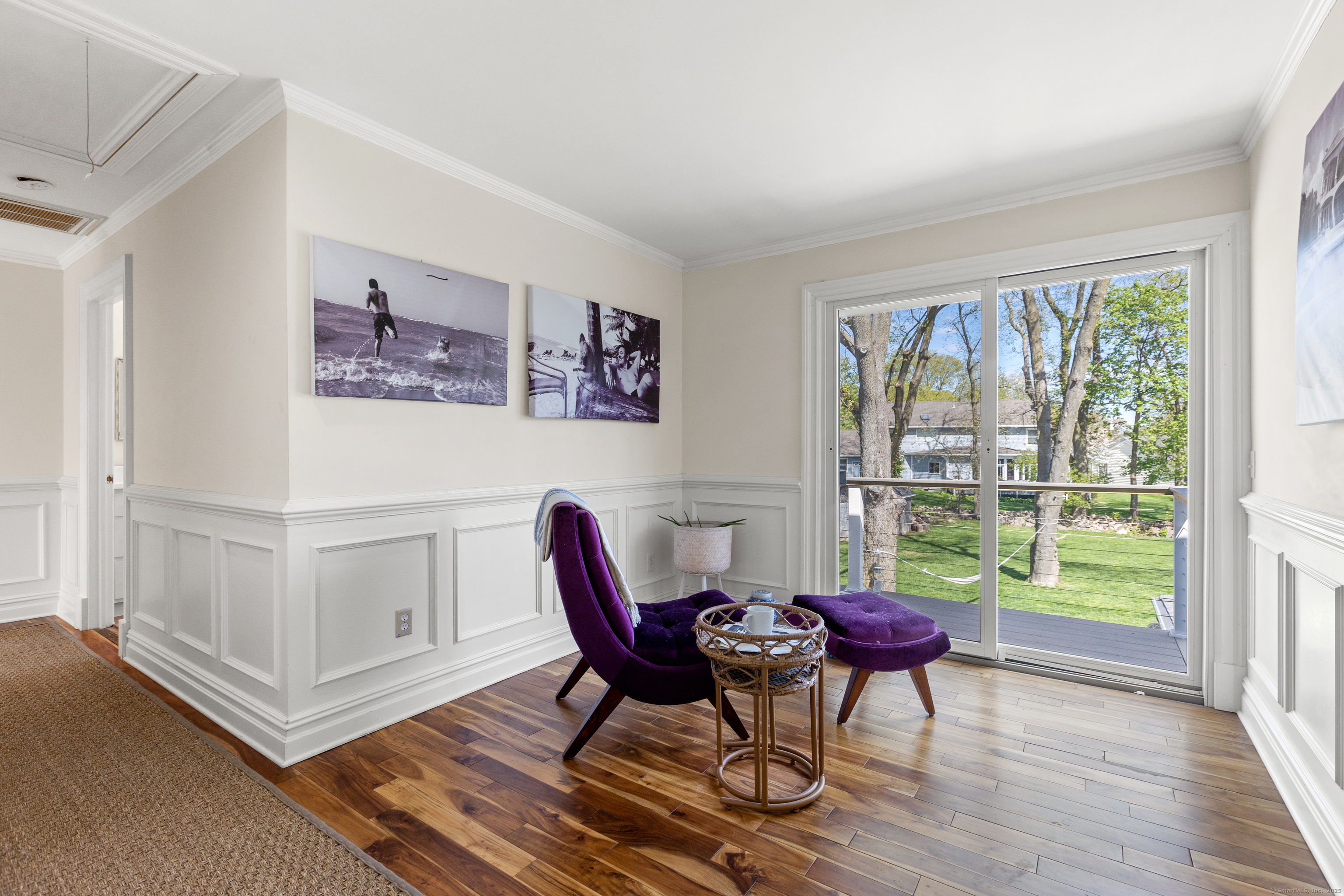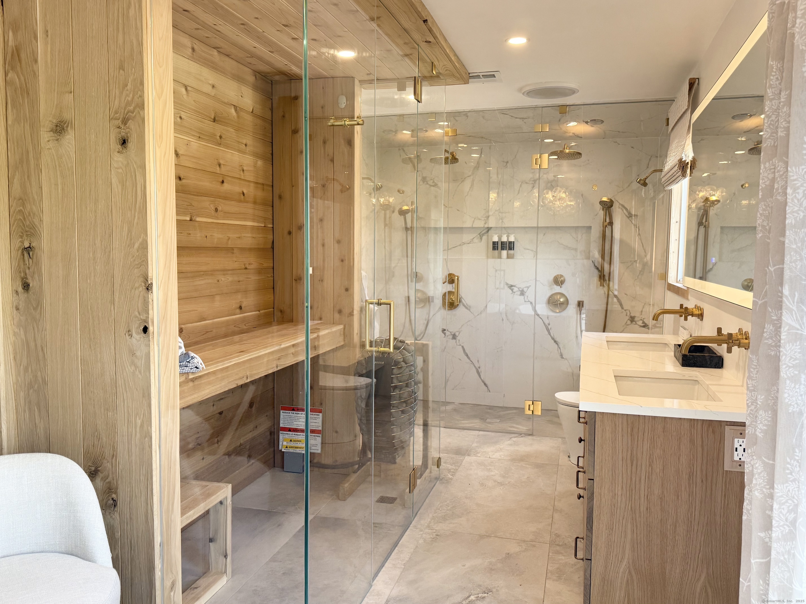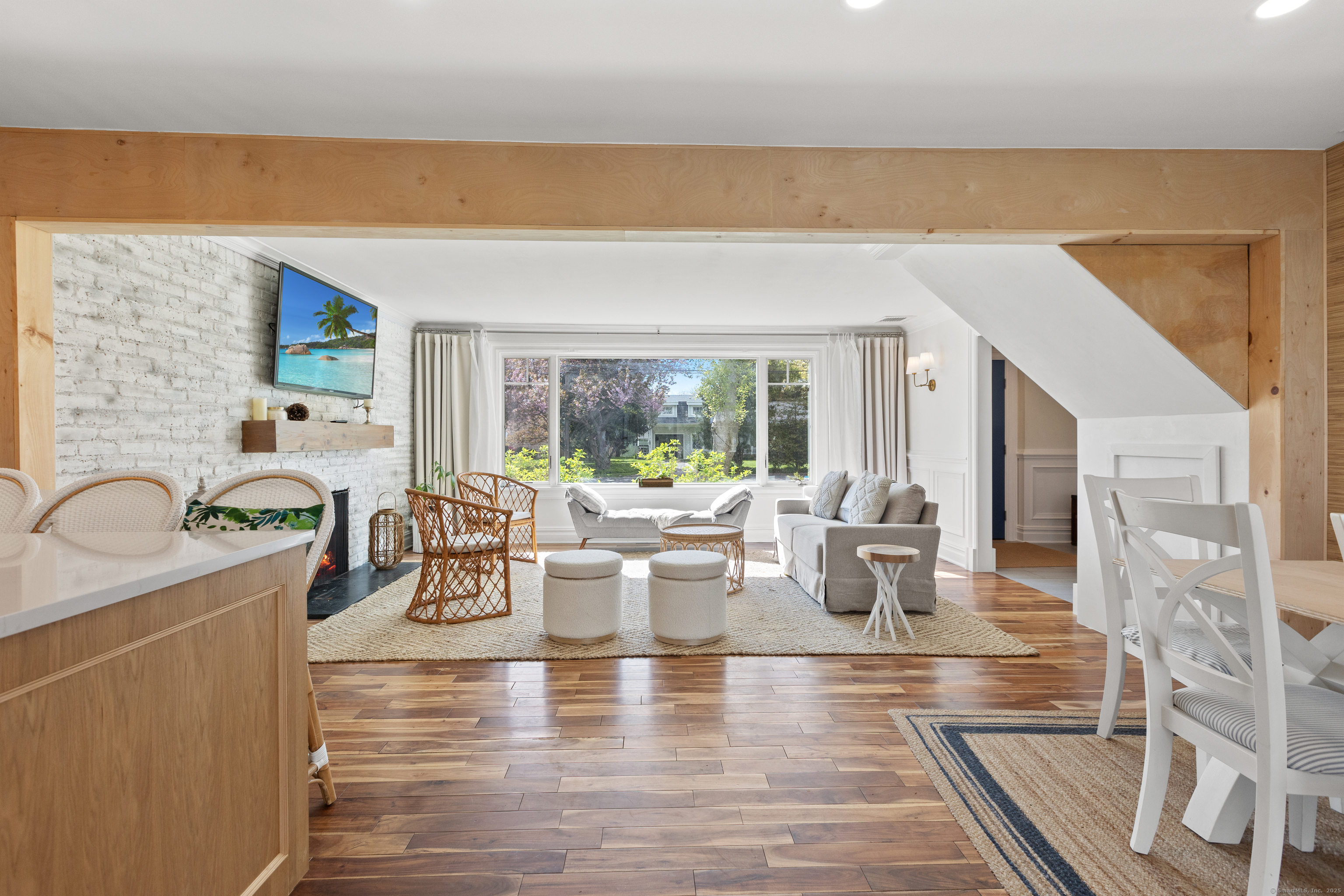 Spend your best summer yet in this stunning 5-bedroom retreat just steps from a private deeded beach, shared with only 12 homes, at the end of a peaceful cul-de-sac. Perfect for families, friends, or a remote working getaway, this fully furnished and beautifully updated home offers everything you need for a luxurious, laid-back summer on the Long Island Sound. Launch the included paddleboards for a quick trip to a nearby sandy island, or enjoy panoramic Sound views from almost every room. The open-concept main floor features a chef's kitchen, casual living space with a wood-burning fireplace, and dining area that flows out to an expansive deck-complete with an outdoor kitchen, dining space, and lounge areas. The backyard is designed for fun and relaxation: soak in the Jacuzzi, play a game of cornhole or volleyball, gather around the fire pit, or watch your favorite shows on the outdoor TV. Bikes, yard games (Giant Jenga included), and beach gear are all ready for your use. Inside, the first floor includes two bedrooms, a full gym, two full bathrooms, a spacious family room, and a dedicated home office set up for two. Upstairs, you'll find three additional bedrooms, including a suite with French doors opening to a private terrace. The spa-like bathroom includes a soaking tub, steam shower, and sauna. Conveniently located just minutes from Cove Island, Cummings Park, downtown Stamford, and the Metro North train station.