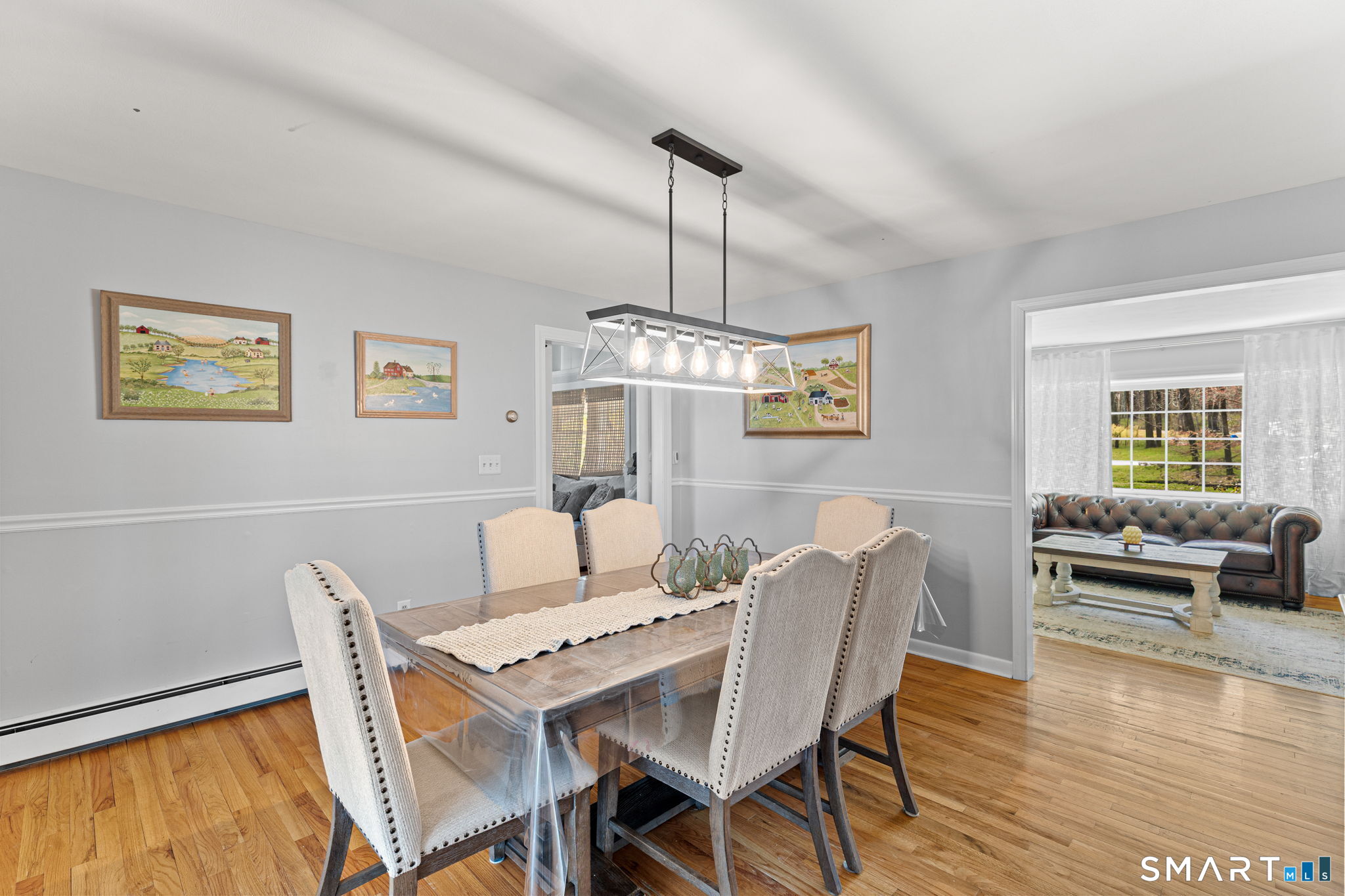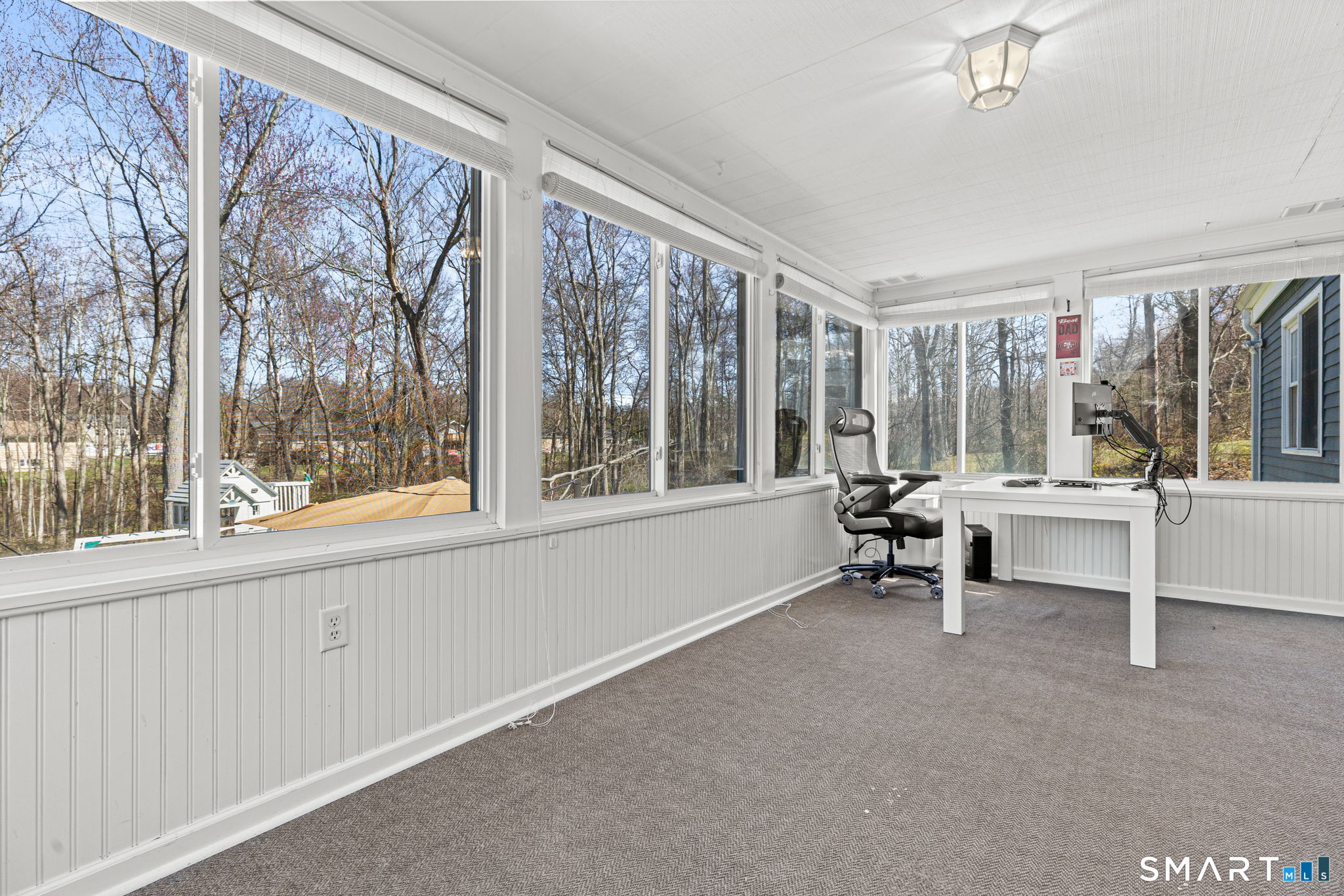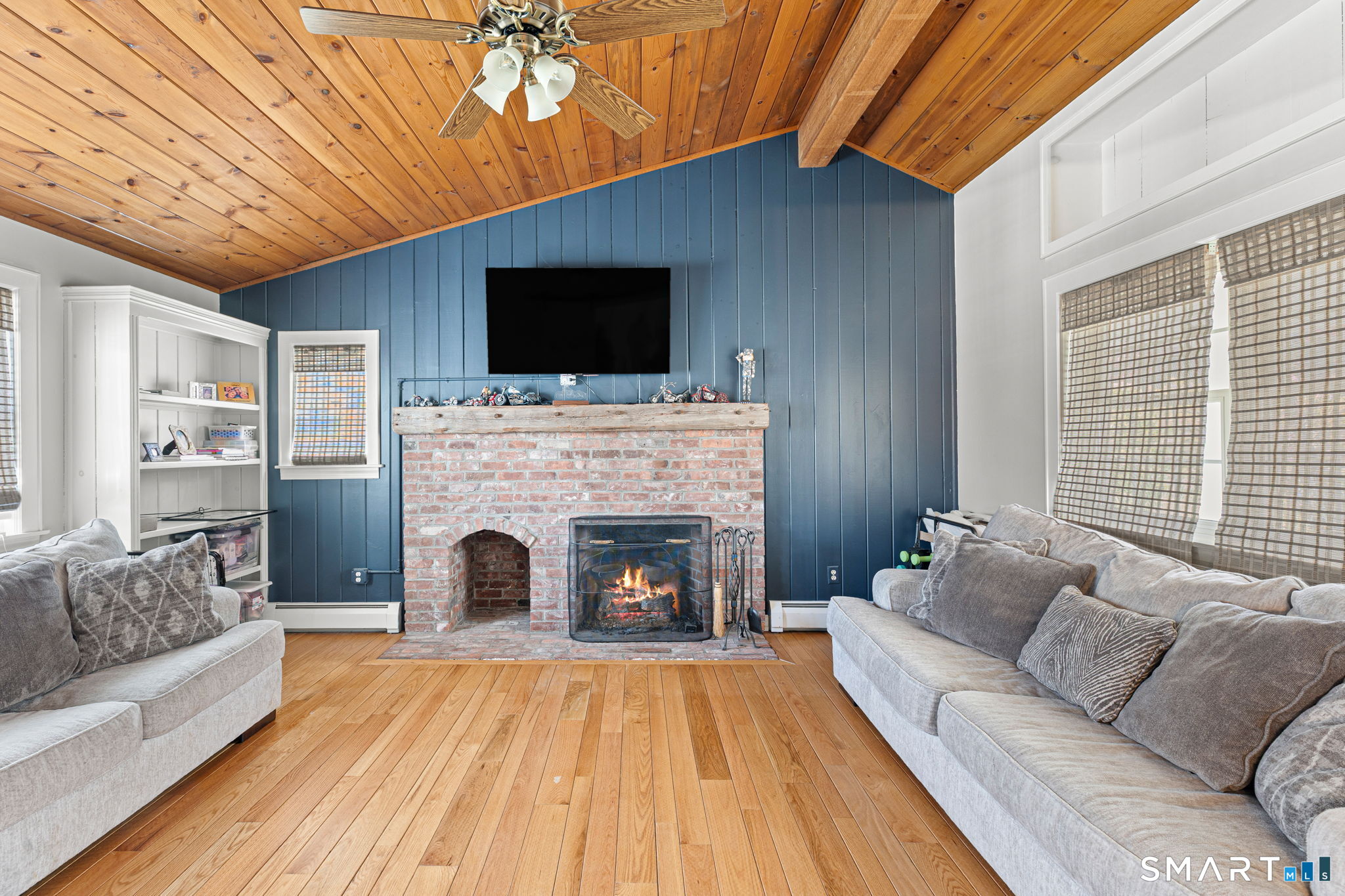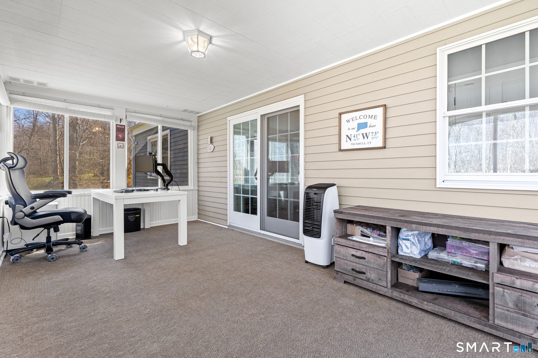 Single-family 3-bedroom, 2-bathroom Ranch in the Tashua neighborhood of Trumbull, Connecticut. This 1,680-square-foot home features hardwood floors, a living room with a wood-burning fireplace, and a bay window that fills the space with natural light. The family room offers a vaulted ceiling and a second fireplace, custom built-in shelving, creating two distinct living areas on the main level. A three-season enclosed porch extends the main living area and opens to a large renovated patio in the backyard - expansive and private backyard designed for relaxed entertaining across spring, summer, and fall. The partially finished lower level includes a flexible-use space ideal as a home office, gym, or recreation room, with walk-out access to the 2-car attached garage. The garage is equipped with an electric vehicle charging station. A Newer Water Heater, and Heating System provides efficient heating throughout the home. Central air providing cooling through the home. Located in the Tashua section of Trumbull, CT, residents enjoy access to Tashua recreation facilities, nearby parks, and nearby public transportation with convenient routes to the Merritt Parkway and Route 25. A well-maintained, single-level Ranch with dual fireplaces, EV charging, new Heating System, and indoor-outdoor living in Tashua, Trumbull, CT 06611.
