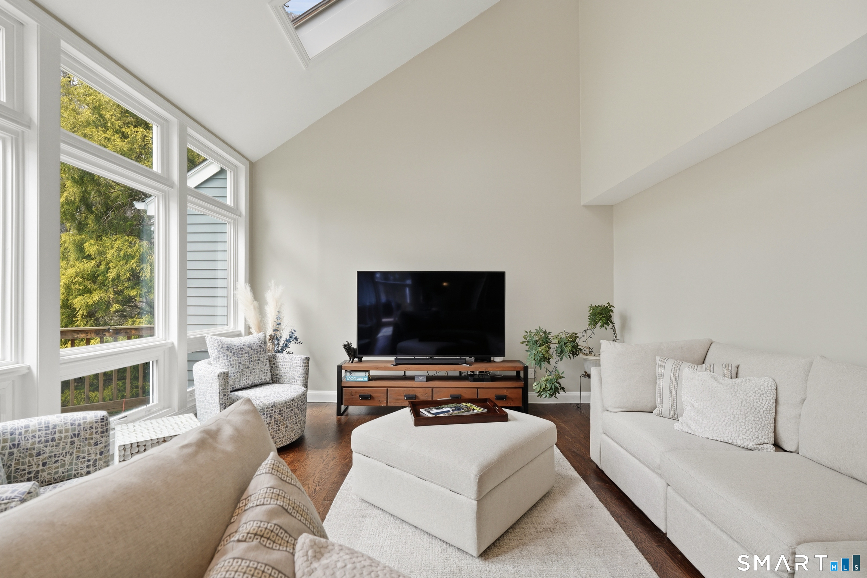 Tucked away on a quiet, tree-lined street in the center of town, 40 Deer Hill Road offers the rare balance of privacy, comfort, and everyday convenience. The moment you step inside, you are greeted by cascading natural light from a dramatic wall of windows. At the heart of the home is the main living area, an inviting space anchored by a fireplace, soaring cathedral ceilings, and windows that frame the changing seasons and bring the outdoors in. Just beyond, the deck serves as a private retreat, perfect for morning coffee or summer dinners overlooking the serene property. The updated eat-in kitchen is designed for both everyday living and entertaining, featuring a center island, double ovens, and generous space to gather. With comfort and flexibility in mind, the home also features a first-floor primary suite with a fireplace, private deck, dual walk in closets and a spacious primary bath w/oversized shower and soaking tub, creating a true retreat. The main level is rounded out with a second bedroom, 2 additional baths, dining room, & an office. Upstairs are 2 large bedrooms sharing a full bath. A bonus room above the garage offers versatility, ideal as a second office, playroom, media room, or guest space. With extensive improvements, peaceful surroundings, and a location that offers convenient access to town, schools, commuter routes & dining, this is a home that effortlessly combines everyday ease with the space to relax, gather, & truly enjoy.OFFER DEADLINE TUES 4/28 12PM