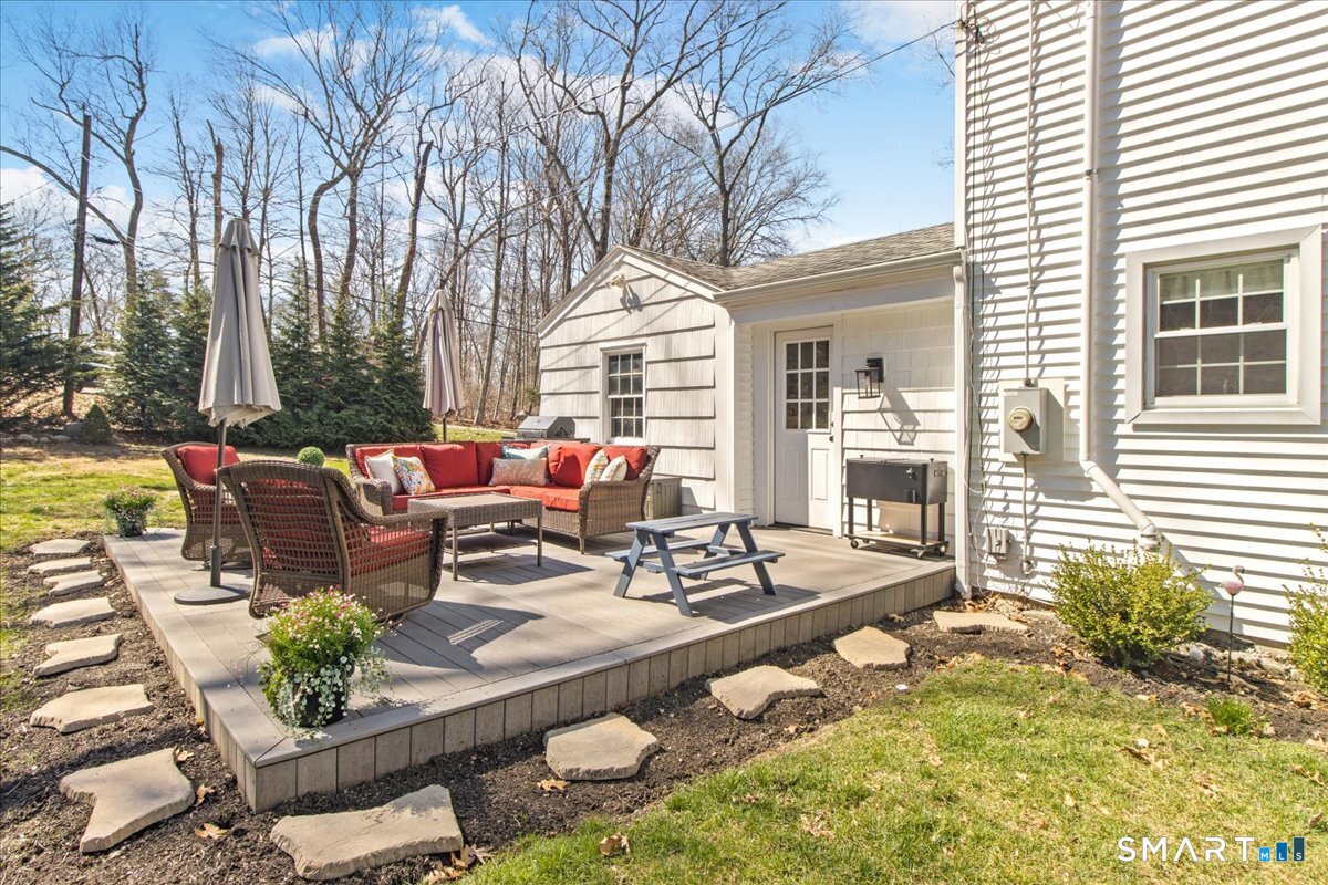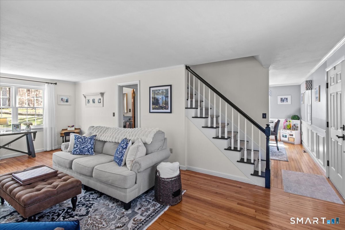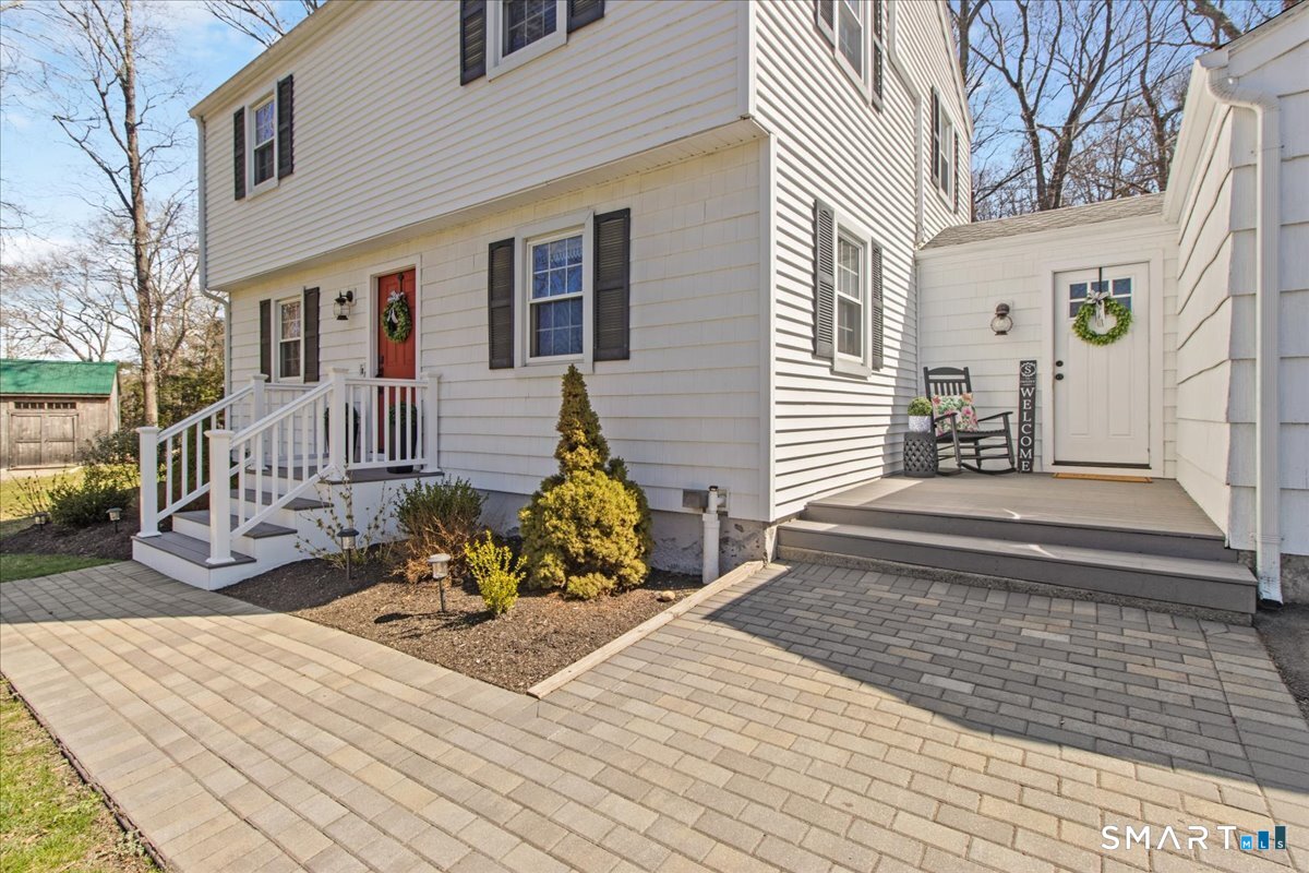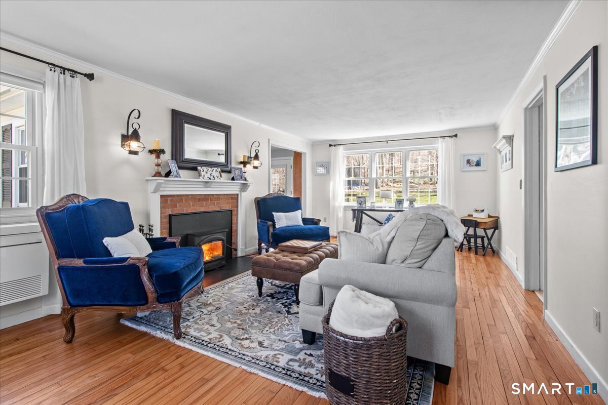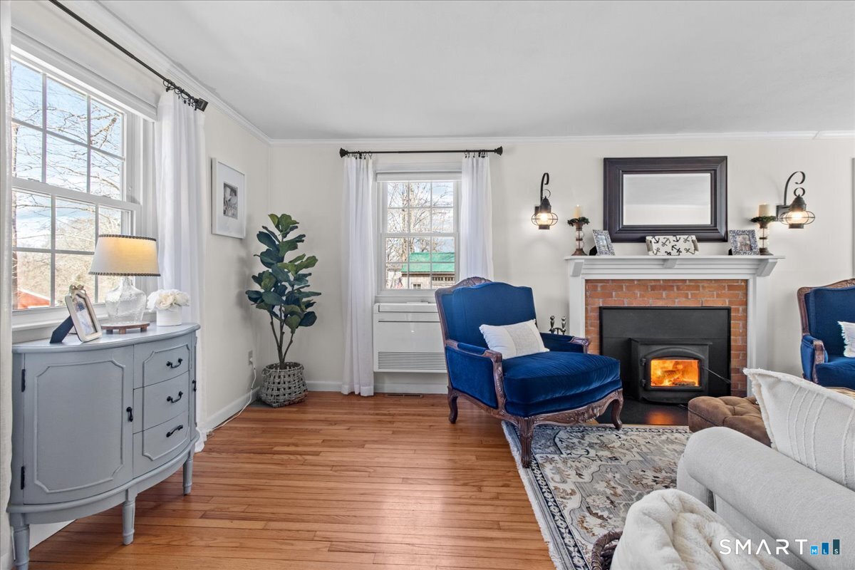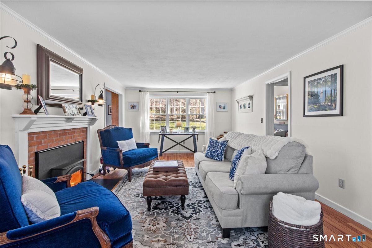 Nestled on a quiet street with no through traffic, this meticulously cared-for Colonial is a sanctuary of comfort and light. The journey begins in the inviting living room, where the crackle of the wood-burning stove creates a cozy atmosphere for crisp evenings. Beyond, the home opens into a breathtaking family room addition; here, soaring cathedral ceilings and rustic exposed beams frame a space bathed in lots of natural light. Gleaming hardwood floors flow seamlessly throughout the residence. The kitchen has been updated and refined with elegant granite countertops and a thoughtful clean backsplash. Retreat to the primary suite, a private haven featuring an expansive walk-in closet and a spa-like ensuite bath. Every modern detail has been considered for effortless living, from the whisper-quiet mini-splits for year-round climate control to the peace of mind offered by a new septic system installed in 2022. Outside, your own personal park awaits! A peaceful backyard retreat where a spacious deck overlooks lush grounds with endless room to play and explore. A post and beam shed will store your yard equipment and tools. While you'll feel worlds away in your private oasis, you are perfectly positioned just minutes from the Subbase, Coast Guard and Electric Boat, with the historic, coastal magic of Mystic only a 20-minute drive away. Complete with a one-car garage, large basement for storage or finishing, this home is not just a residence, but a place to love.