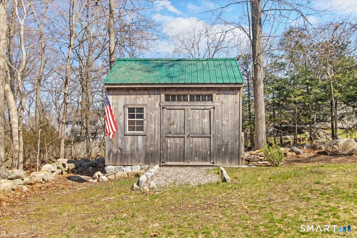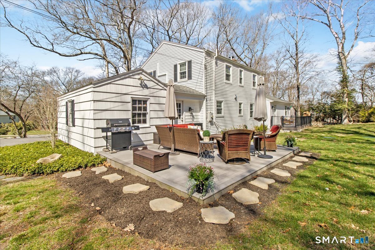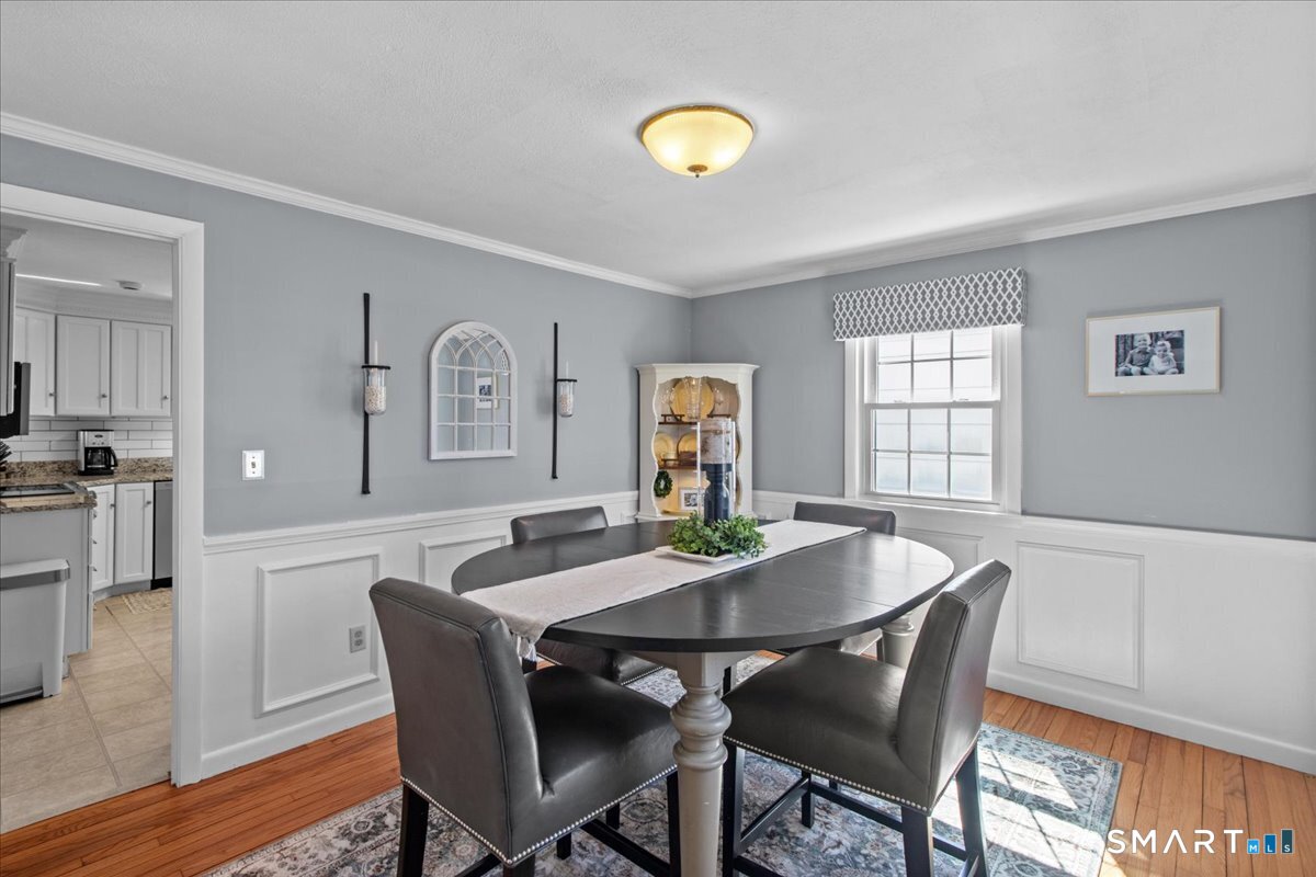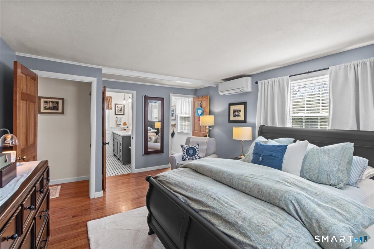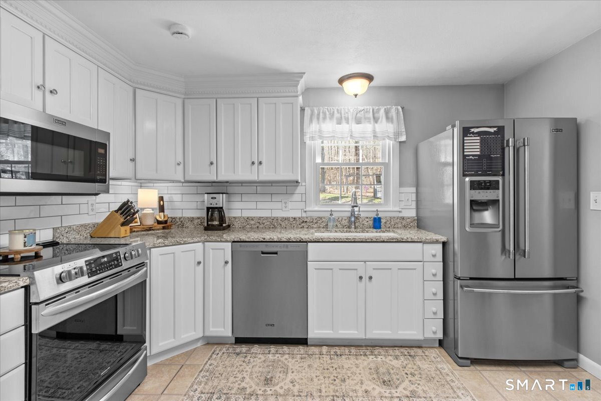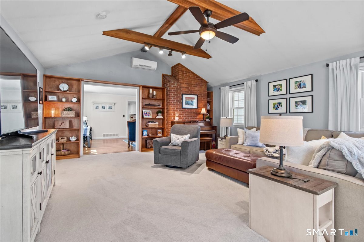Nestled on a quiet street with no through traffic, this meticulously cared-for Colonial is a sanctuary of comfort and light. The journey begins in the inviting living room, where the crackle of the wood-burning stove creates a cozy atmosphere for crisp evenings. Beyond, the home opens into a breathtaking family room addition; here, soaring cathedral ceilings and rustic exposed beams frame a space bathed in lots of natural light. Gleaming hardwood floors flow seamlessly throughout the residence. The kitchen has been updated and refined with elegant granite countertops and a thoughtful clean backsplash. Retreat to the primary suite, a private haven featuring an expansive walk-in closet and a spa-like ensuite bath. Every modern detail has been considered for effortless living, from the whisper-quiet mini-splits for year-round climate control to the peace of mind offered by a new septic system installed in 2022. Outside, your own personal park awaits! A peaceful backyard retreat where a spacious deck overlooks lush grounds with endless room to play and explore. A post and beam shed will store your yard equipment and tools. While you'll feel worlds away in your private oasis, you are perfectly positioned just minutes from the Subbase, Coast Guard and Electric Boat, with the historic, coastal magic of Mystic only a 20-minute drive away. Complete with a one-car garage, large basement for storage or finishing, this home is not just a residence, but a place to love.