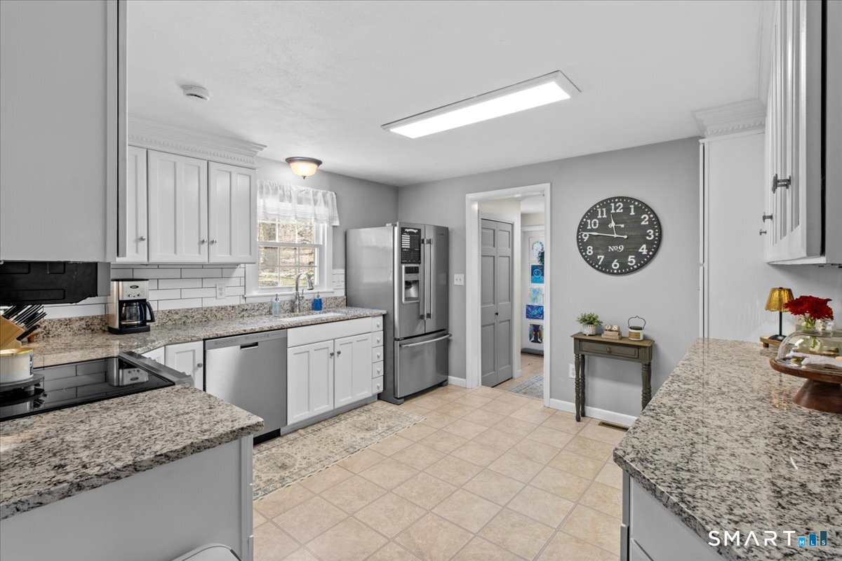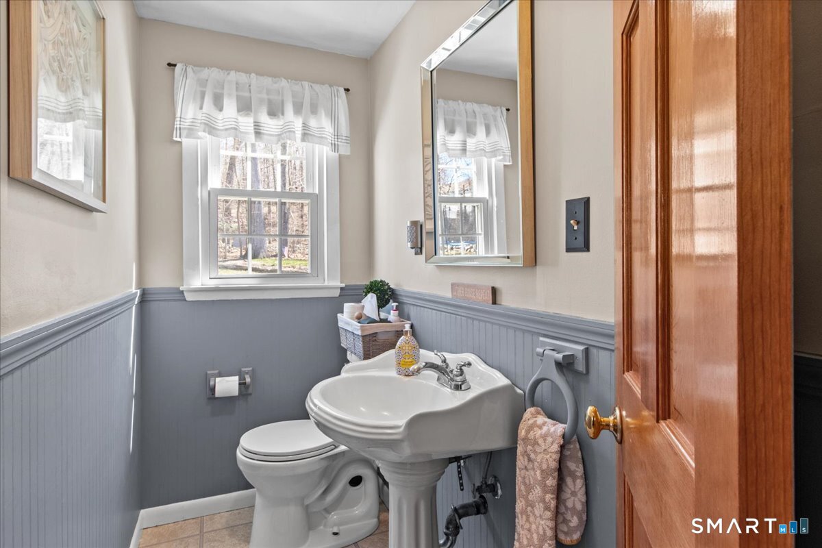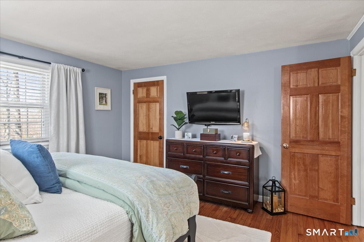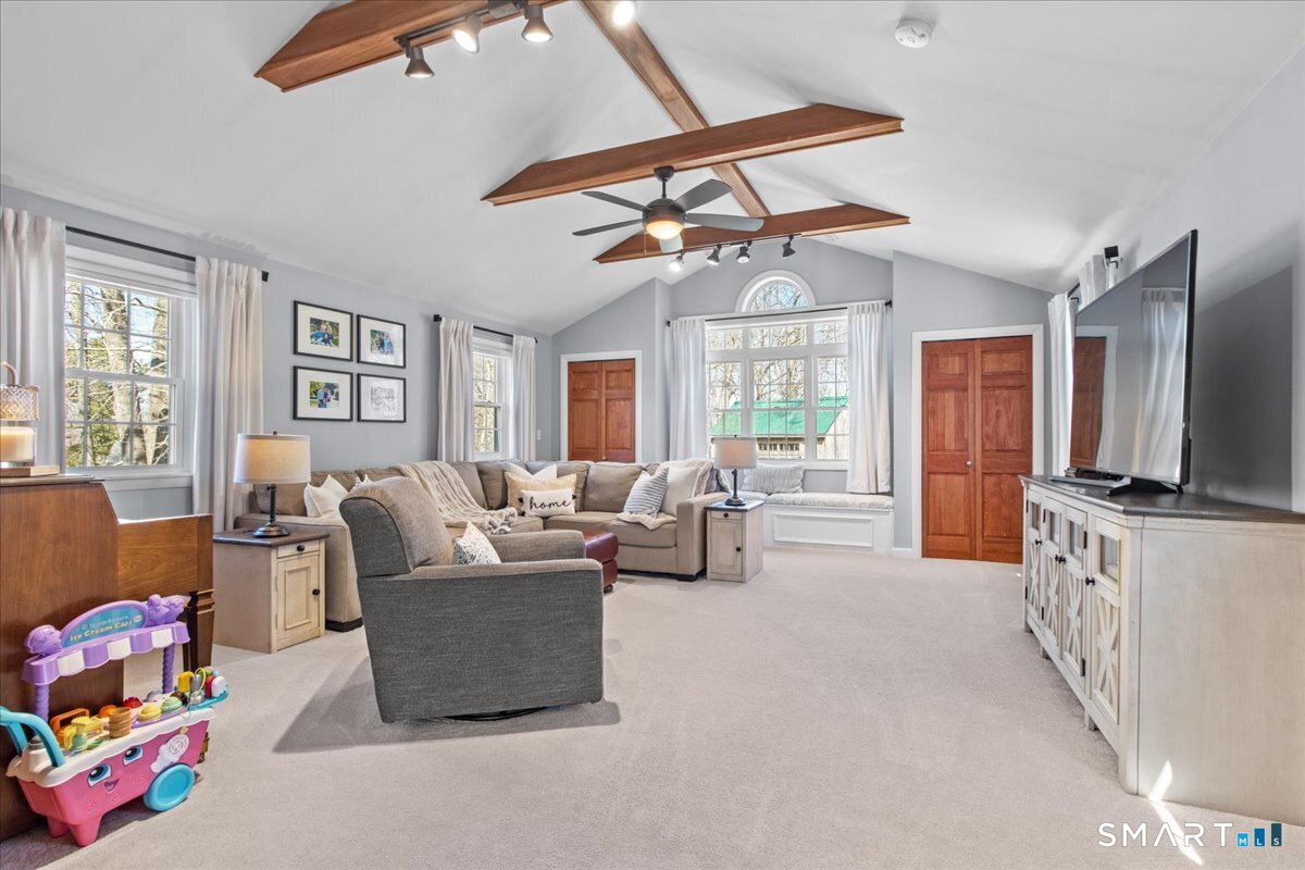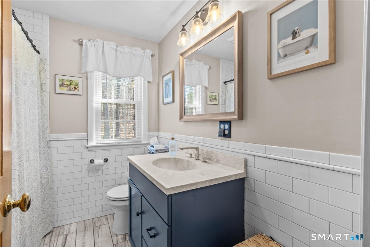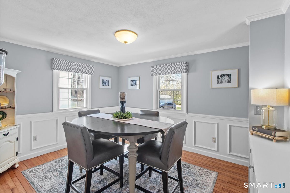 Nestled on a quiet street with no through traffic, this meticulously cared-for Colonial is a sanctuary of comfort and light. The journey begins in the inviting living room, where the crackle of the wood-burning stove creates a cozy atmosphere for crisp evenings. Beyond, the home opens into a breathtaking family room addition; here, soaring cathedral ceilings and rustic exposed beams frame a space bathed in lots of natural light. Gleaming hardwood floors flow seamlessly throughout the residence. The kitchen has been updated and refined with elegant granite countertops and a thoughtful clean backsplash. Retreat to the primary suite, a private haven featuring an expansive walk-in closet and a spa-like ensuite bath. Every modern detail has been considered for effortless living, from the whisper-quiet mini-splits for year-round climate control to the peace of mind offered by a new septic system installed in 2022. Outside, your own personal park awaits! A peaceful backyard retreat where a spacious deck overlooks lush grounds with endless room to play and explore. A post and beam shed will store your yard equipment and tools. While you'll feel worlds away in your private oasis, you are perfectly positioned just minutes from the Subbase, Coast Guard and Electric Boat, with the historic, coastal magic of Mystic only a 20-minute drive away. Complete with a one-car garage, large basement for storage or finishing, this home is not just a residence, but a place to love.
