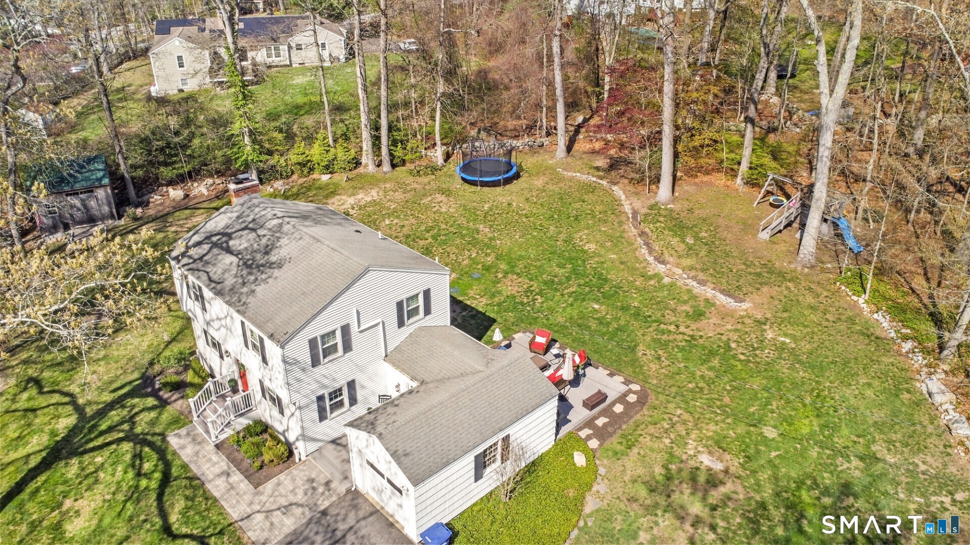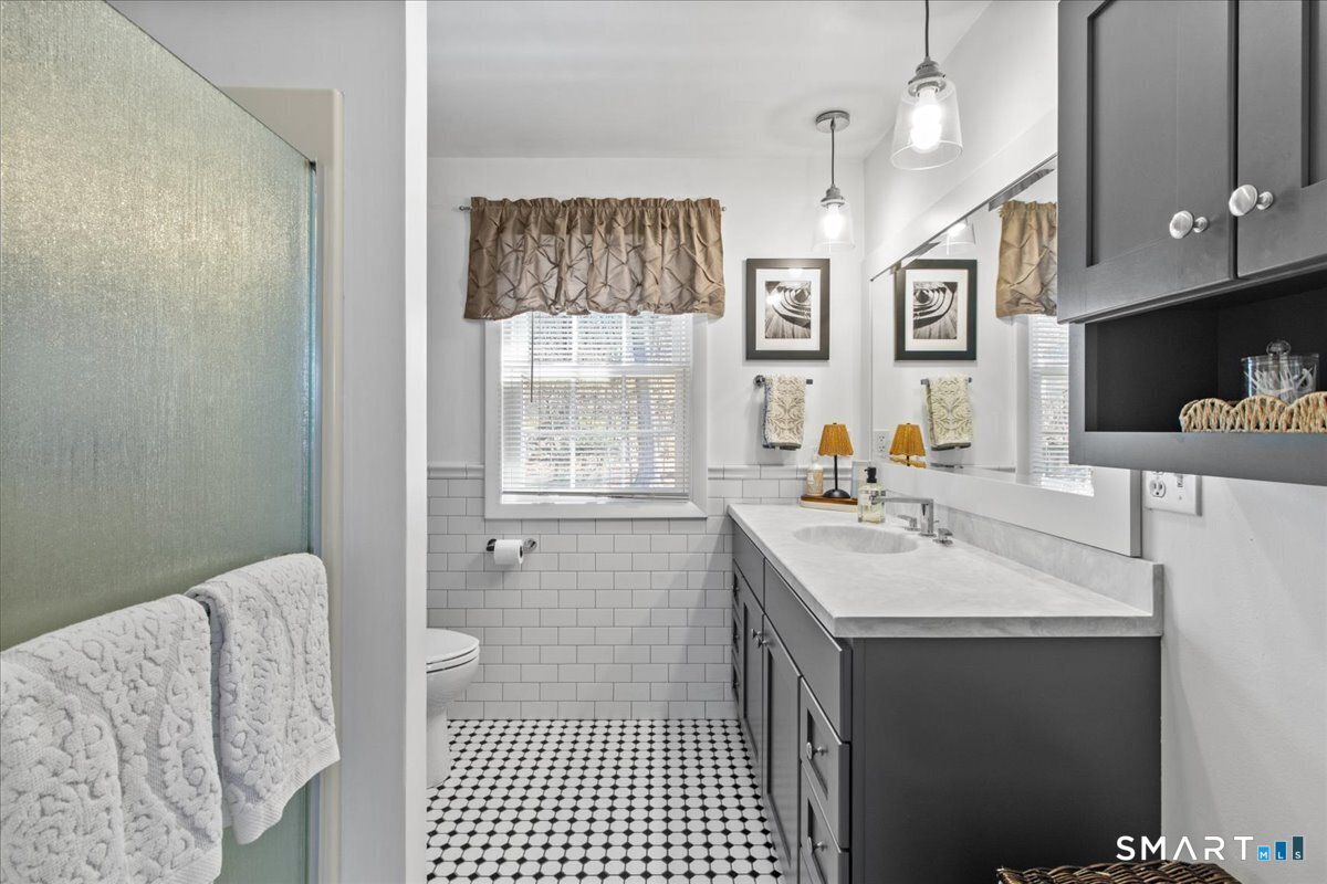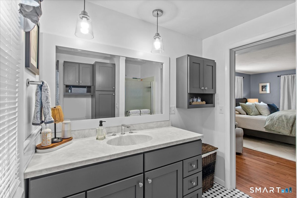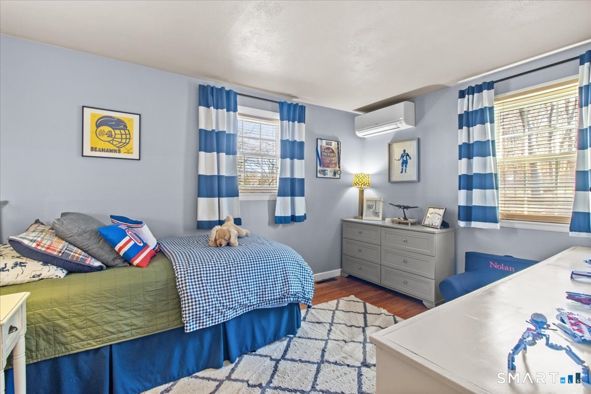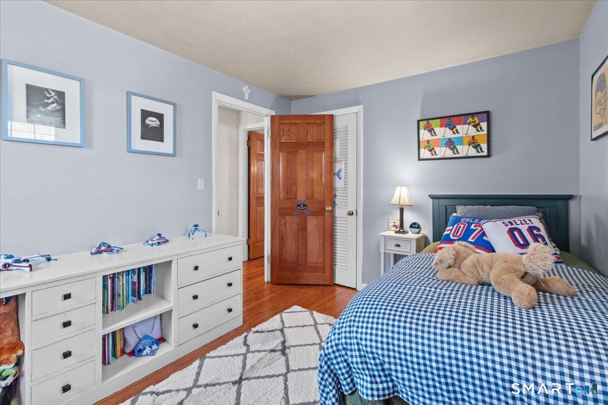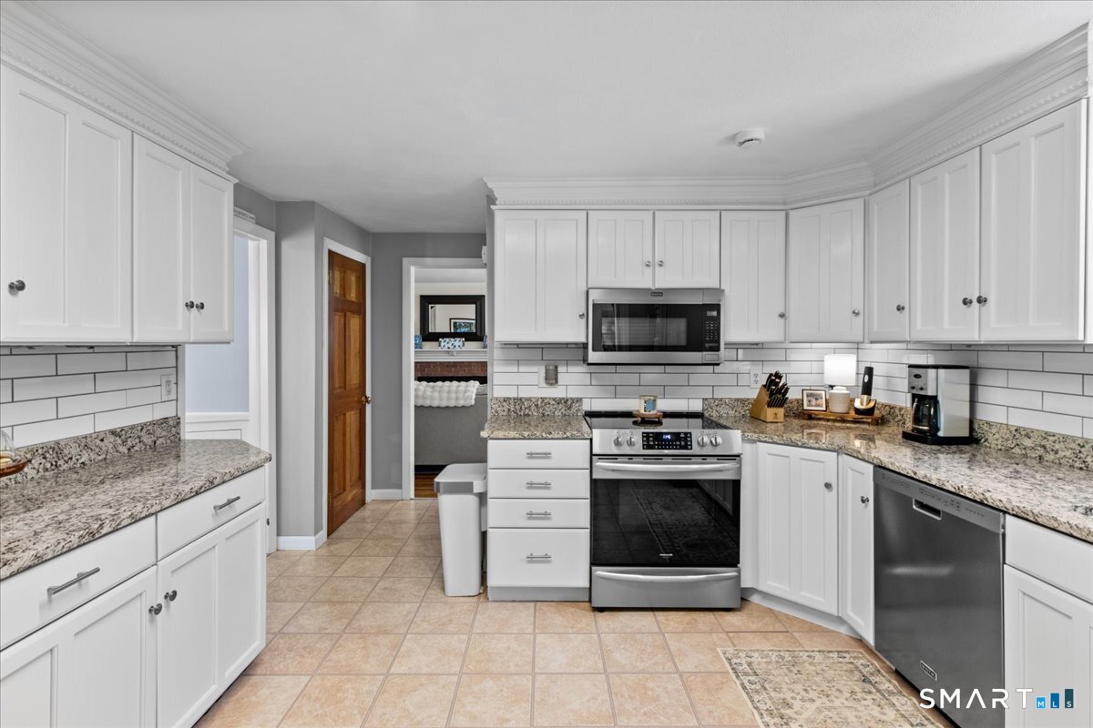 Nestled on a quiet street with no through traffic, this meticulously cared-for Colonial is a sanctuary of comfort and light. The journey begins in the inviting living room, where the crackle of the wood-burning stove creates a cozy atmosphere for crisp evenings. Beyond, the home opens into a breathtaking family room addition; here, soaring cathedral ceilings and rustic exposed beams frame a space bathed in lots of natural light. Gleaming hardwood floors flow seamlessly throughout the residence. The kitchen has been updated and refined with elegant granite countertops and a thoughtful clean backsplash. Retreat to the primary suite, a private haven featuring an expansive walk-in closet and a spa-like ensuite bath. Every modern detail has been considered for effortless living, from the whisper-quiet mini-splits for year-round climate control to the peace of mind offered by a new septic system installed in 2022. Outside, your own personal park awaits! A peaceful backyard retreat where a spacious deck overlooks lush grounds with endless room to play and explore. A post and beam shed will store your yard equipment and tools. While you'll feel worlds away in your private oasis, you are perfectly positioned just minutes from the Subbase, Coast Guard and Electric Boat, with the historic, coastal magic of Mystic only a 20-minute drive away. Complete with a one-car garage, large basement for storage or finishing, this home is not just a residence, but a place to love.