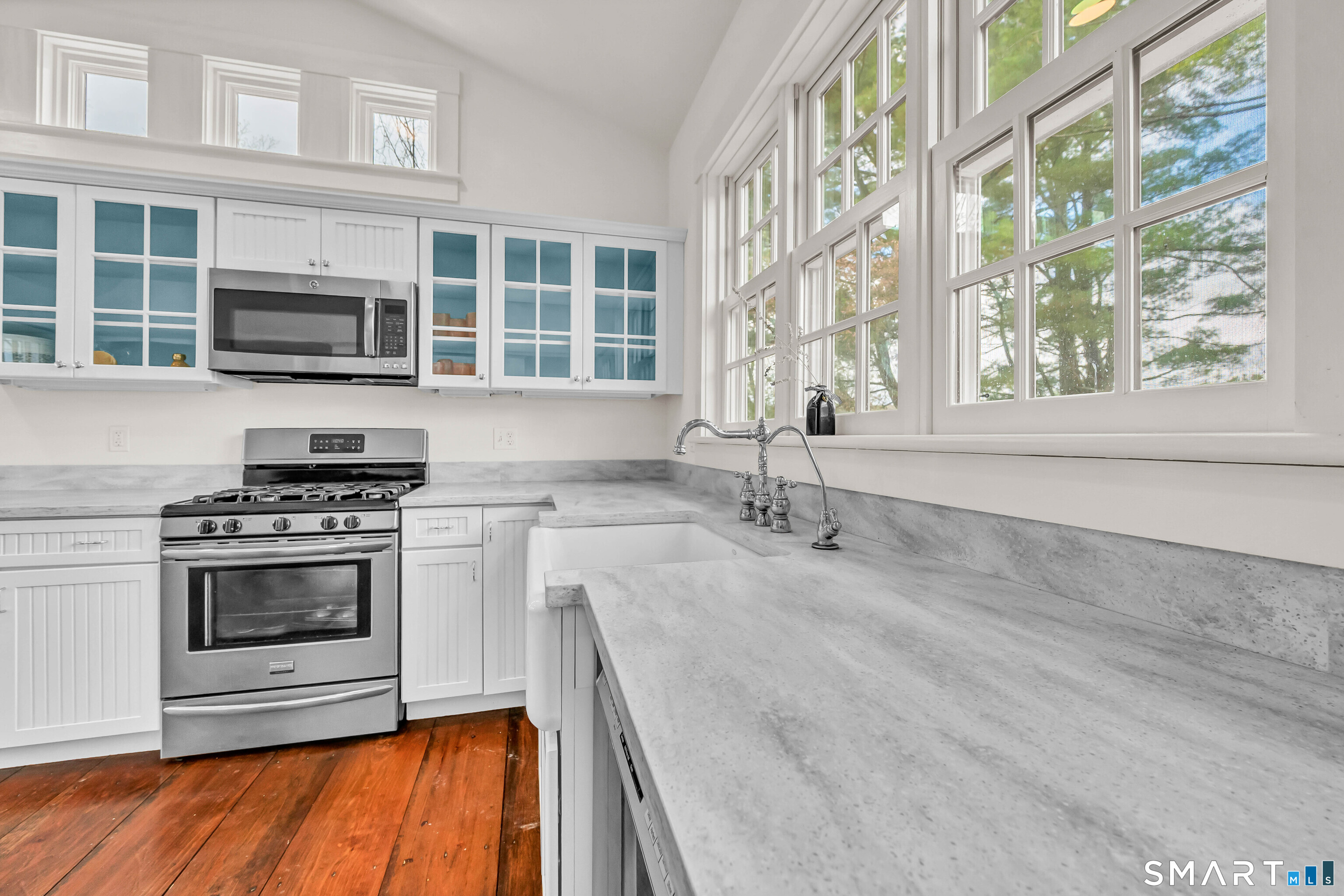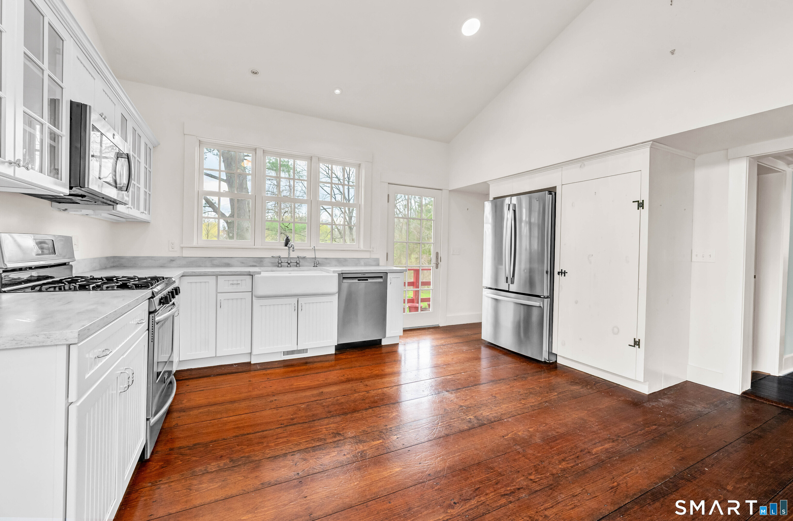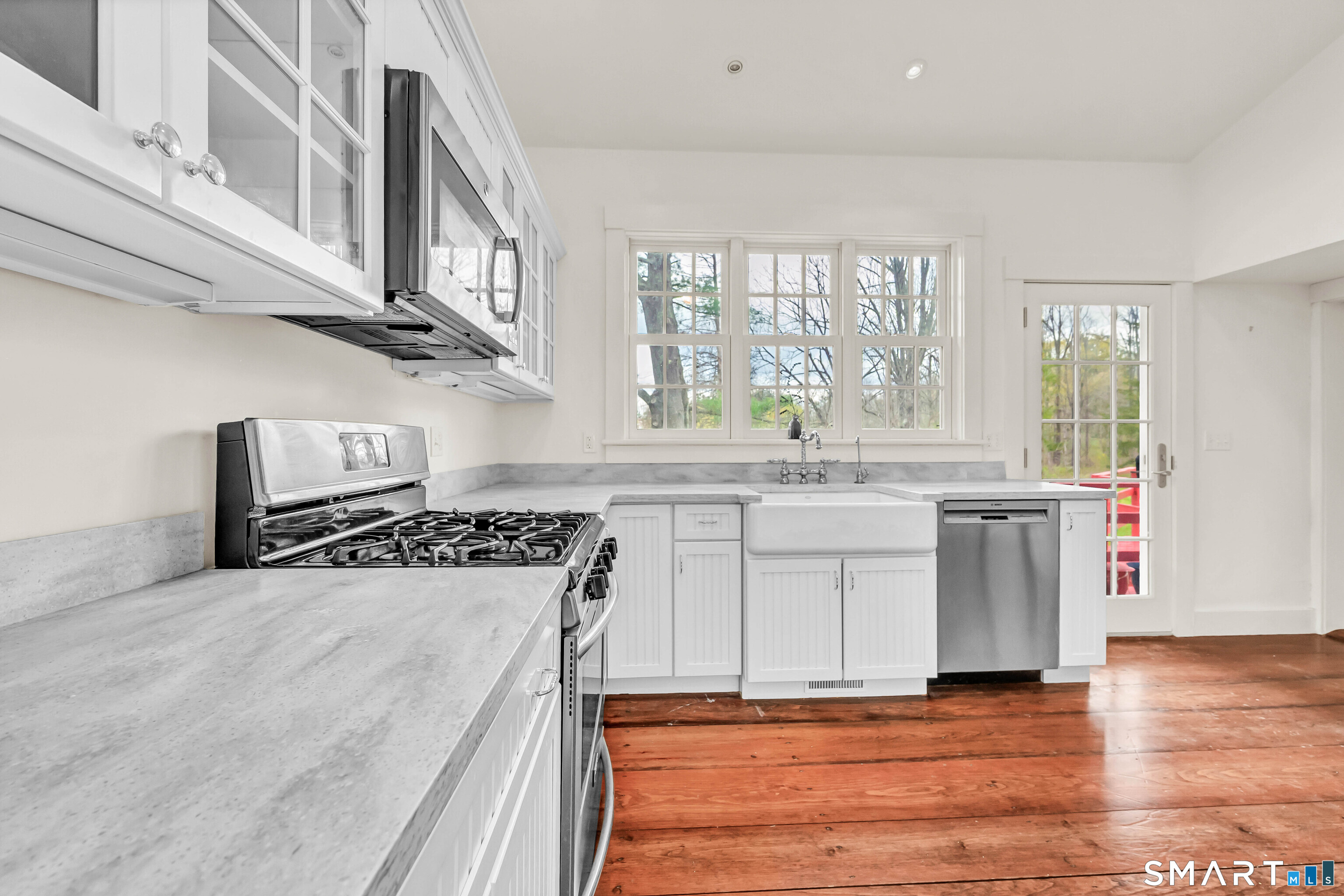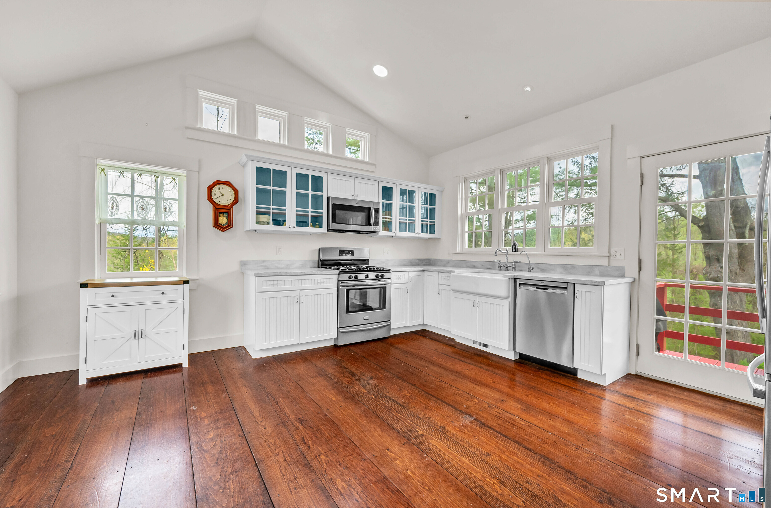 Absolutely turn-key, this beautifully updated home blends old world charm with modern day convenience, featuring the most gorgeous wide-plank hardwood floors and a bright, move-in-ready feel throughout! A large welcoming entryway leads into an expansive main-level living room with cathedral ceilings, new flooring, abundant natural light and fireplace with new wood stove insert. A gorgeous custom eat-in-kitchen is recently renovated with quartz countertops, new cabs, appliances and access to front and rear decks. The rear deck overlooks a level, private & sprawling yard. The main level has one bedroom and fully renovated bath. Upstairs you'll find two additional bedrooms and a beautifully renovated full bath with tub. Set on an expansive level lot, this property offers two garages, one attached/one detached boasting freshly paved driveways + enclosed porch. In addition, the detached garage has as separate work shop. EXTENSIVE 2025' IMPROVEMENTS INCLUDE: Interior and Exterior Painting, New Windows (LR/Entry Way), Full House Generator, Septic Tank, Electric Rewiring w/ Modern Touch Dimmers, Washer/Dryer, Decks Repainted, Water Pump, Reinsulated Basement/Garage, New Basement Floor, Tankless Water Heather, (2) Two Driveways Repaved, Garage Door, Wood Stove. This move in ready home is Ideally located near the Sharon Town Green, shops and restaurants, the Sharon Playhouse, Audubon Center, Sharon Town Beach. Only 10 mins to Metro North Train