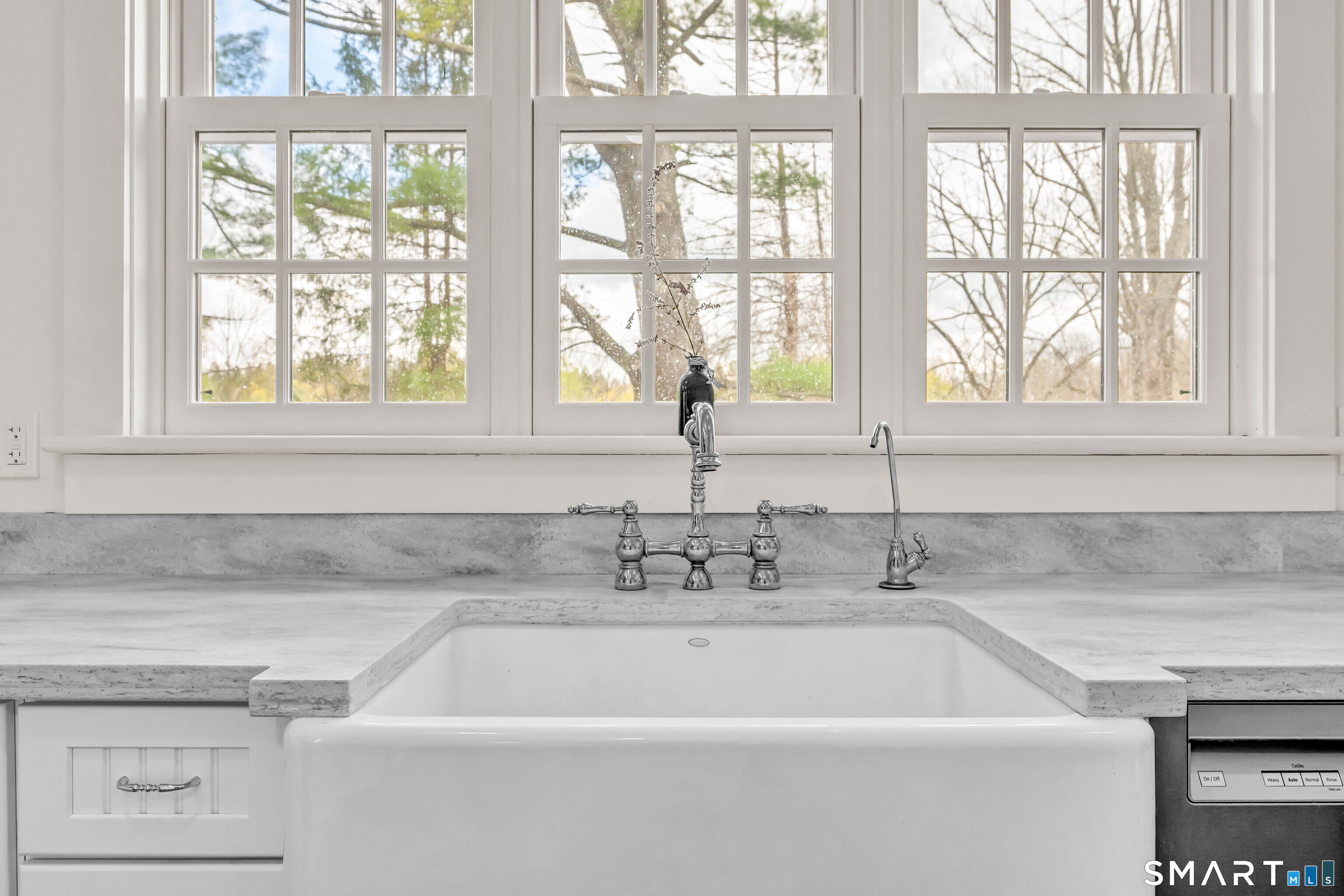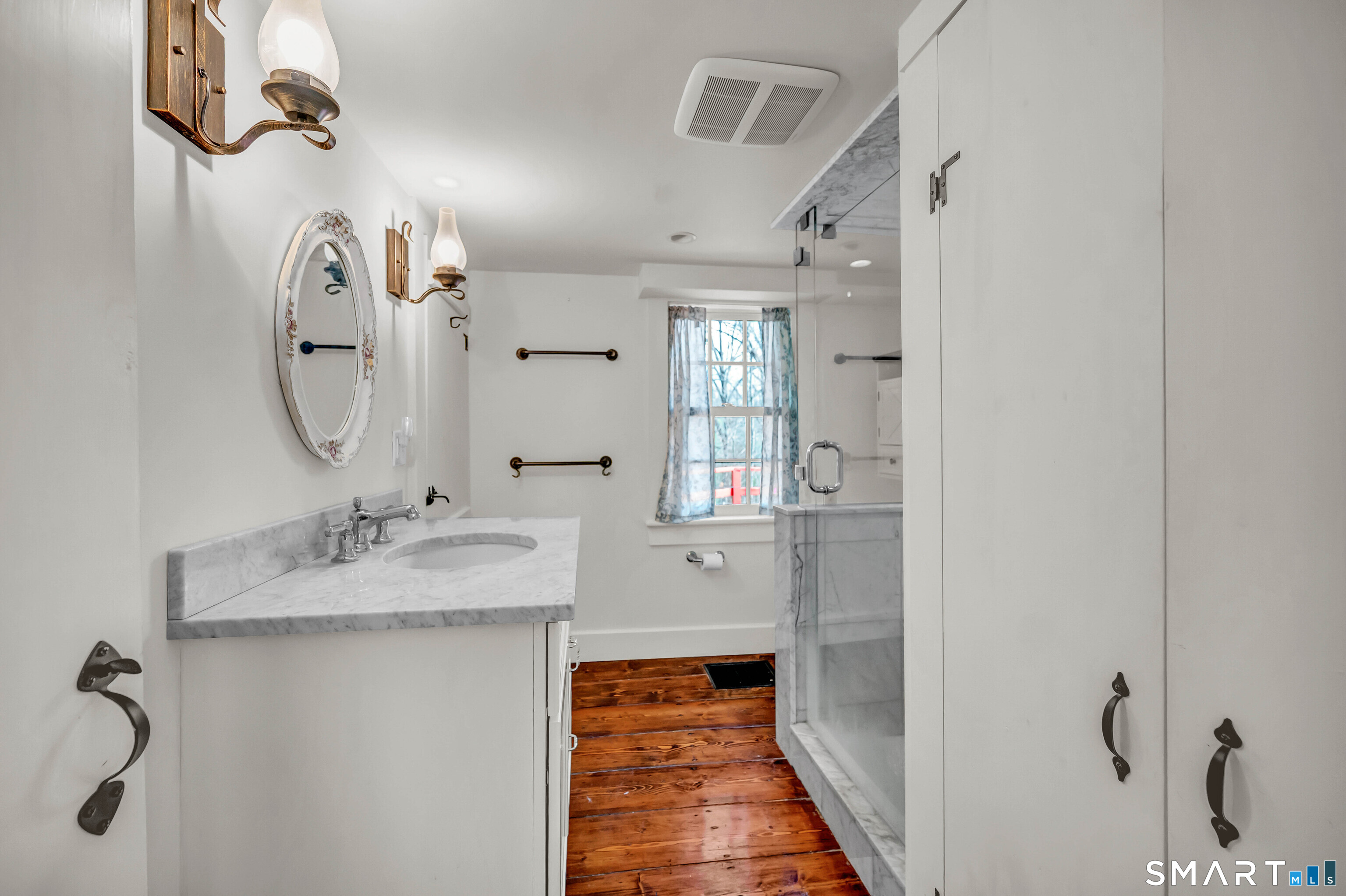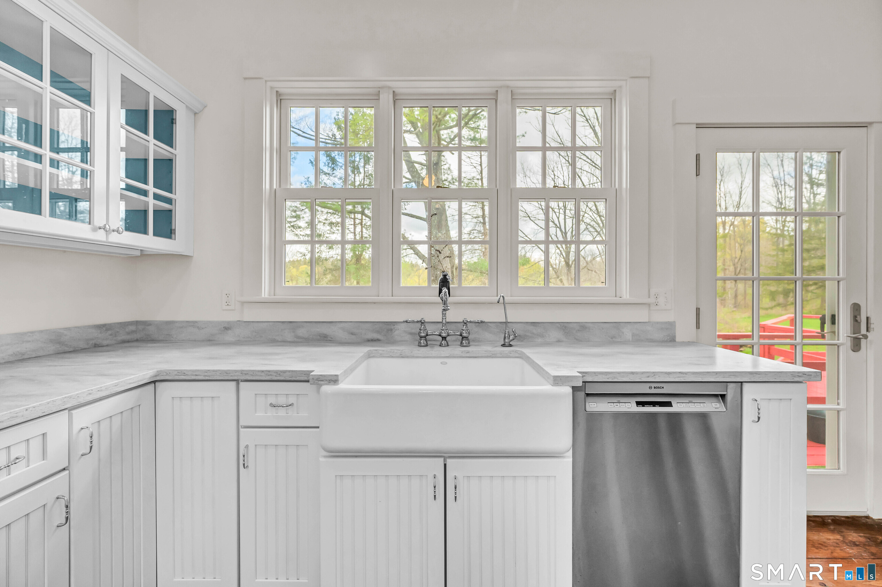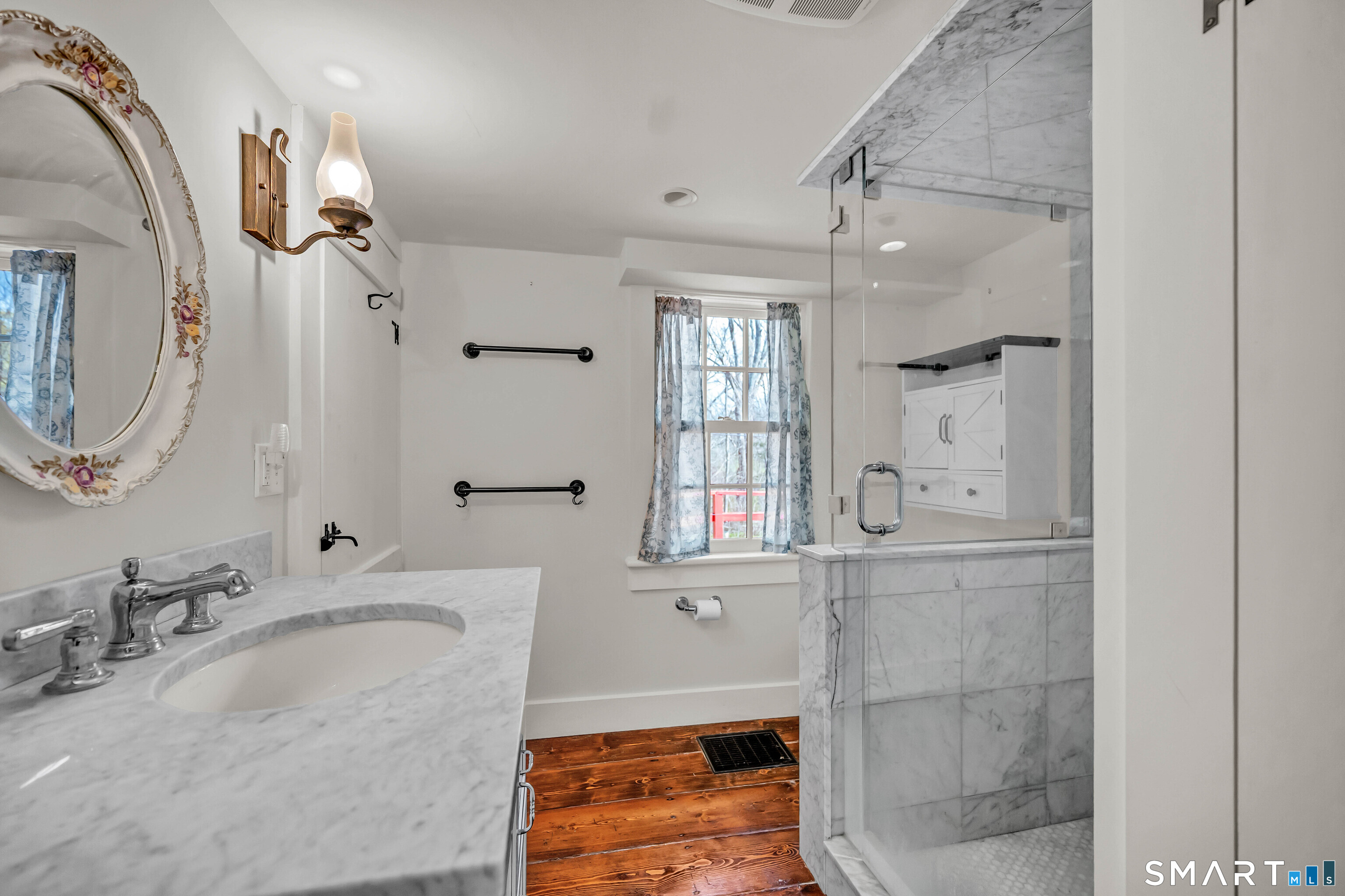 Absolutely turn-key, this beautifully updated home blends old world charm with modern day convenience, featuring the most gorgeous wide-plank hardwood floors and a bright, move-in-ready feel throughout! A large welcoming entryway leads into an expansive main-level living room with cathedral ceilings, new flooring, abundant natural light and fireplace with new wood stove insert. A gorgeous custom eat-in-kitchen is recently renovated with quartz countertops, new cabs, appliances and access to front and rear decks. The rear deck overlooks a level, private & sprawling yard. The main level has one bedroom and fully renovated bath. Upstairs you'll find two additional bedrooms and a beautifully renovated full bath with tub. Set on an expansive level lot, this property offers two garages, one attached/one detached boasting freshly paved driveways + enclosed porch. In addition, the detached garage has as separate work shop. EXTENSIVE 2025' IMPROVEMENTS INCLUDE: Interior and Exterior Painting, New Windows (LR/Entry Way), Full House Generator, Septic Tank, Electric Rewiring w/ Modern Touch Dimmers, Washer/Dryer, Decks Repainted, Water Pump, Reinsulated Basement/Garage, New Basement Floor, Tankless Water Heather, (2) Two Driveways Repaved, Garage Door, Wood Stove. This move in ready home is Ideally located near the Sharon Town Green, shops and restaurants, the Sharon Playhouse, Audubon Center, Sharon Town Beach. Only 10 mins to Metro North Train