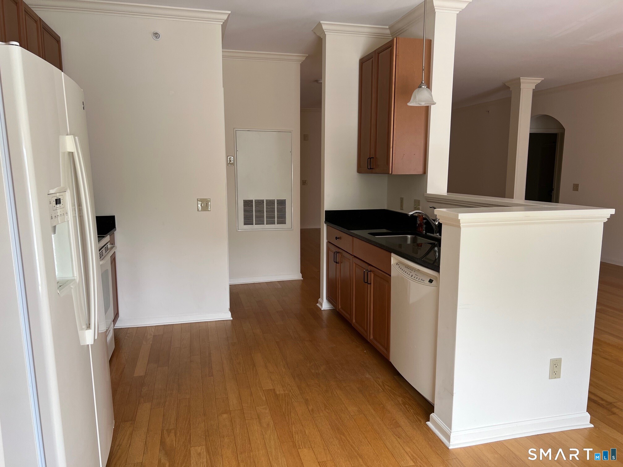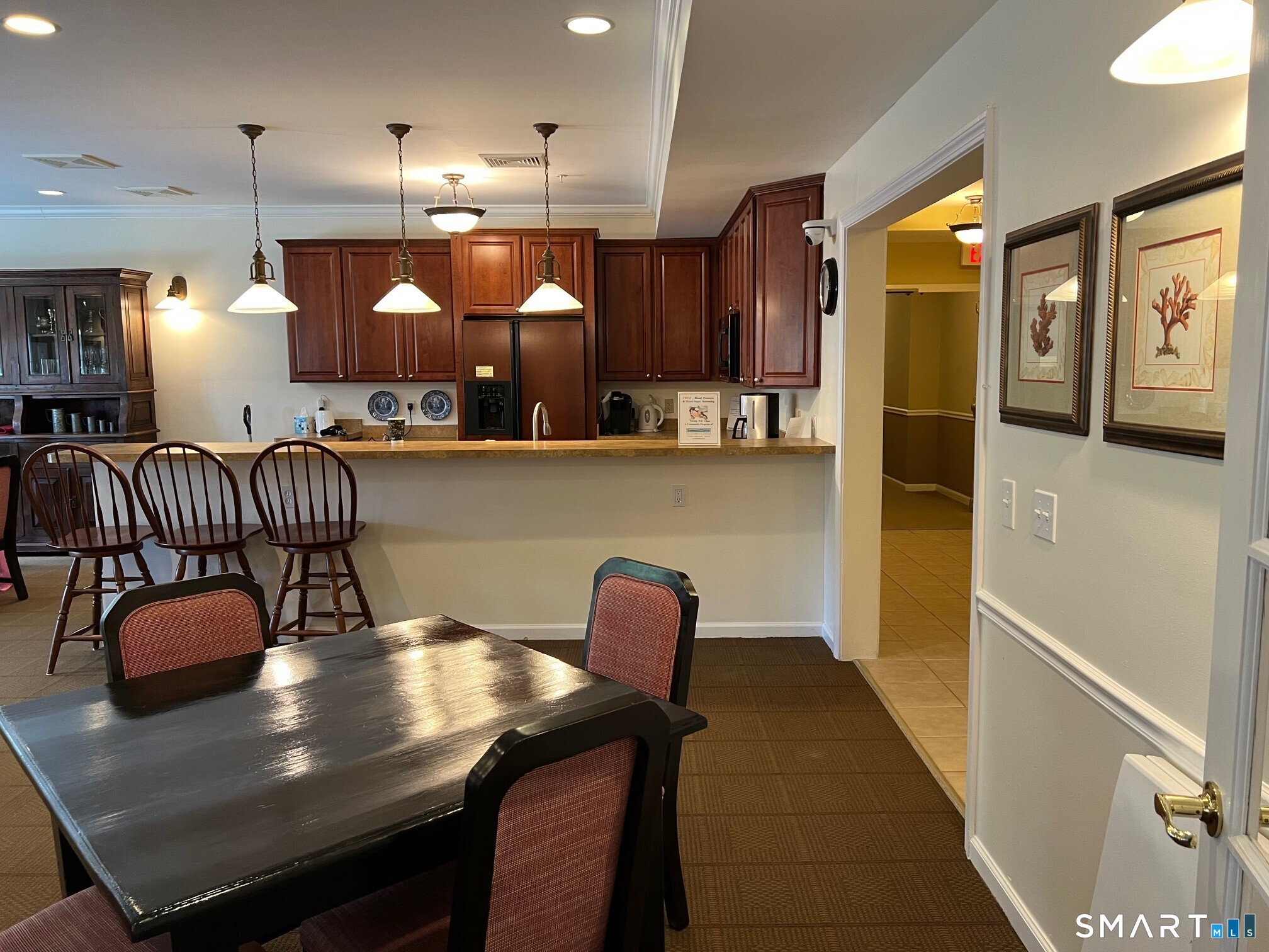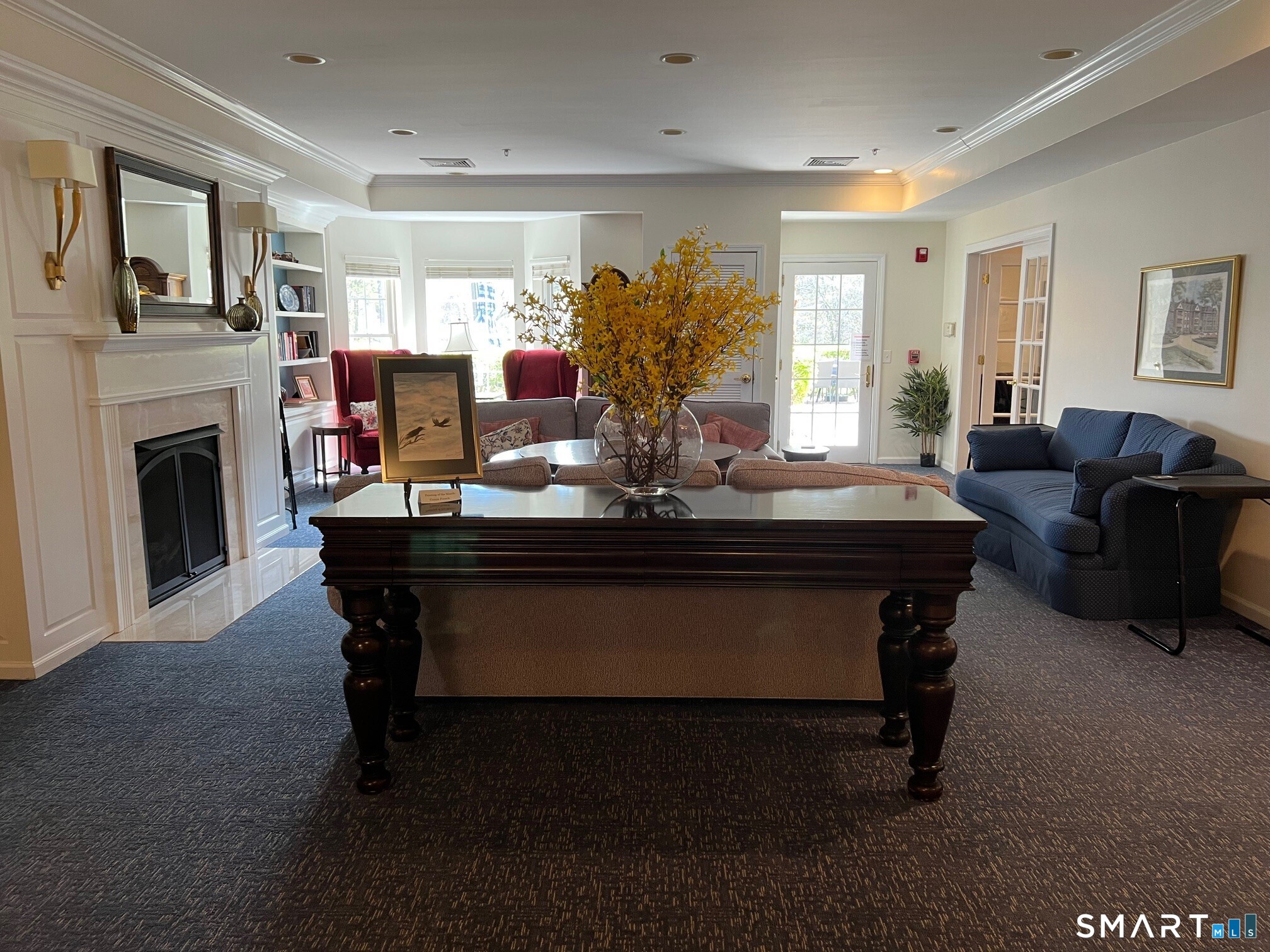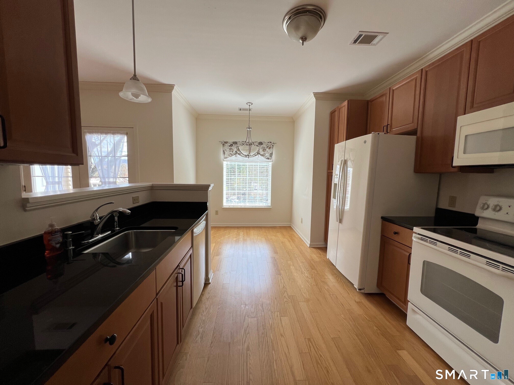 Don't miss this chance to own in Hopmeadow Place, Farmington Valley's sought-after 55+ community. Beautiful hardwood floors highlight the open floor plan of this sparkling unit. The large, newly carpeted Master Bedroom Suite features a spacious walk-in closet, double sink vanity, walk-in shower, and soaking tub. The roomy second bedroom offers extra storage in its walk-in closet, plus there's a second full bathroom in the hallway. Enjoy meals with a view of Talcott Mountain from the breakfast nook's picture window or your private balcony. The fully equipped kitchen has granite countertops and a handy pull-out pantry. A separate laundry room includes a full-size washer and dryer. Two indoor garage parking spaces are reserved for you, along with a storage unit. Socialize with neighbors while watching sports on TV, gathering for morning coffee, playing cards or bingo, or enjoying any activity you like in the community rooms. The lounge features a gas fireplace and a full kitchen with plenty of seating for events. You'll find a library, fitness center, and a large furnished patio with a grill that makes entertaining easy. Located in downtown Simsbury, you are close to grocery and drug stores, medical offices, restaurants, nature trails, the Farmington River, places of worship, the town library, and Simsbury Meadows, which hosts the Hartford Symphony in the summer. Golf, tennis, and swimming pools are nearby at Simsbury Farms Recreation facility.