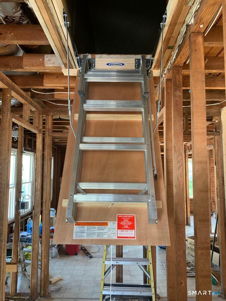 Attic : Unfinished, Storage Space, Floored, Pull-Down Stairs