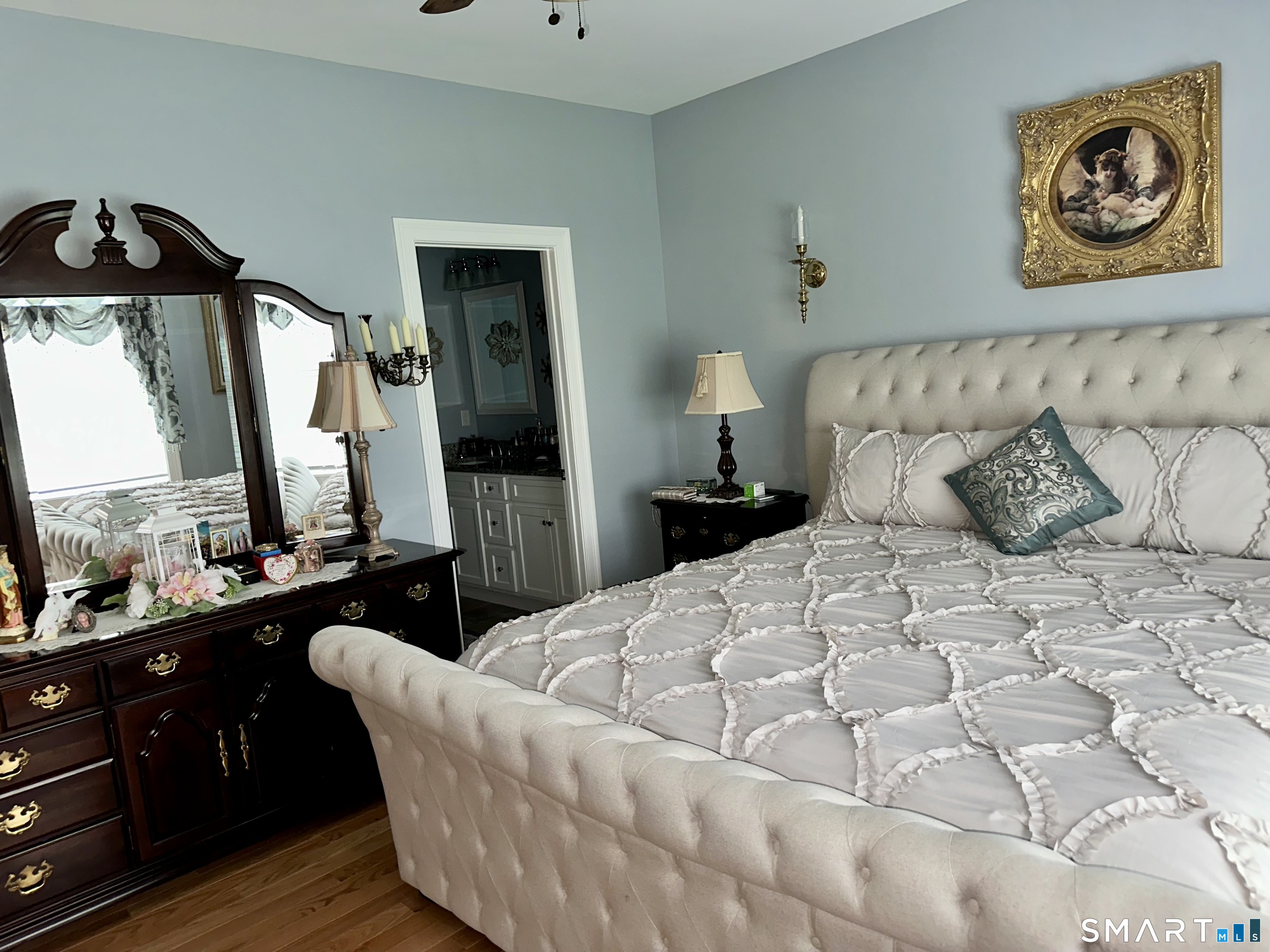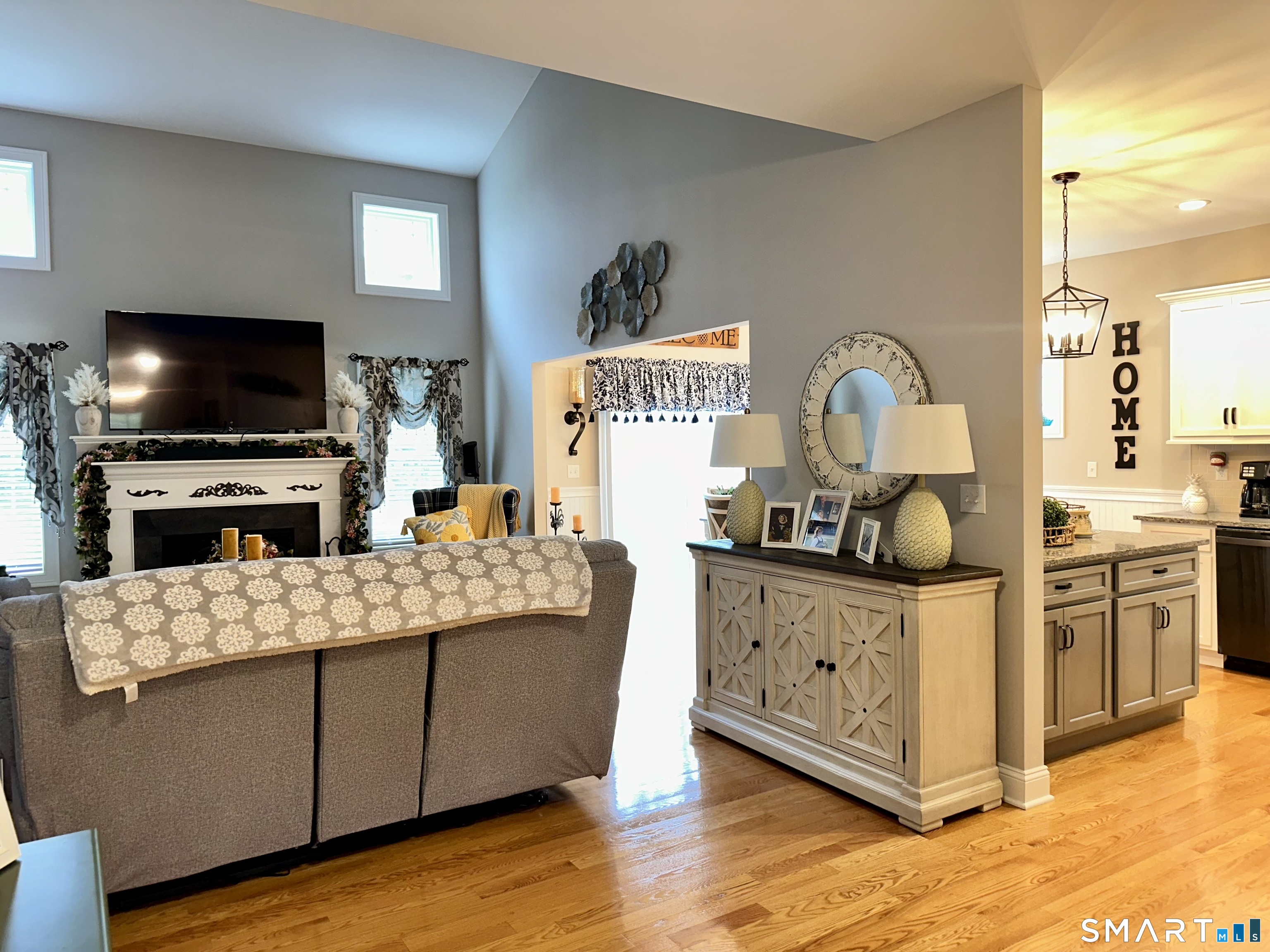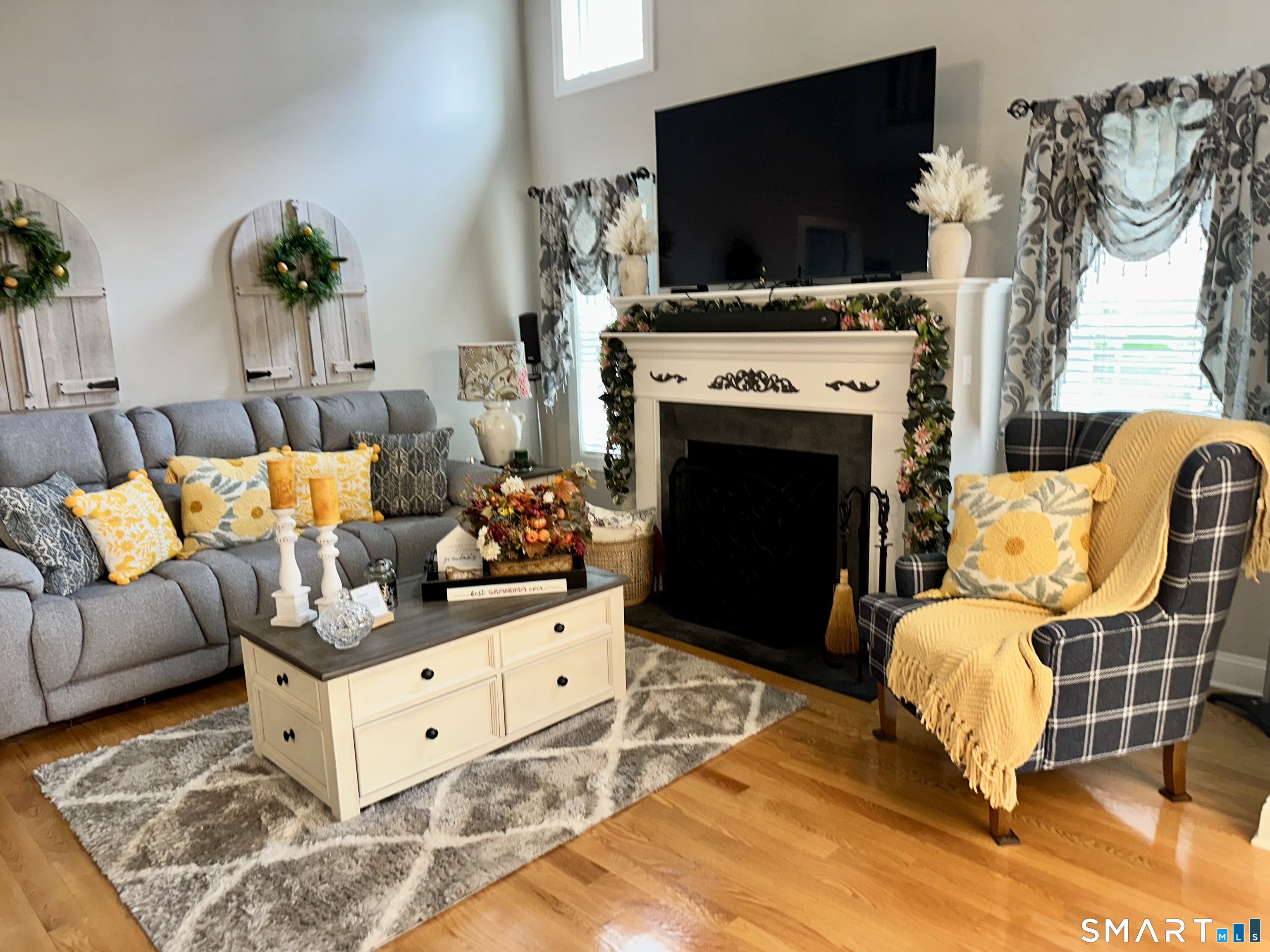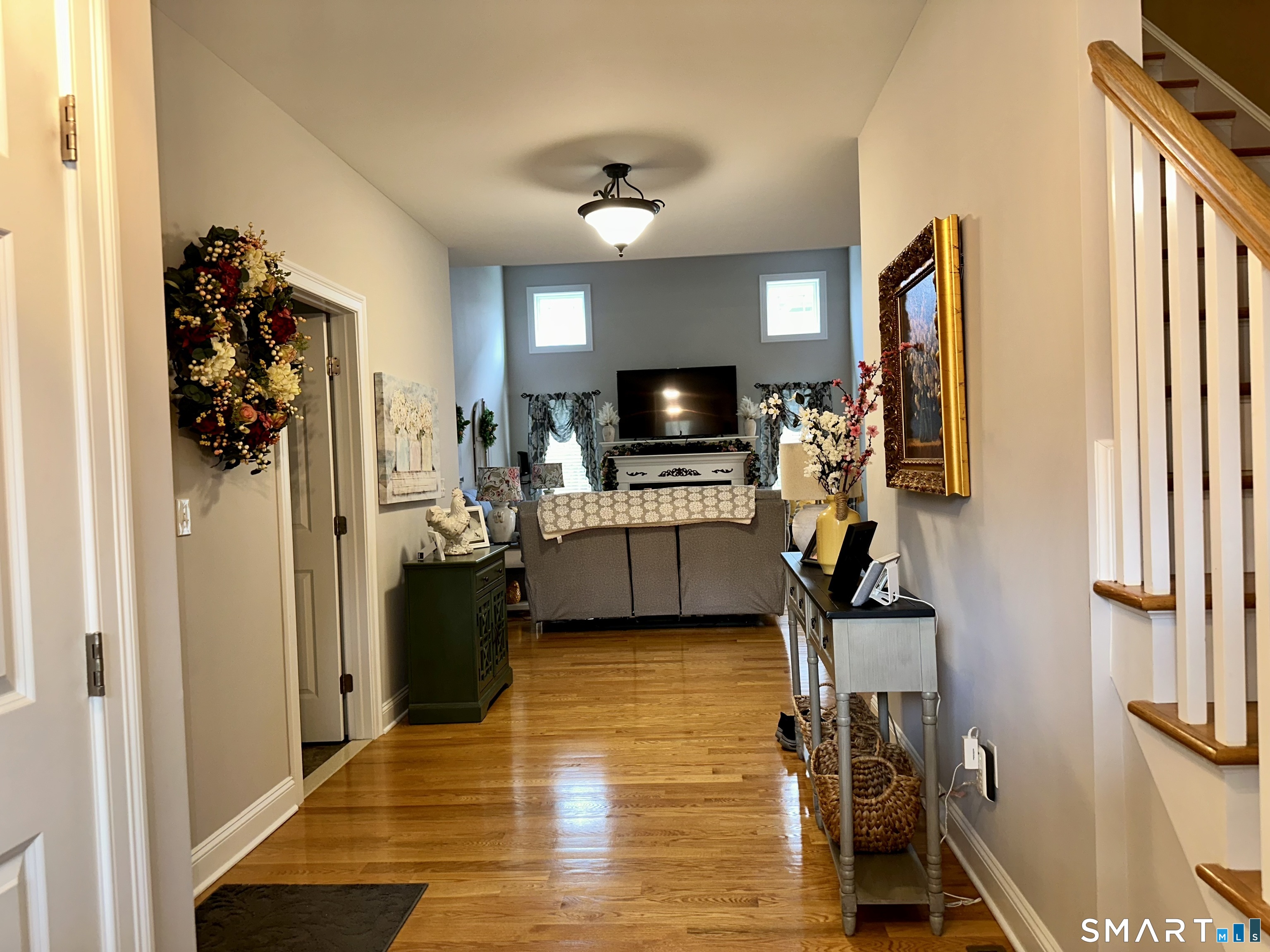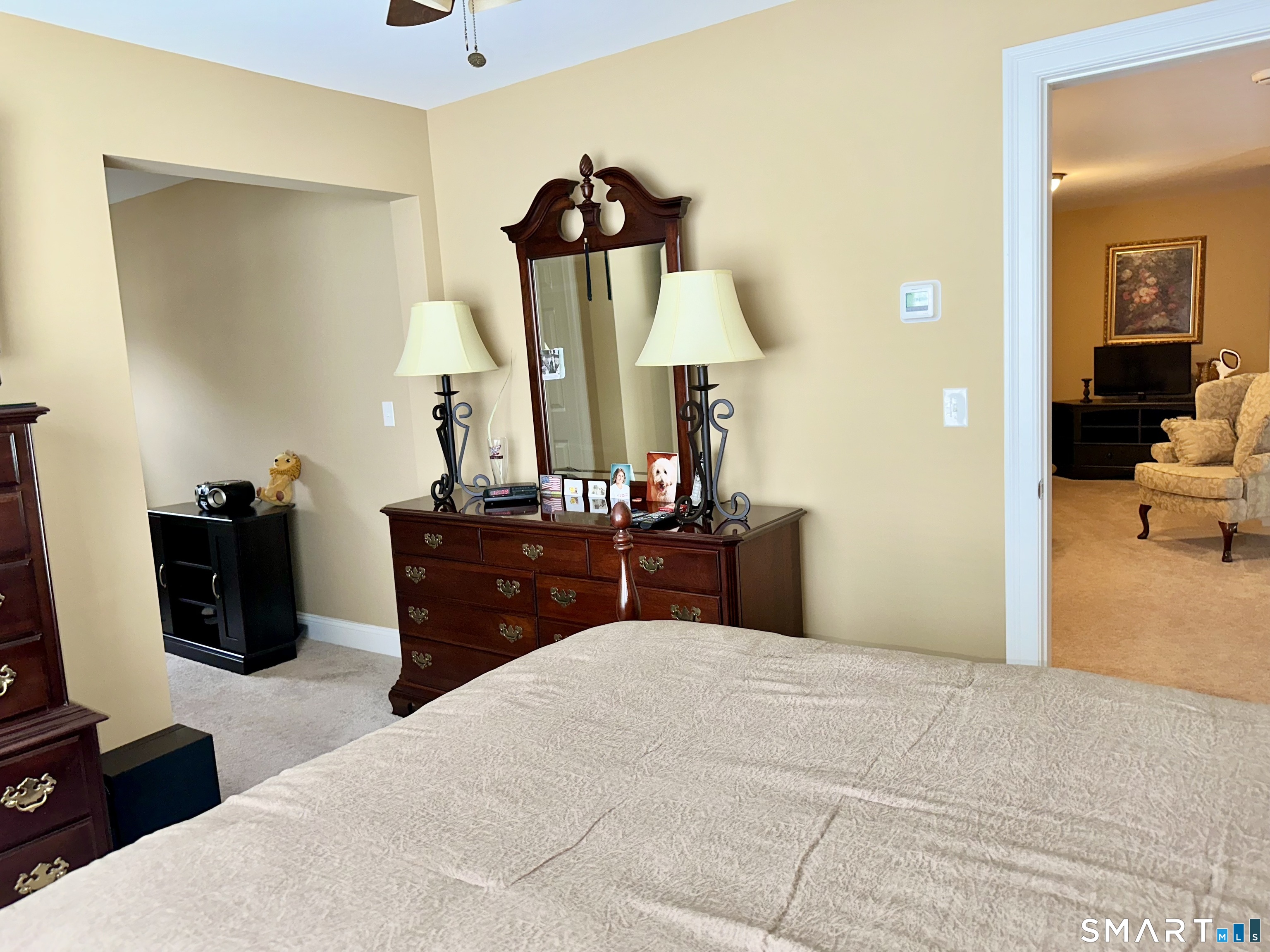 A rare opportunity to own a truly upgraded Brigham model. Designed for effortless main level living, the floor plan offers two main floor bedrooms (one currently used as an office), an open flow living area, and direct access from the attached garage. A gas fireplace with direct vent anchors the two story great room, complemented by hardwood flooring throughout the main level including the primary bedroom, wainscoting in the kitchen, rain finished glass shower doors in both full baths, three ceiling fans, and surround sound wiring in five locations with receiver included. The upper level features a third bedroom, a full bath, and an oversized loft well suited as a second living area, media room, or home office, plus a generous finishable storage area ready to expand the living footprint. A full basement adds storage and features additional electrical outlets installed beyond code. Enjoy natural gas heat, a new gas hot water heater installed February 2026, public water, and public sewer. Step outside to the largest patio in the complex, an 8x16 space paired with a retractable awning for shade on demand. Tucked into a wooded setting, the home is minutes to Interstate 91, the Wilbur Cross Parkway, Yale New Haven Hospital, Quinnipiac University, downtown New Haven, and ample shopping and dining.