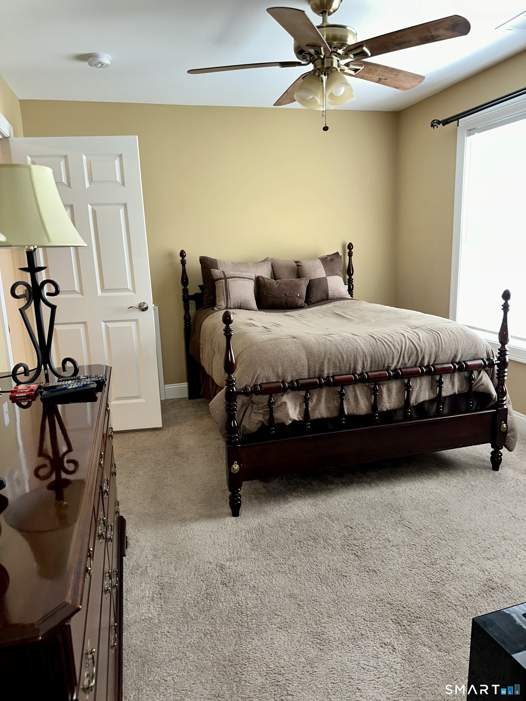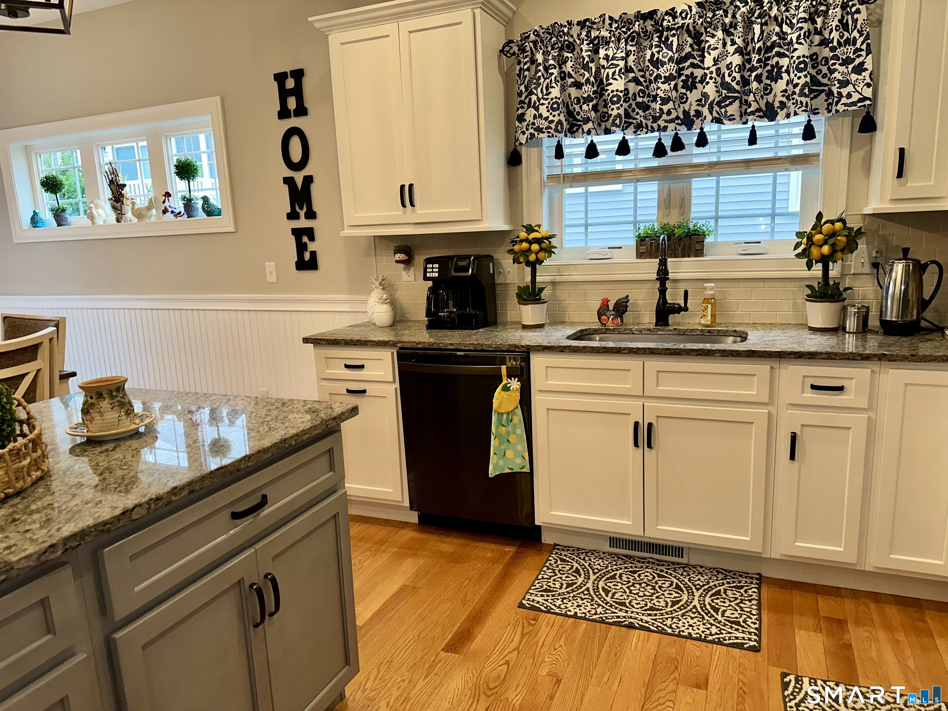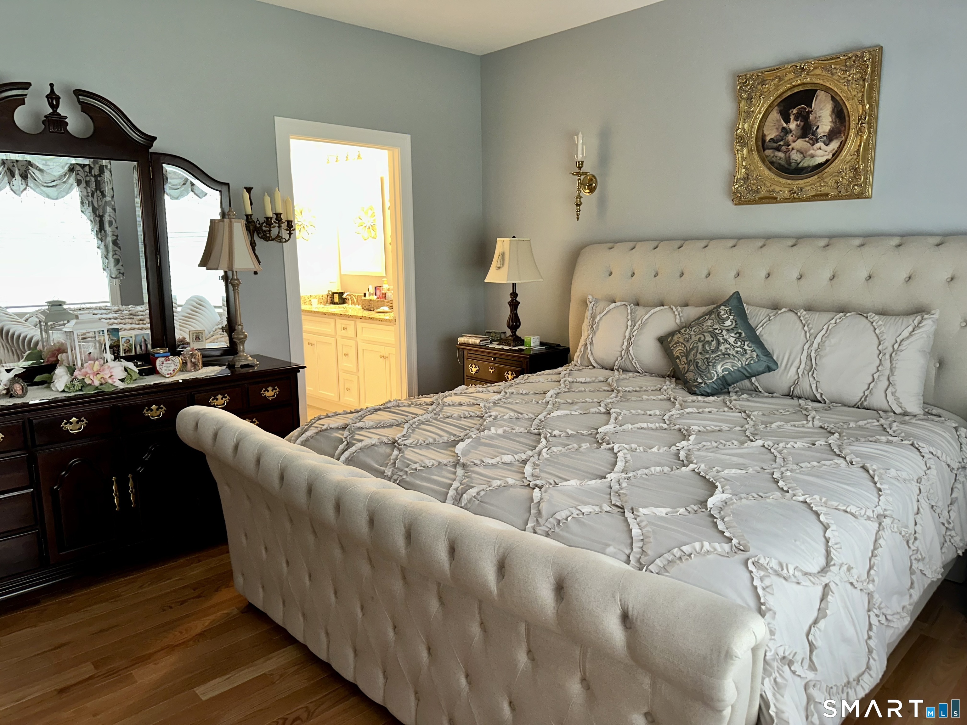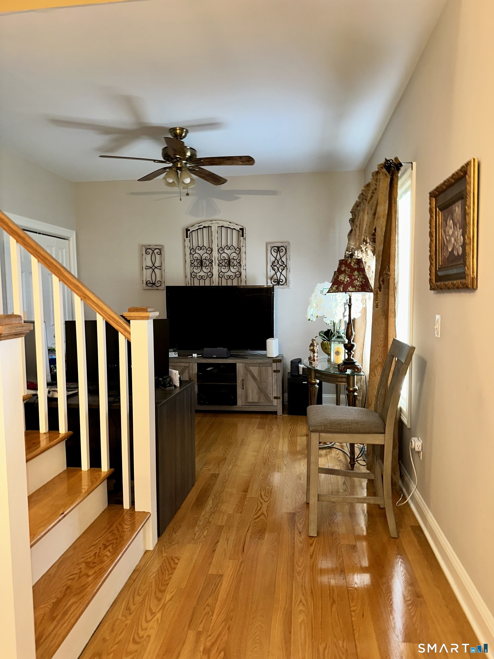 A rare opportunity to own a truly upgraded Brigham model. Designed for effortless main level living, the floor plan offers two main floor bedrooms (one currently used as an office), an open flow living area, and direct access from the attached garage. A gas fireplace with direct vent anchors the two story great room, complemented by hardwood flooring throughout the main level including the primary bedroom, wainscoting in the kitchen, rain finished glass shower doors in both full baths, three ceiling fans, and surround sound wiring in five locations with receiver included. The upper level features a third bedroom, a full bath, and an oversized loft well suited as a second living area, media room, or home office, plus a generous finishable storage area ready to expand the living footprint. A full basement adds storage and features additional electrical outlets installed beyond code. Enjoy natural gas heat, a new gas hot water heater installed February 2026, public water, and public sewer. Step outside to the largest patio in the complex, an 8x16 space paired with a retractable awning for shade on demand. Tucked into a wooded setting, the home is minutes to Interstate 91, the Wilbur Cross Parkway, Yale New Haven Hospital, Quinnipiac University, downtown New Haven, and ample shopping and dining.