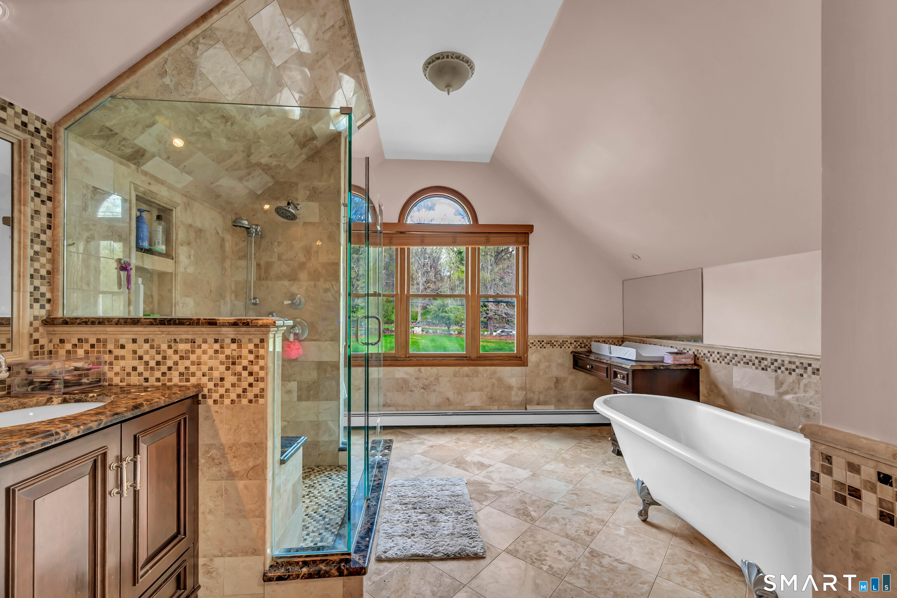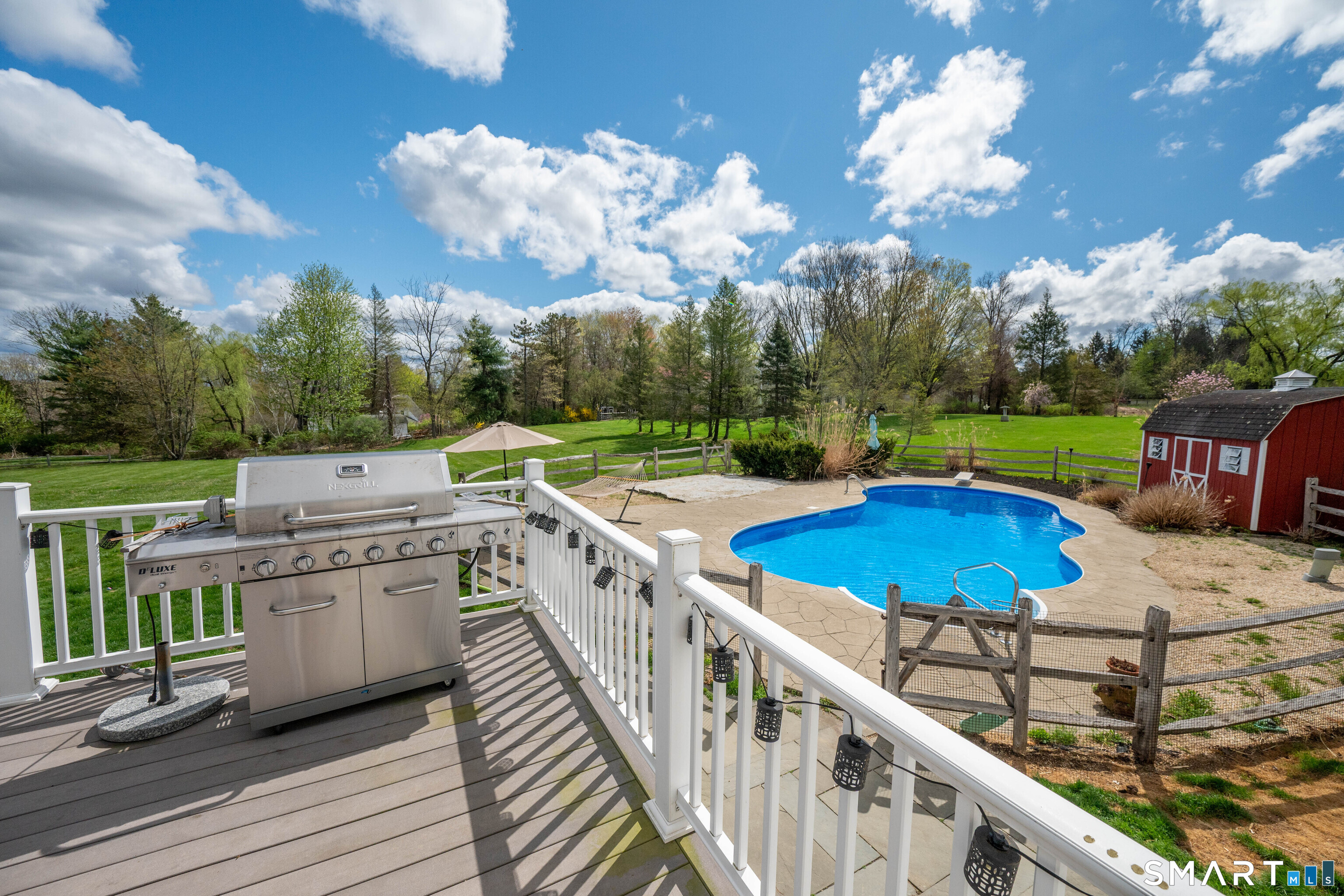 Pool is open! Just in time to enjoy your own private retreat! Welcome to this exceptional home set in a highly sought-after Brookfield neighborhood, where everyday convenience meets a true sense of escape. A striking stone wall and estate-style entrance take you to this stunning home set on nearly 2 beautiful acres. A bluestone-covered front porch invites you inside to nearly 4,000 square feet of thoughtfully designed living space, featuring 4-5 bdrms. At the heart of the home is a newly renovated (24') kitchen w/ custom granite counters,an induction range,oversized refrigerator/freezer, & Thermador dishwasher. A breakfast nook flows seamlessly to a spacious Trex deck overlooking a picturesque backyard & heated in-ground pool-complete w/ beach- the ultimate summertime retreat for entertaining/relaxing. The main level offers exceptional versatility with multiple living spaces, including a spacious family room w/ hdwd floors & fireplace, bright sunroom, an addt'l living room + beautifully renovated 1/2 bath (24'). The dining room captures serene views of the property. Upstairs, you'll find 4 generously sized bdrms, incl. a spacious primary suite w/ w-i-c & renovated en-suite bath. An updated hall bath serves the addt'l bedrms. Head back downstairs to a heated lower level and use the space as a 5th bedroom, home office, or in law set up. Brookfield residents enjoy a welcoming small-town feel, top-rated schools,excellent dining,great shopping,access to 84 & popular Town Beach!
