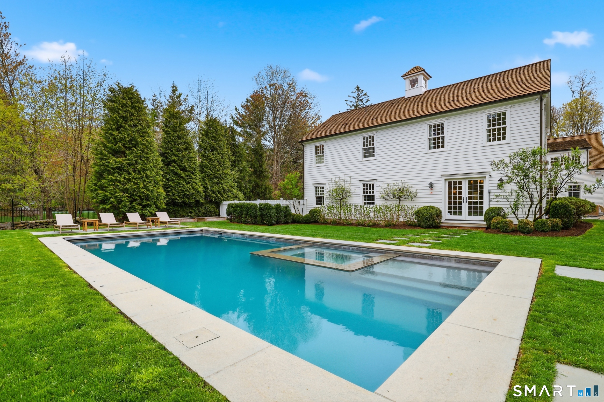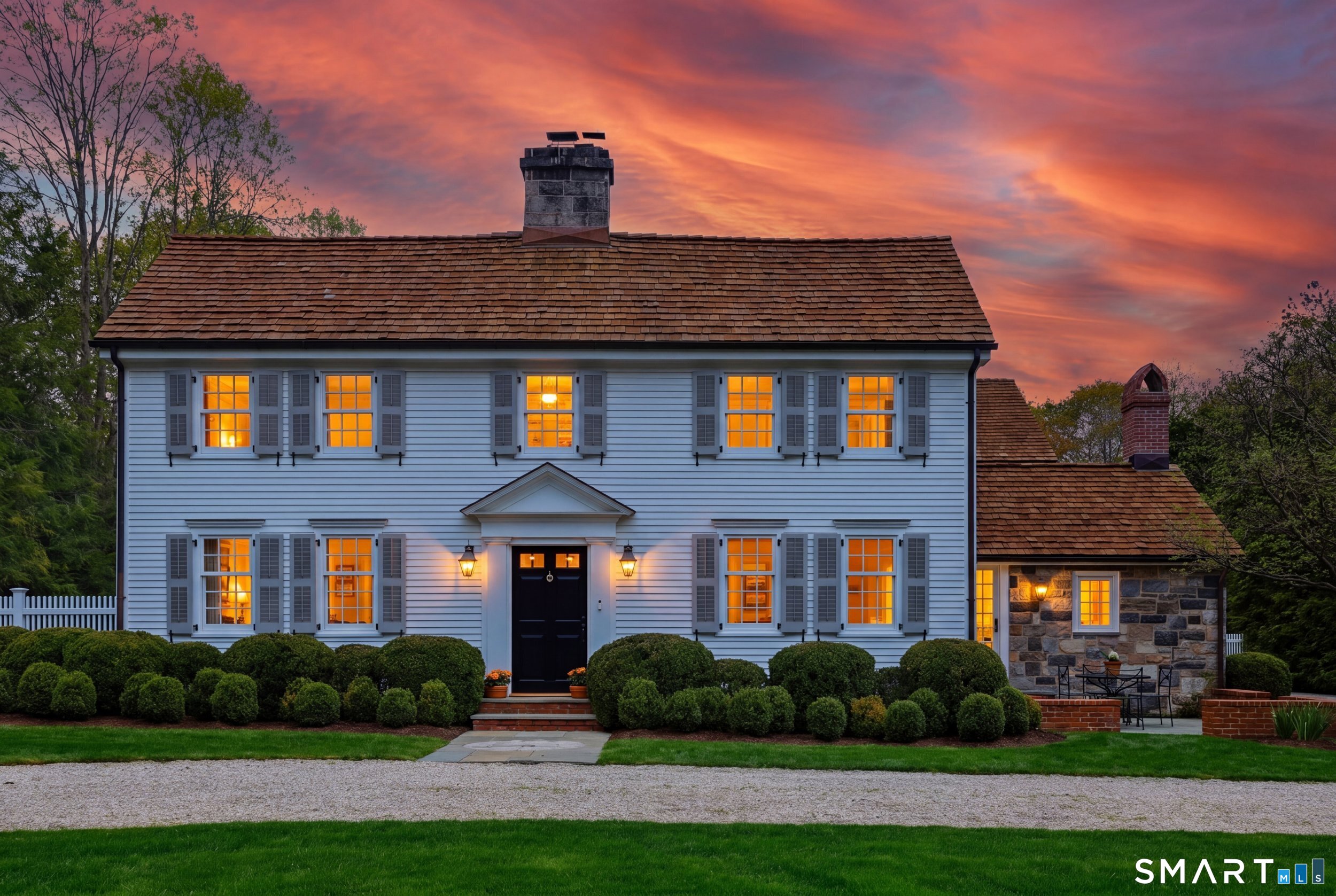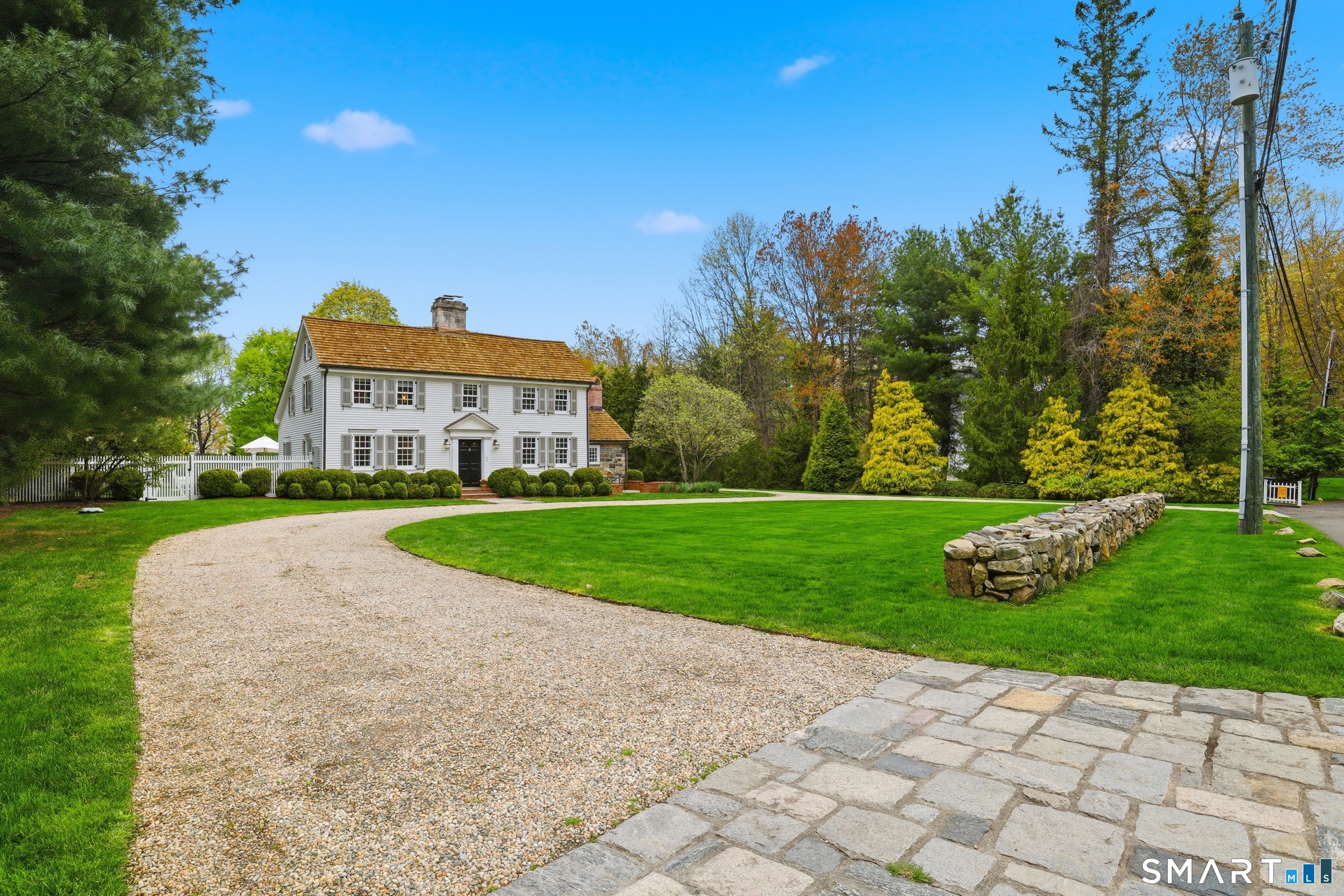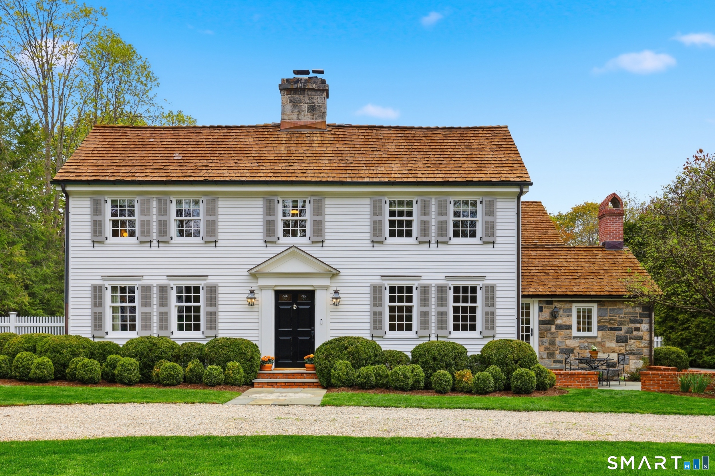 Thoughtfully renovated and expanded, this remarkable five-bedroom, four-and-a-half bath Colonial offers a refined blend of historic character and modern sophistication. Reimagined by acclaimed architect Bo Malpass, the home showcases original details like exposed antique beams, wide plank wood floors, stone fireplaces, and brick accents, all complemented by a refined, cohesive design with timeless finishes throughout. Light-filled interiors flow effortlessly, anchored by a stunning marble kitchen and tastefully updated baths, creating an inviting setting for both everyday living and elevated entertaining. French doors enhance the connection to the outdoors while filling the home with natural light. The spacious primary suite is paired with beautifully appointed secondary bedrooms, offering both comfort and easy livability. Set on private, professionally landscaped grounds with a pool, the property enjoys a prime location close to town, train, beaches, Great Island, and Darien's highly regarded schools. A truly special offering, this turnkey home effortlessly blends historic character with modern refinement.