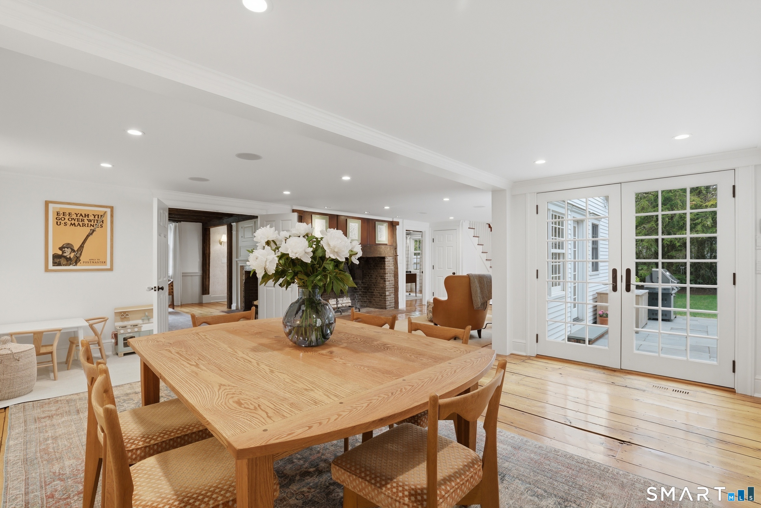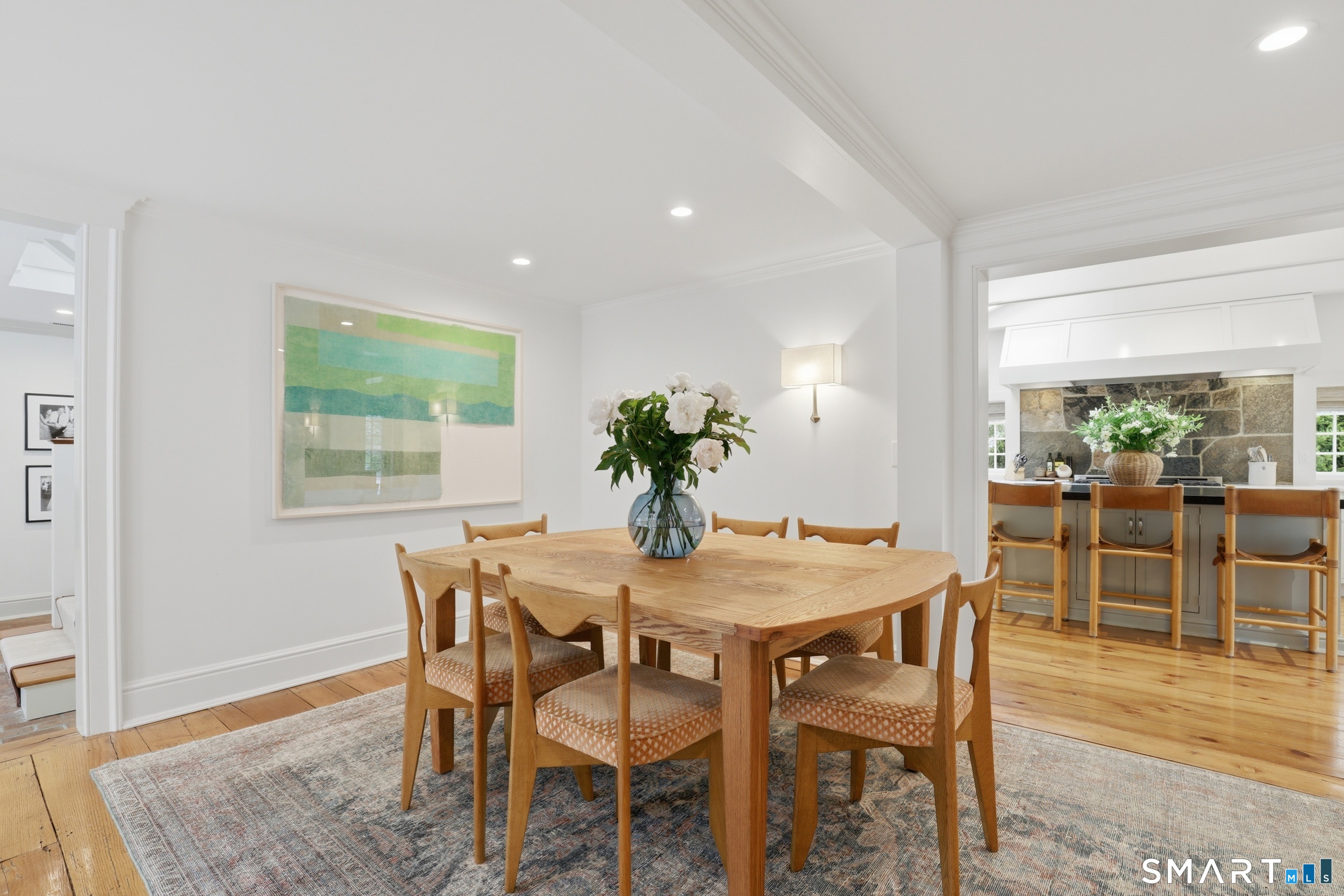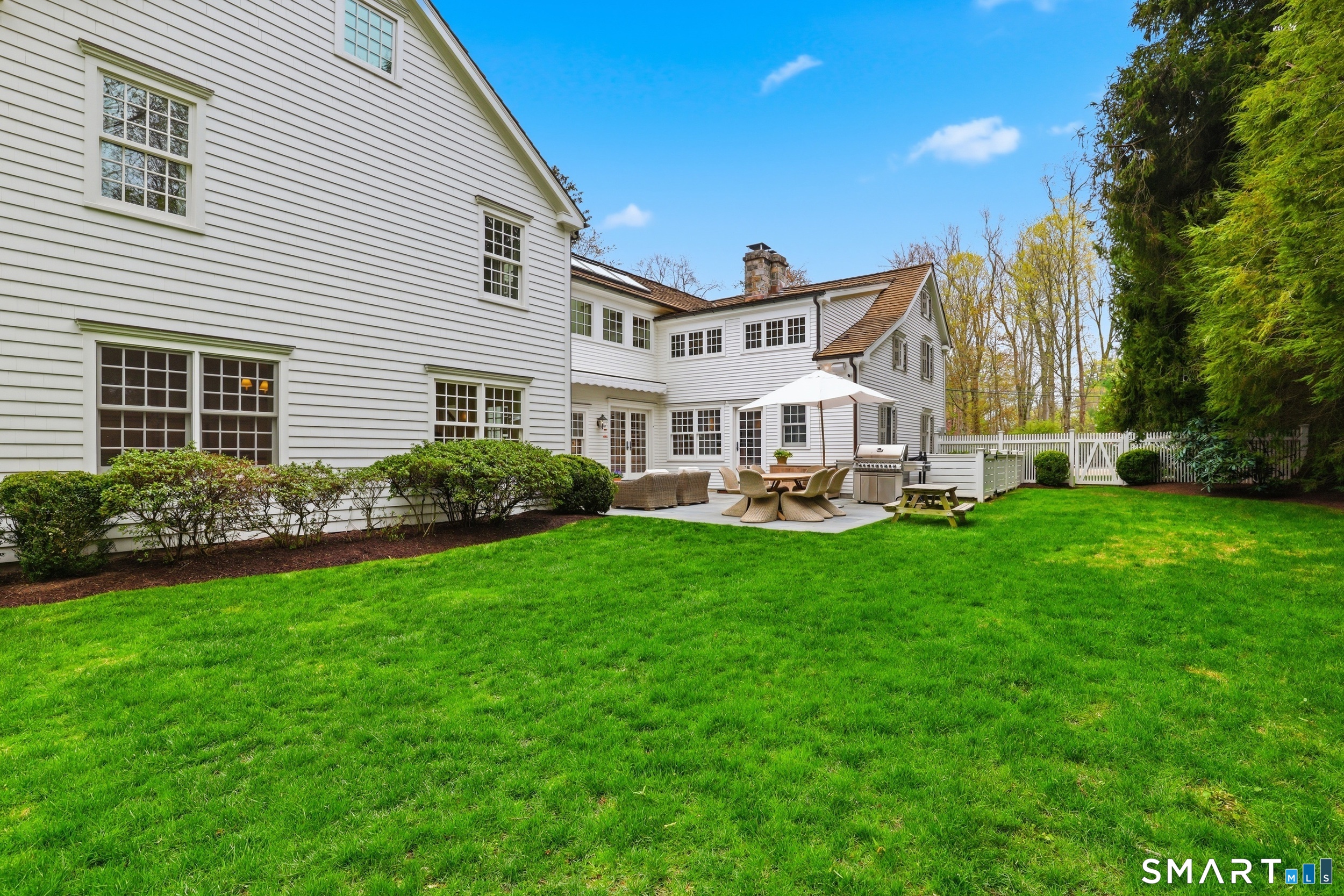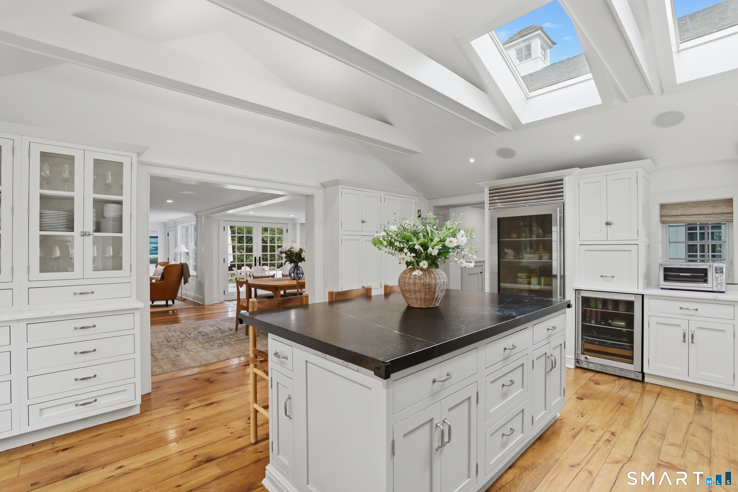 Thoughtfully renovated and expanded, this remarkable five-bedroom, four-and-a-half bath Colonial offers a refined blend of historic character and modern sophistication. Reimagined by acclaimed architect Bo Malpass, the home showcases original details like exposed antique beams, wide plank wood floors, stone fireplaces, and brick accents, all complemented by a refined, cohesive design with timeless finishes throughout. Light-filled interiors flow effortlessly, anchored by a stunning marble kitchen and tastefully updated baths, creating an inviting setting for both everyday living and elevated entertaining. French doors enhance the connection to the outdoors while filling the home with natural light. The spacious primary suite is paired with beautifully appointed secondary bedrooms, offering both comfort and easy livability. Set on private, professionally landscaped grounds with a pool, the property enjoys a prime location close to town, train, beaches, Great Island, and Darien's highly regarded schools. A truly special offering, this turnkey home effortlessly blends historic character with modern refinement.