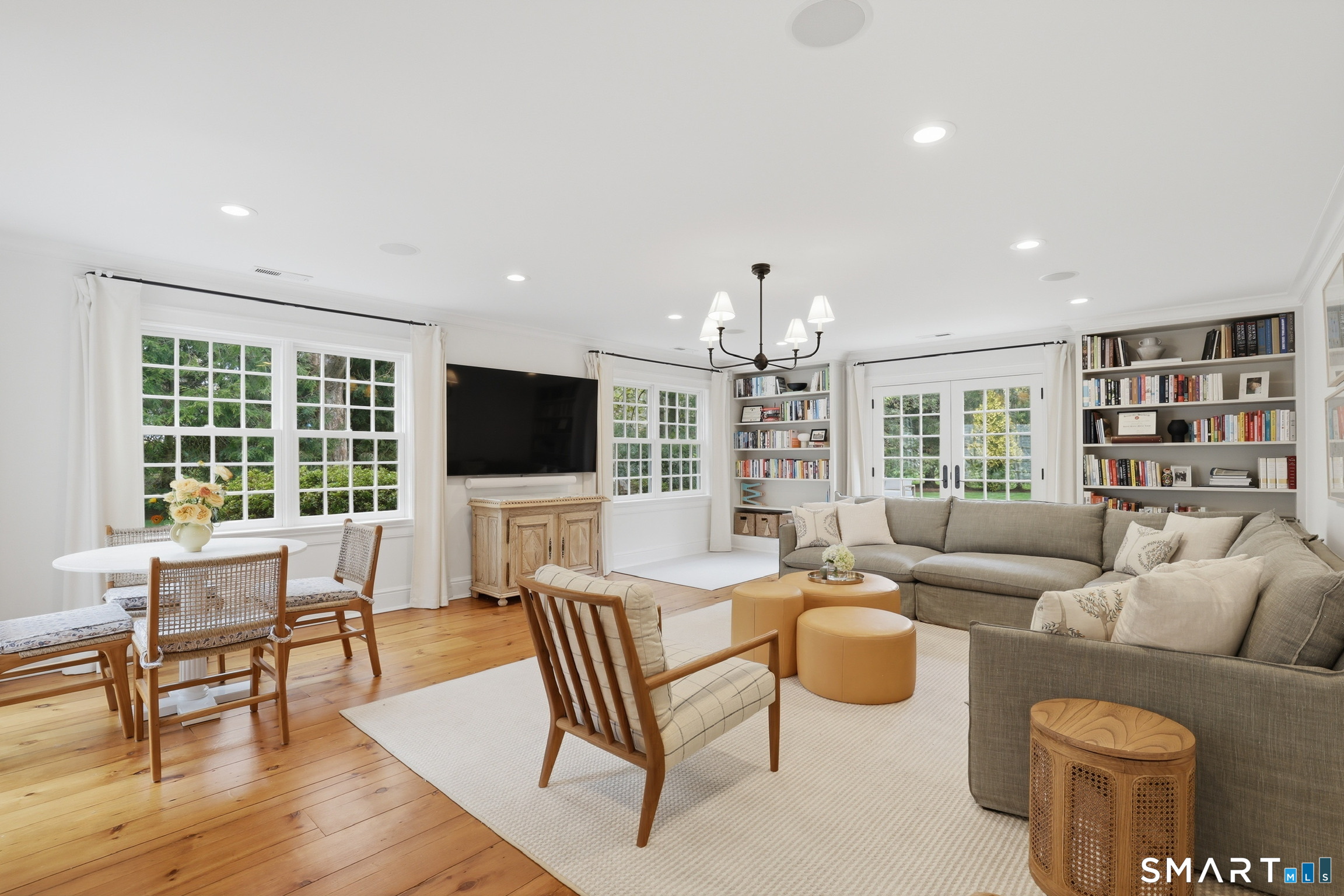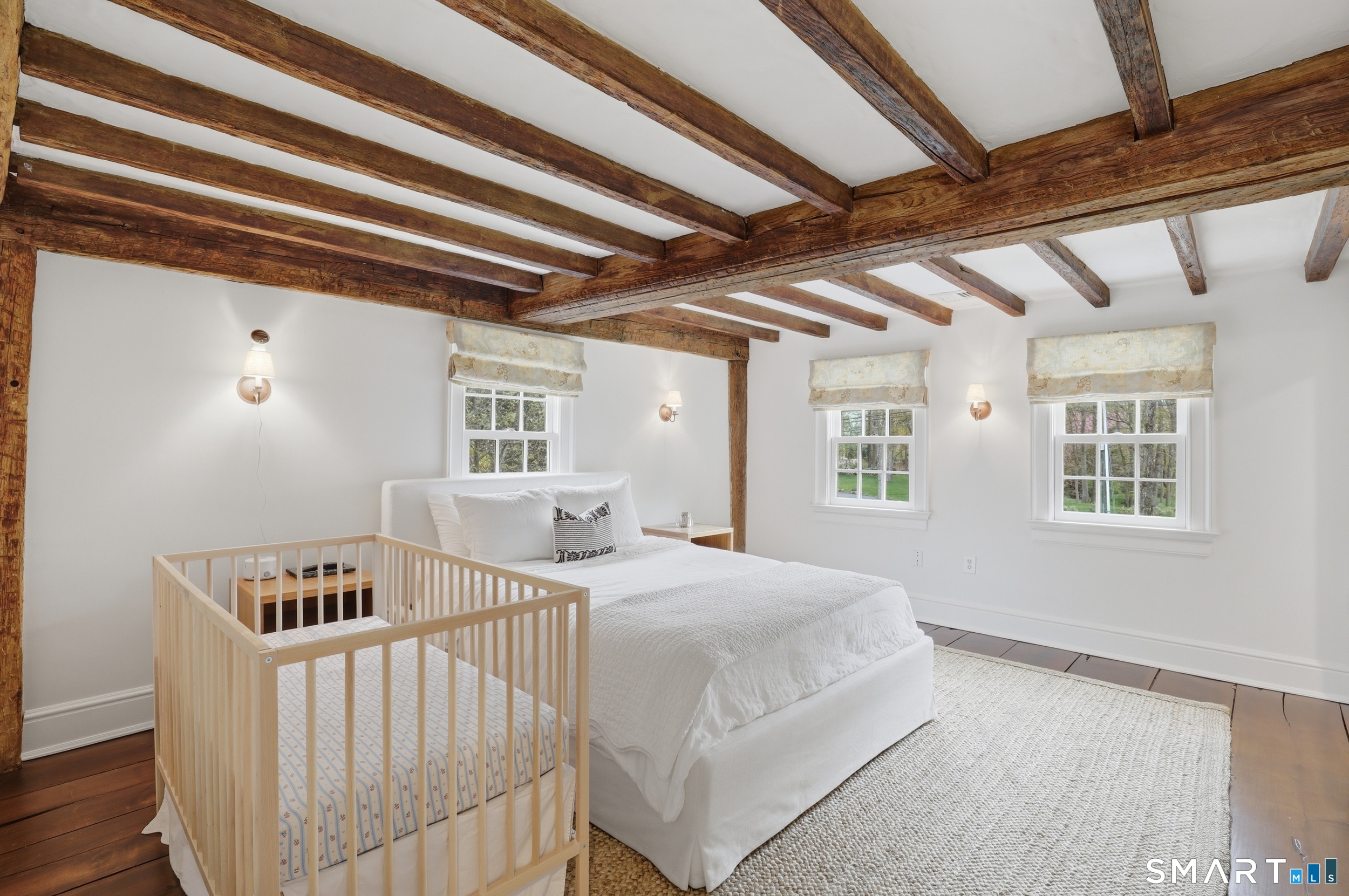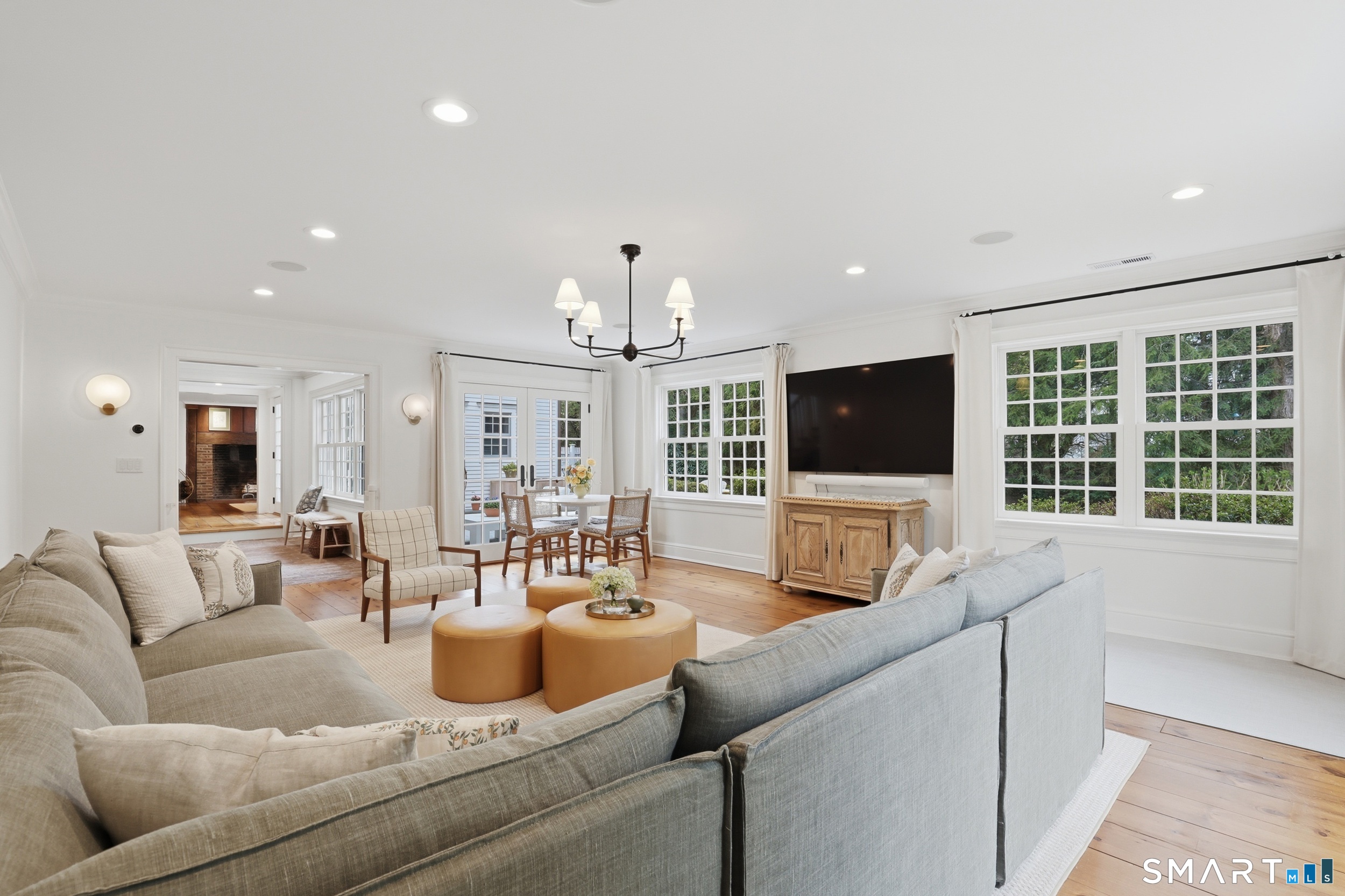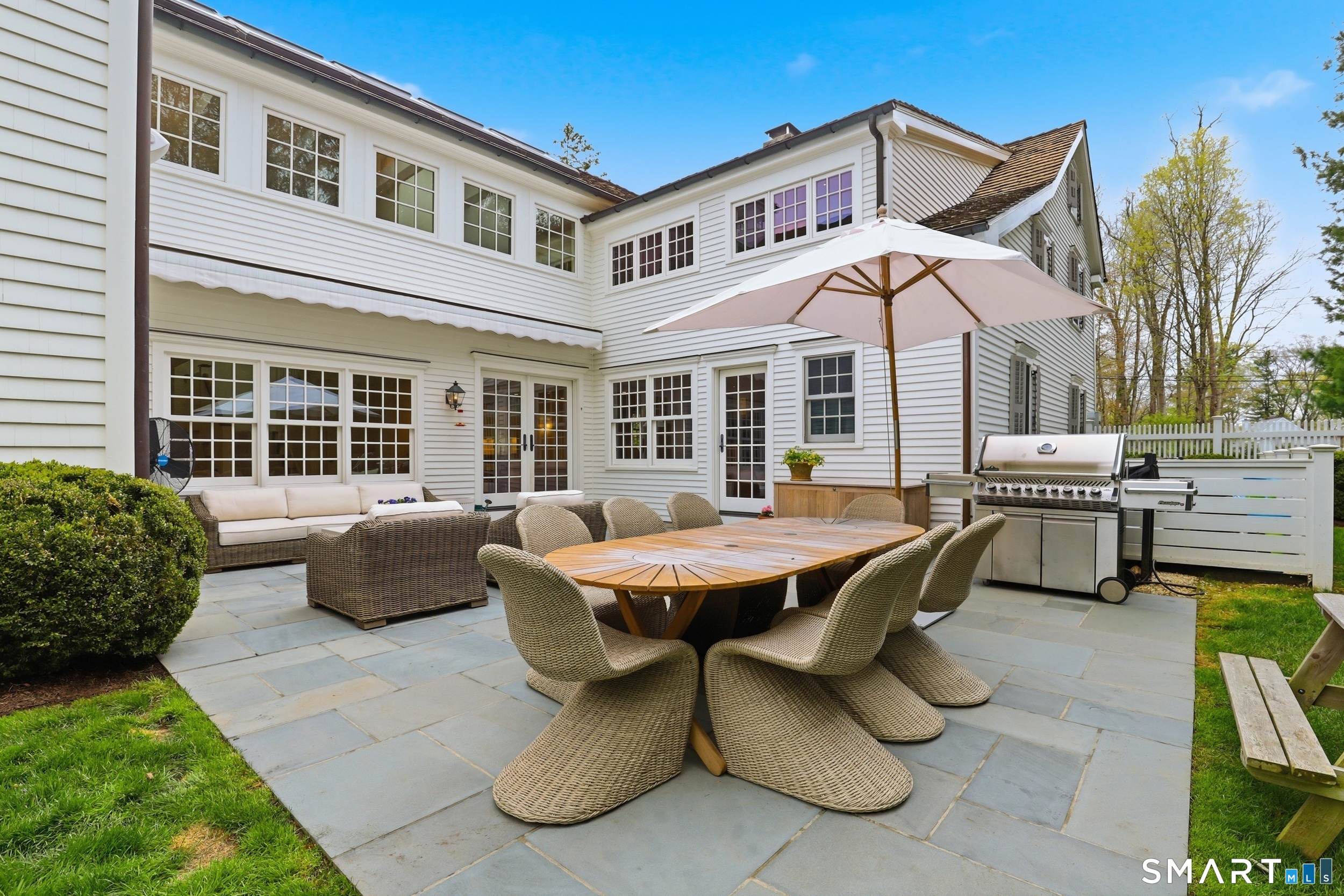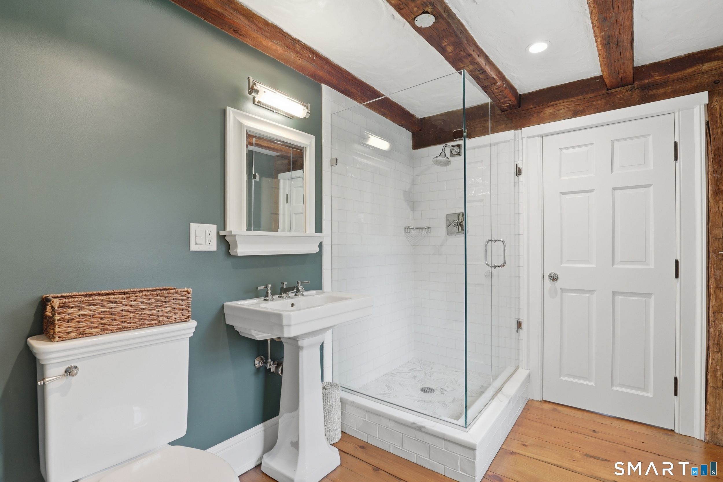 Thoughtfully renovated and expanded, this remarkable five-bedroom, four-and-a-half bath Colonial offers a refined blend of historic character and modern sophistication. Reimagined by acclaimed architect Bo Malpass, the home showcases original details like exposed antique beams, wide plank wood floors, stone fireplaces, and brick accents, all complemented by a refined, cohesive design with timeless finishes throughout. Light-filled interiors flow effortlessly, anchored by a stunning marble kitchen and tastefully updated baths, creating an inviting setting for both everyday living and elevated entertaining. French doors enhance the connection to the outdoors while filling the home with natural light. The spacious primary suite is paired with beautifully appointed secondary bedrooms, offering both comfort and easy livability. Set on private, professionally landscaped grounds with a pool, the property enjoys a prime location close to town, train, beaches, Great Island, and Darien's highly regarded schools. A truly special offering, this turnkey home effortlessly blends historic character with modern refinement.
