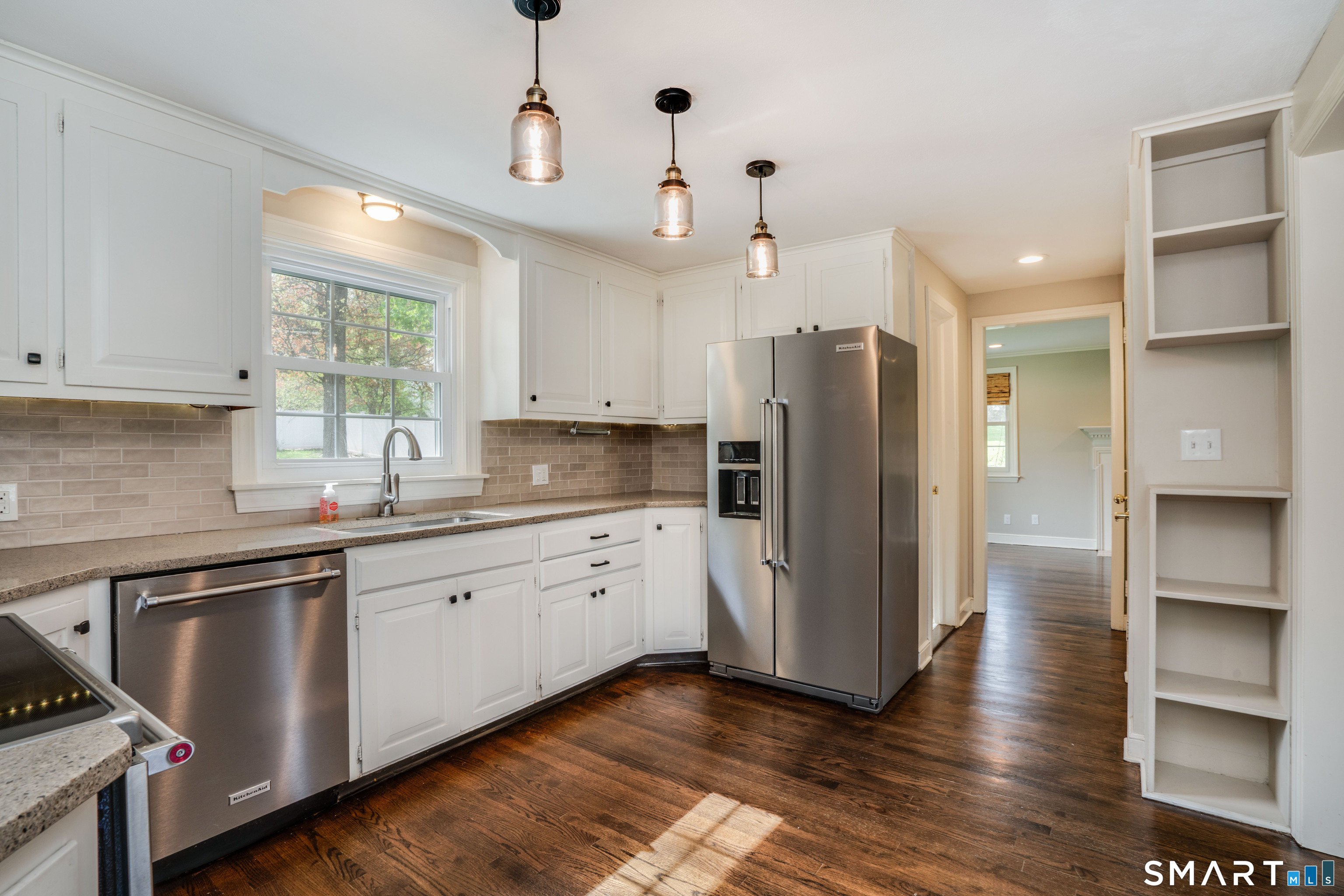 What a find! Welcome home to 25 Meadow Farms Road in West Hartford. This exceptionally well maintained home has 1570 square feet of living space plus an additional 345 square feet in the fantastic lower level. With hardwood floors throughout the home along with updated spaces around every corner, this Colonial Style home should not be missed. Your main level features a spacious living room with recess lighting, a fireplace and convenient built in cabinets. The kitchen is open to the dining room making a great space for dining and entertaining. With granite counters, stainless steel appliances and 2 pantry closets, this space is ready to satisfy all of your cooking needs. Off the kitchen and connecting to both the garage and the large and fully fenced in back yard, is an awesome mudroom. This is a dream mudroom with heated floors, cabinets storage and slate flooring. A half bath rounds off the main level. Upstairs are three bedrooms and a fully updated full bathroom. Downstairs is a great game room/rec room with wood floors, cooling, recess lights and a second full bathroom. There are split Air Conditioning systems throughout assuring your summers will be very comfortable at home! Other features include new windows in 2023, oil to gas conversion 2018, roof 2017, vinyl fenced in back yard and more! Come take see this right away!