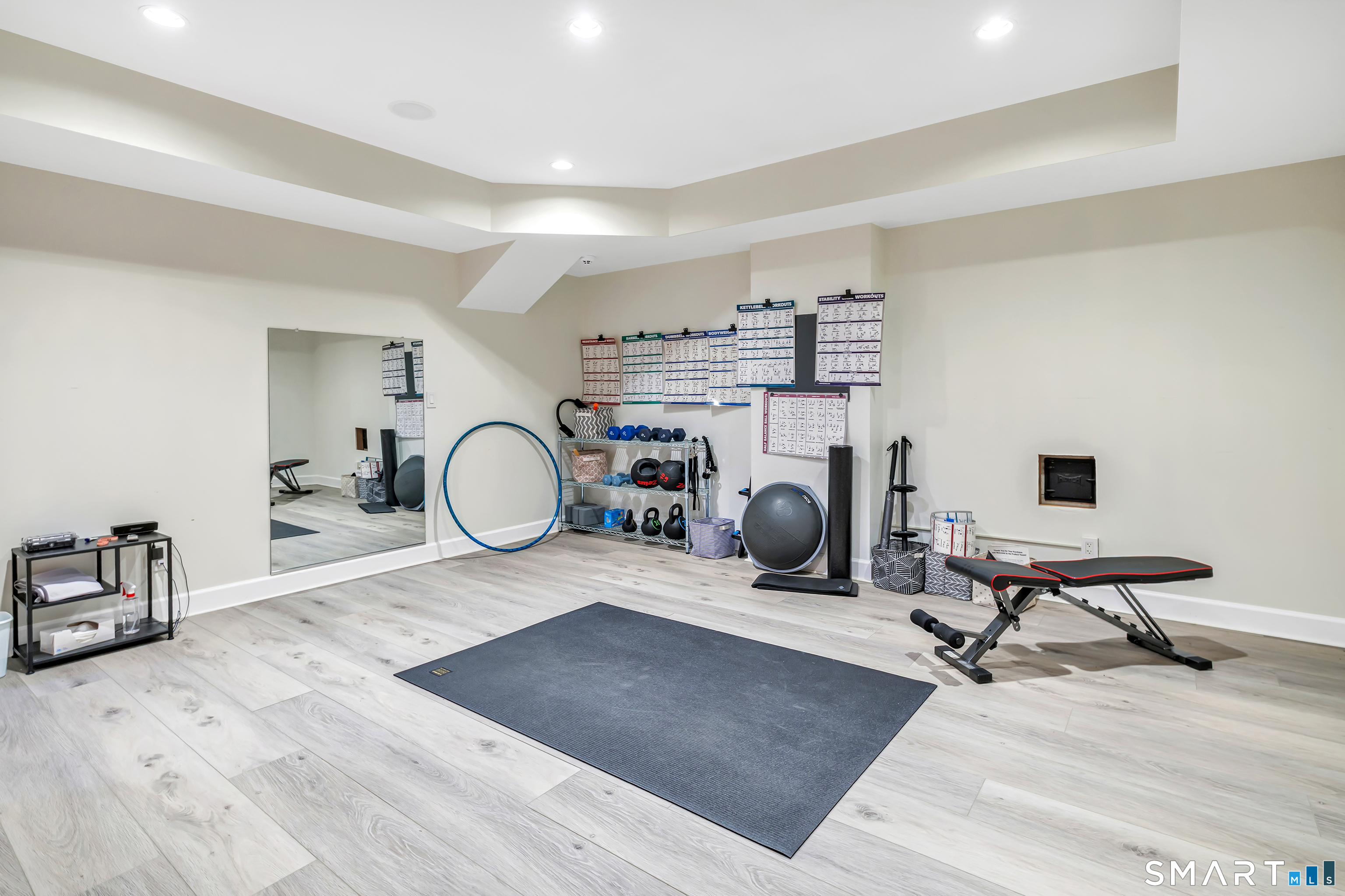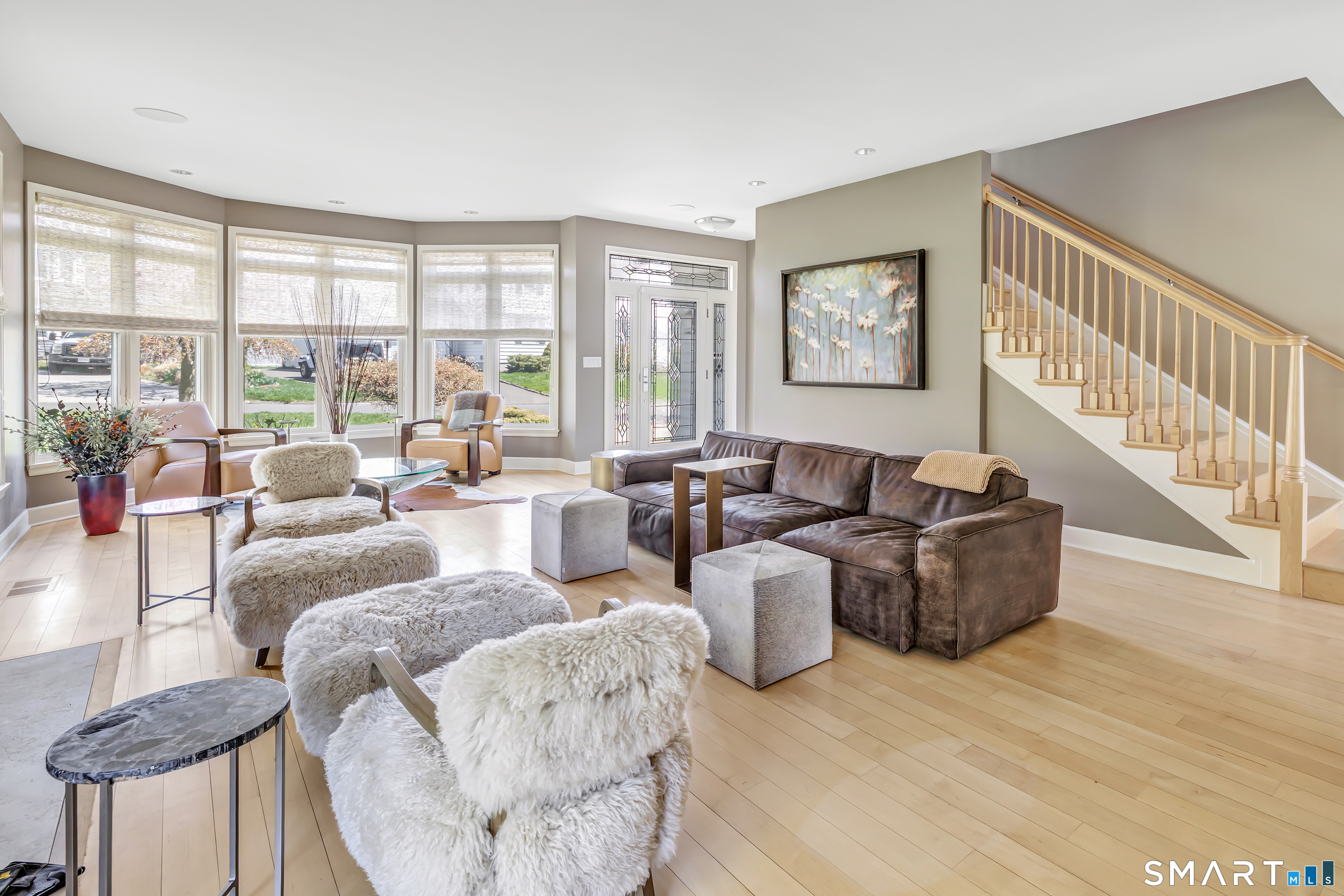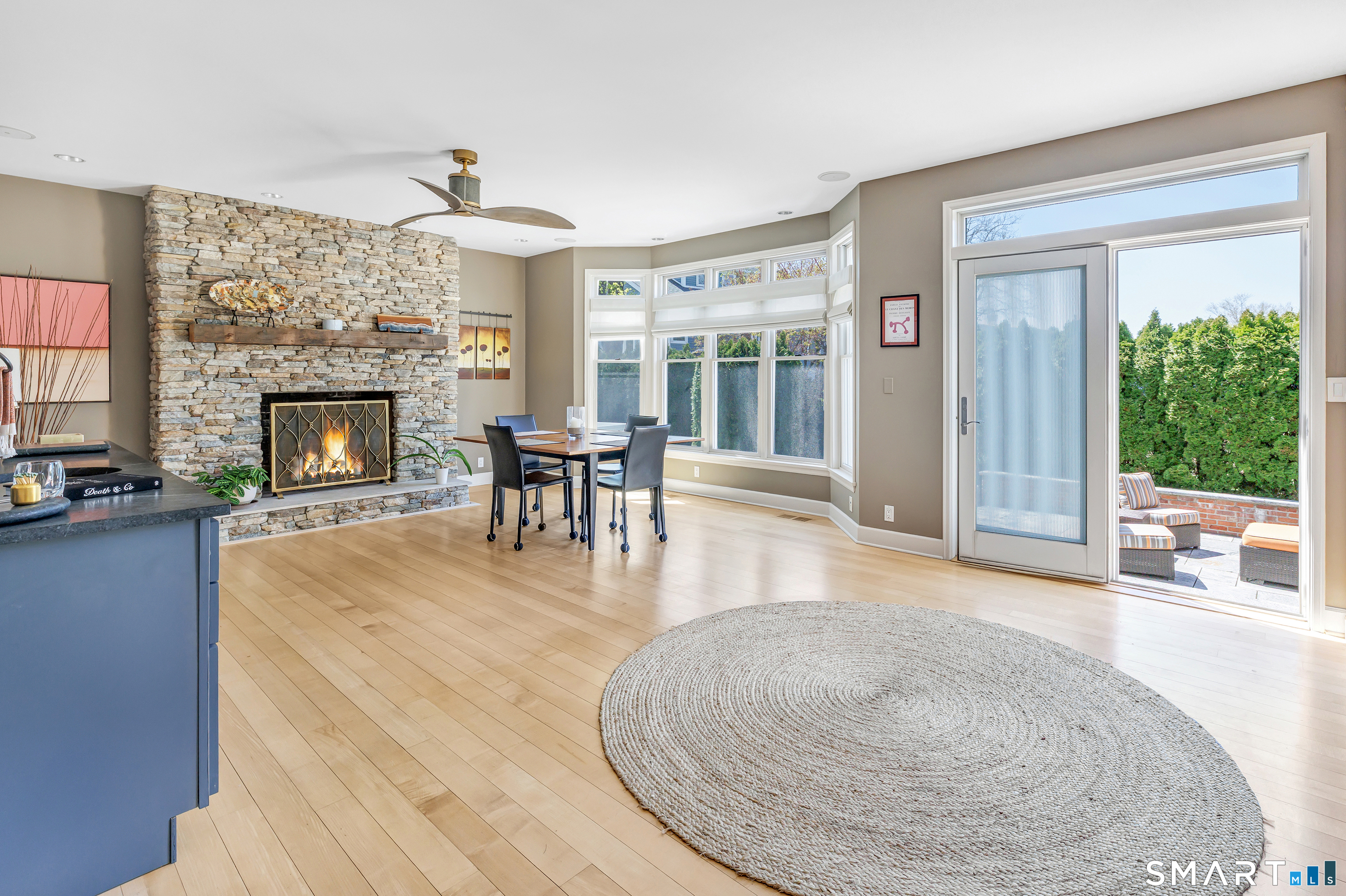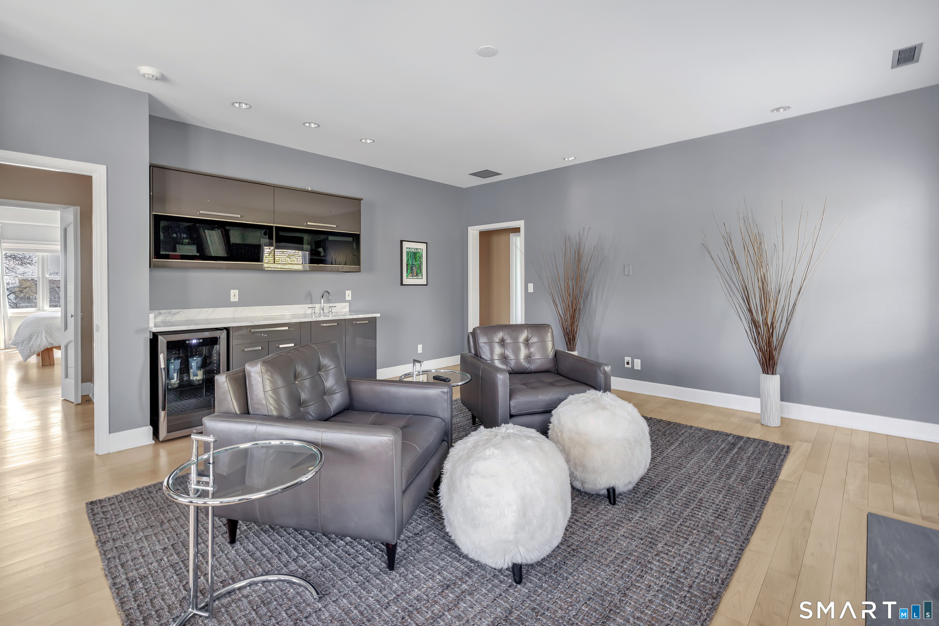 Set within the private Laurel Beach community, this exceptional coastal home offers a refined blend of luxury and lifestyle just steps from the beach. Thoughtfully designed across four finished levels, all serviced by an elevator, the home features stunning high ceilings and light filled spaces throughout. The main level includes a spacious living room with a stone fireplace, flowing into a gourmet kitchen with Wolf cooktop and double ovens, and a center island. A versatile living and dining area with a second fireplace and wet bar opens to a private stone patio with a built-in outdoor kitchen. A mudroom and powder room complete the main level. The second level offers a living area, a full ensuite bedroom with water views, two additional bedrooms, a full bath with jet tub, and a laundry room. The third level is dedicated to the primary suite with water views, built-ins, a walk-in closet and a spa bath with heated floors, towel warmer, second laundry area, soaking jet tub, walk-in steam shower, and dual private bath areas, plus a sitting room with fireplace, wet bar, and office space. The finished lower level includes a wine cellar, yoga studio, recreation space, and mechanical room with workbench. New since 2023 are three AC units along with a whole house generator. A rare opportunity in one of Milford's most desirable beach communities, just steps to the private beach, clubhouse, and newly renovated tennis and pickleball courts.