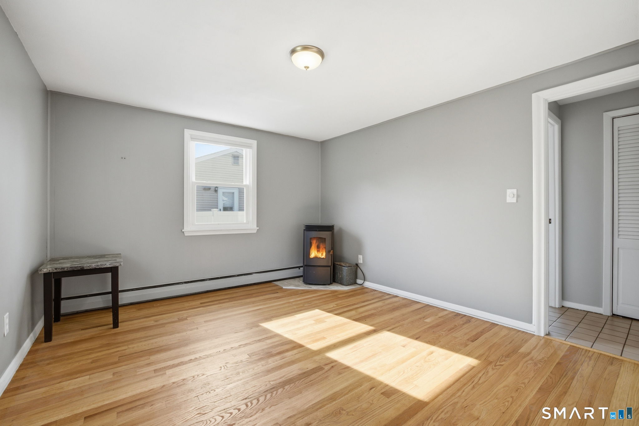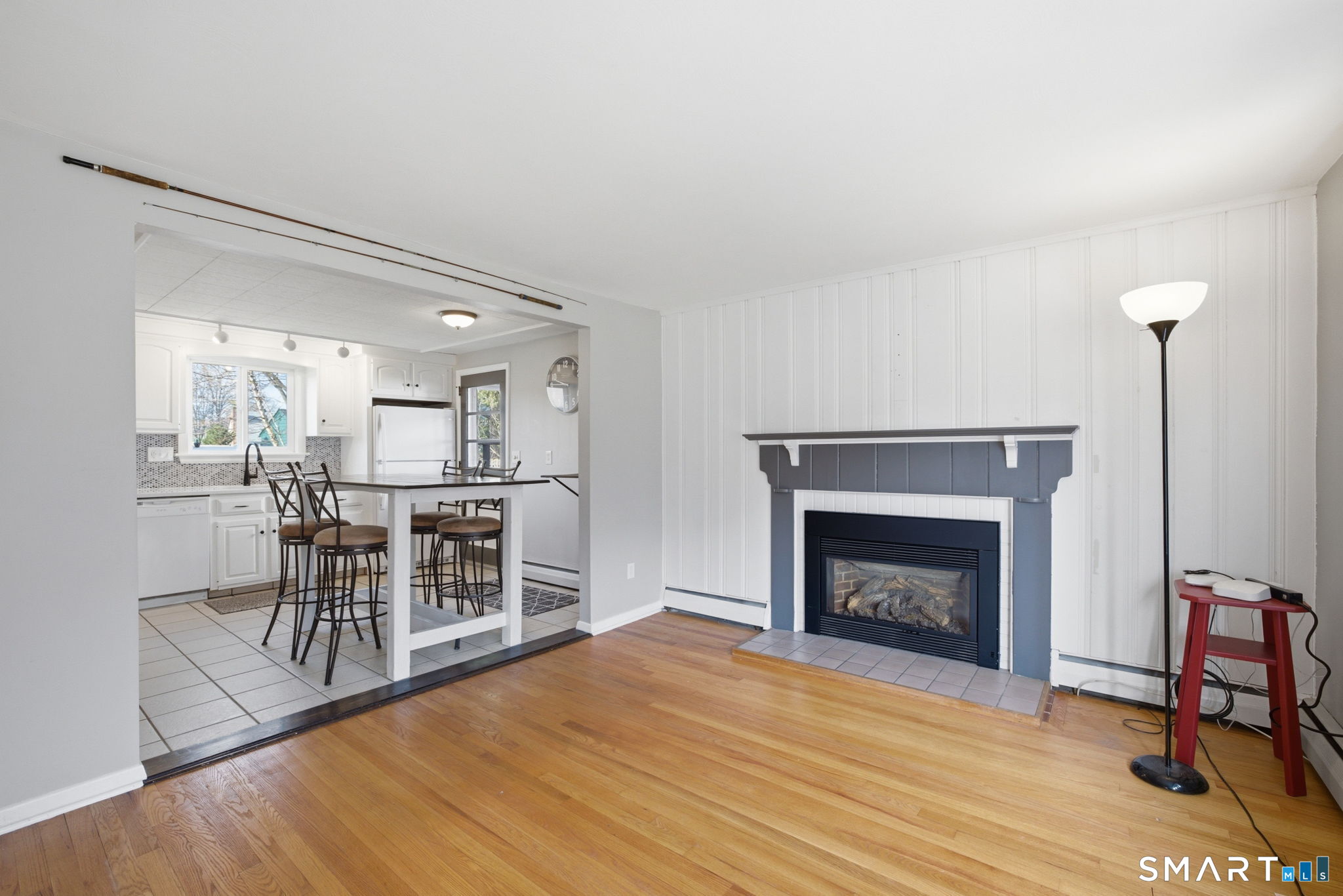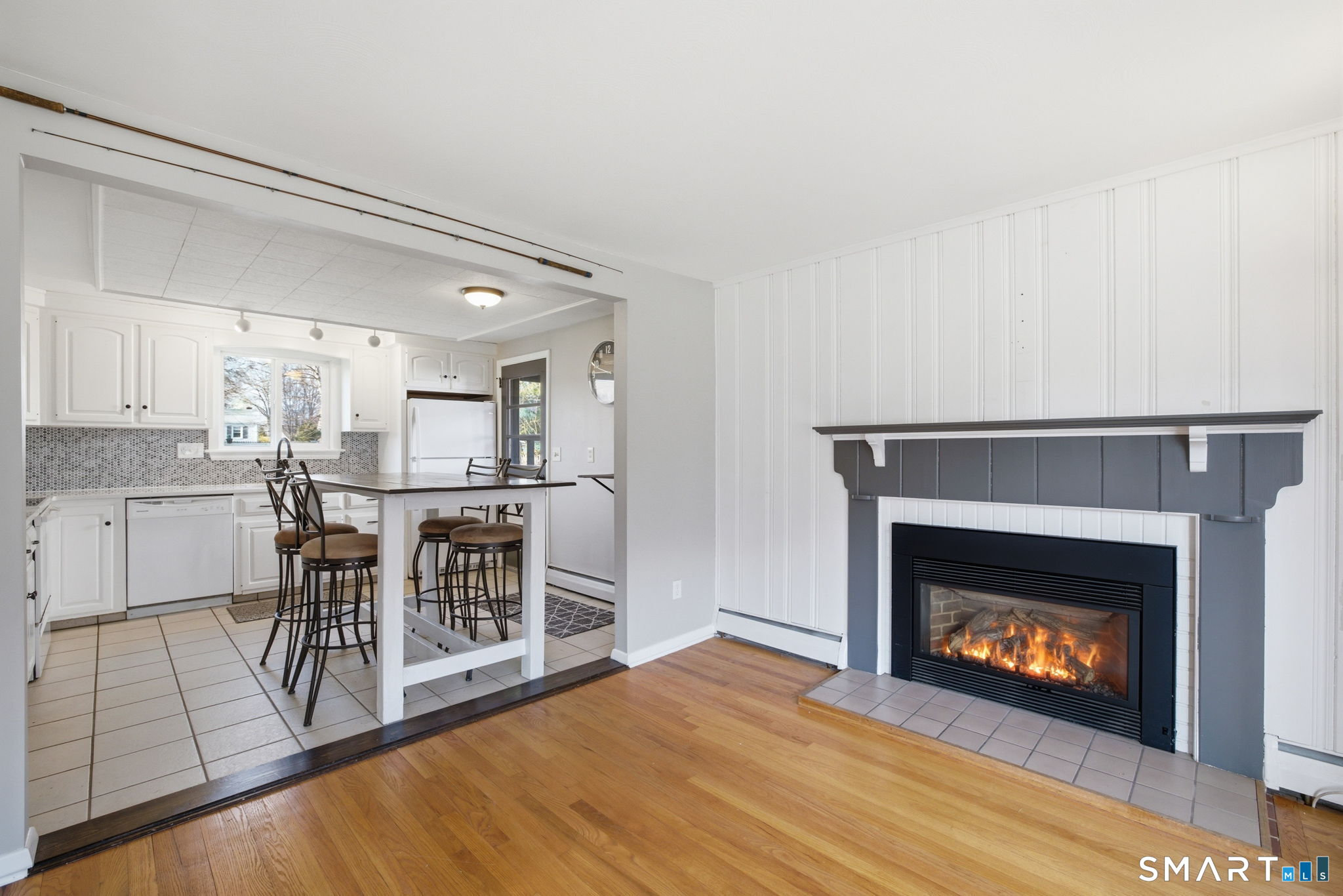Charming Cape-style home offering the perfect blend of comfort and convenience! This well-maintained property features beautiful hardwood floors throughout and a flexible open floor plan that creates a warm, inviting atmosphere. The bright white kitchen boasts classic white cabinetry and flows seamlessly into the living and dining areas-perfect for everyday living and entertaining. Enjoy year-round comfort with baseboard forced hot water heat powered by natural gas, along with a cozy gas fireplace and pellet stove for added ambiance. The home includes two full bathrooms and a finished basement, providing additional living space ideal for a family room, home office, or gym. Step outside to a flat, fully usable backyard complete with a vinyl fence, paver patio, and lovely landscaping, including a striking white birch tree and beautiful foliage. A storage shed adds extra convenience, and the large driveway accommodates approximately four vehicles. Ideally located close to everything, with easy access to highways, schools, and local amenities. This move-in-ready home has it all-don't miss your chance. Stone throw to IHCC 'The Hill' Golf Course.
