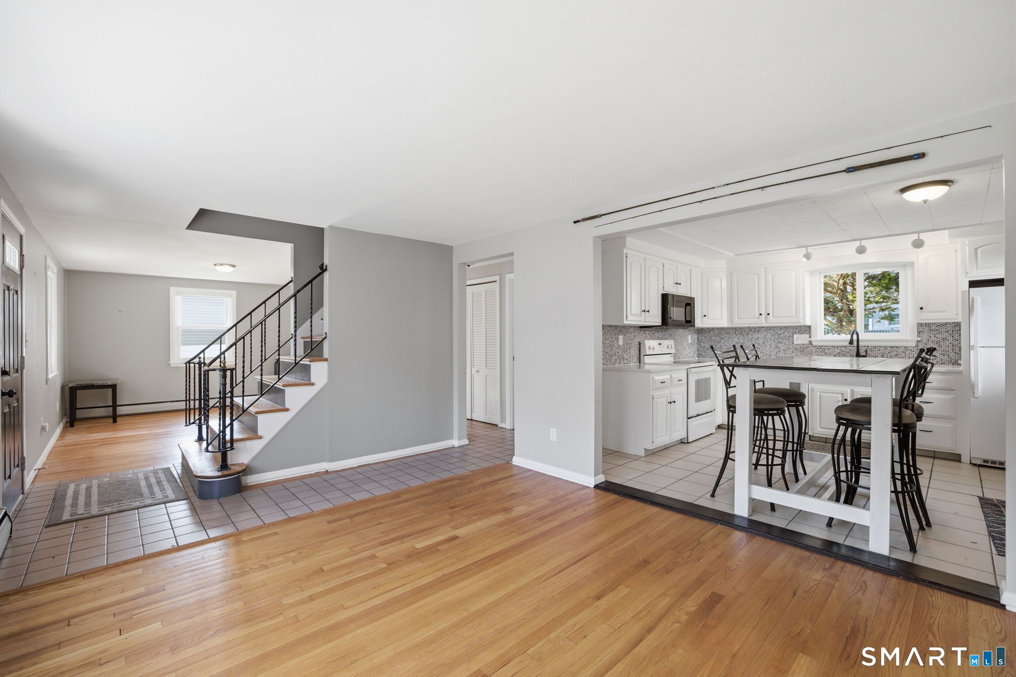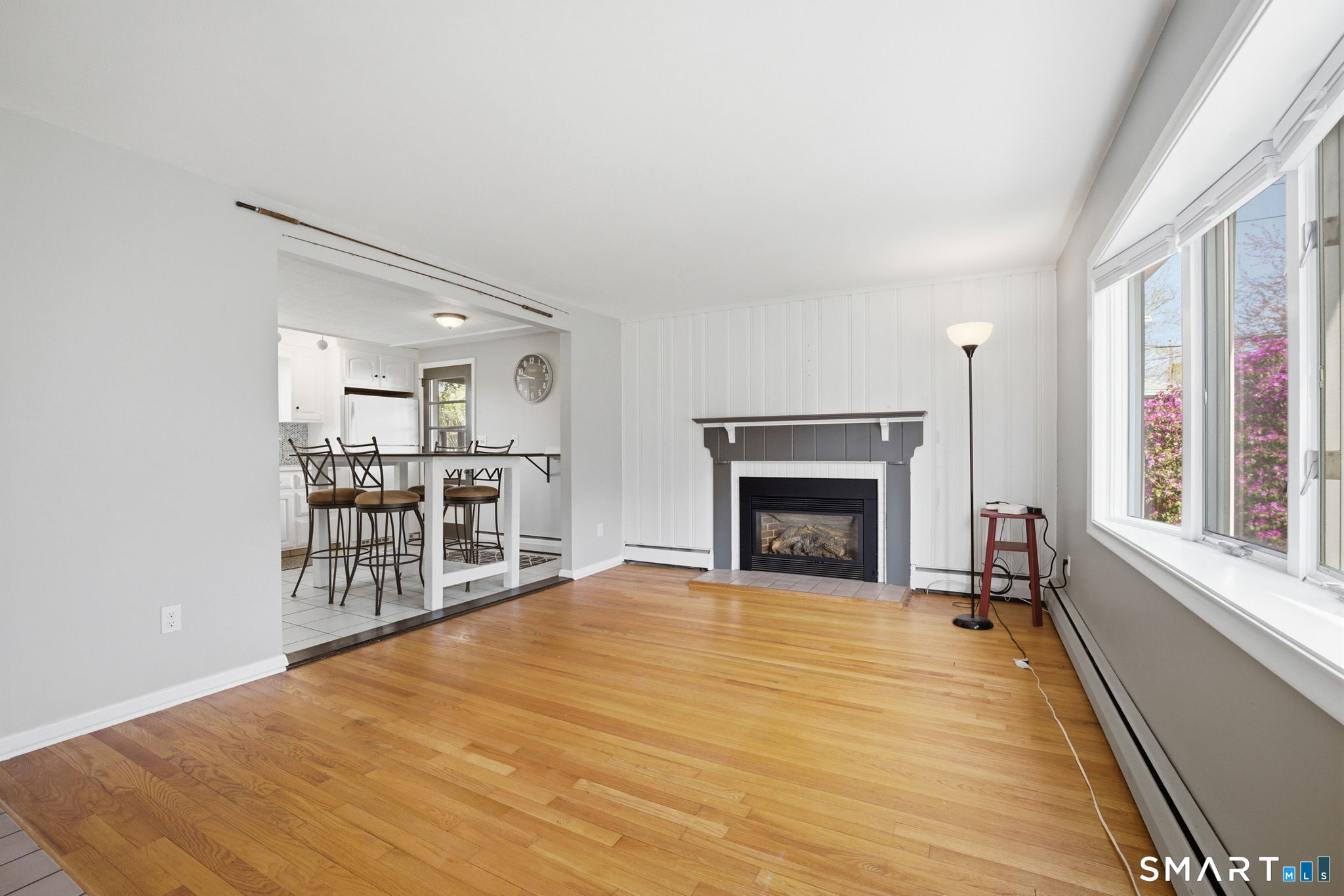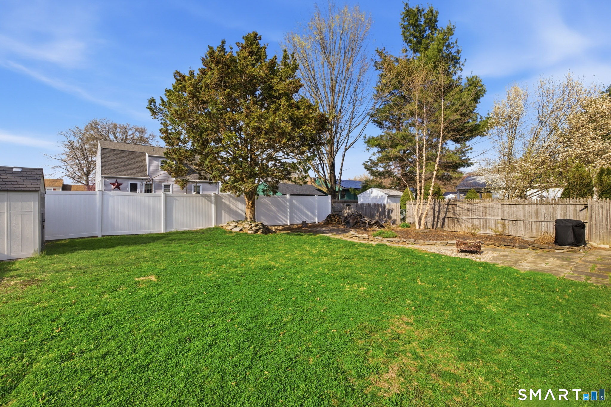 Charming Cape-style home offering the perfect blend of comfort and convenience! This well-maintained property features beautiful hardwood floors throughout and a flexible open floor plan that creates a warm, inviting atmosphere. The bright white kitchen boasts classic white cabinetry and flows seamlessly into the living and dining areas-perfect for everyday living and entertaining. Enjoy year-round comfort with baseboard forced hot water heat powered by natural gas, along with a cozy gas fireplace and pellet stove for added ambiance. The home includes two full bathrooms and a finished basement, providing additional living space ideal for a family room, home office, or gym. Step outside to a flat, fully usable backyard complete with a vinyl fence, paver patio, and lovely landscaping, including a striking white birch tree and beautiful foliage. A storage shed adds extra convenience, and the large driveway accommodates approximately four vehicles. Ideally located close to everything, with easy access to highways, schools, and local amenities. This move-in-ready home has it all-don't miss your chance. Stone throw to IHCC 'The Hill' Golf Course.