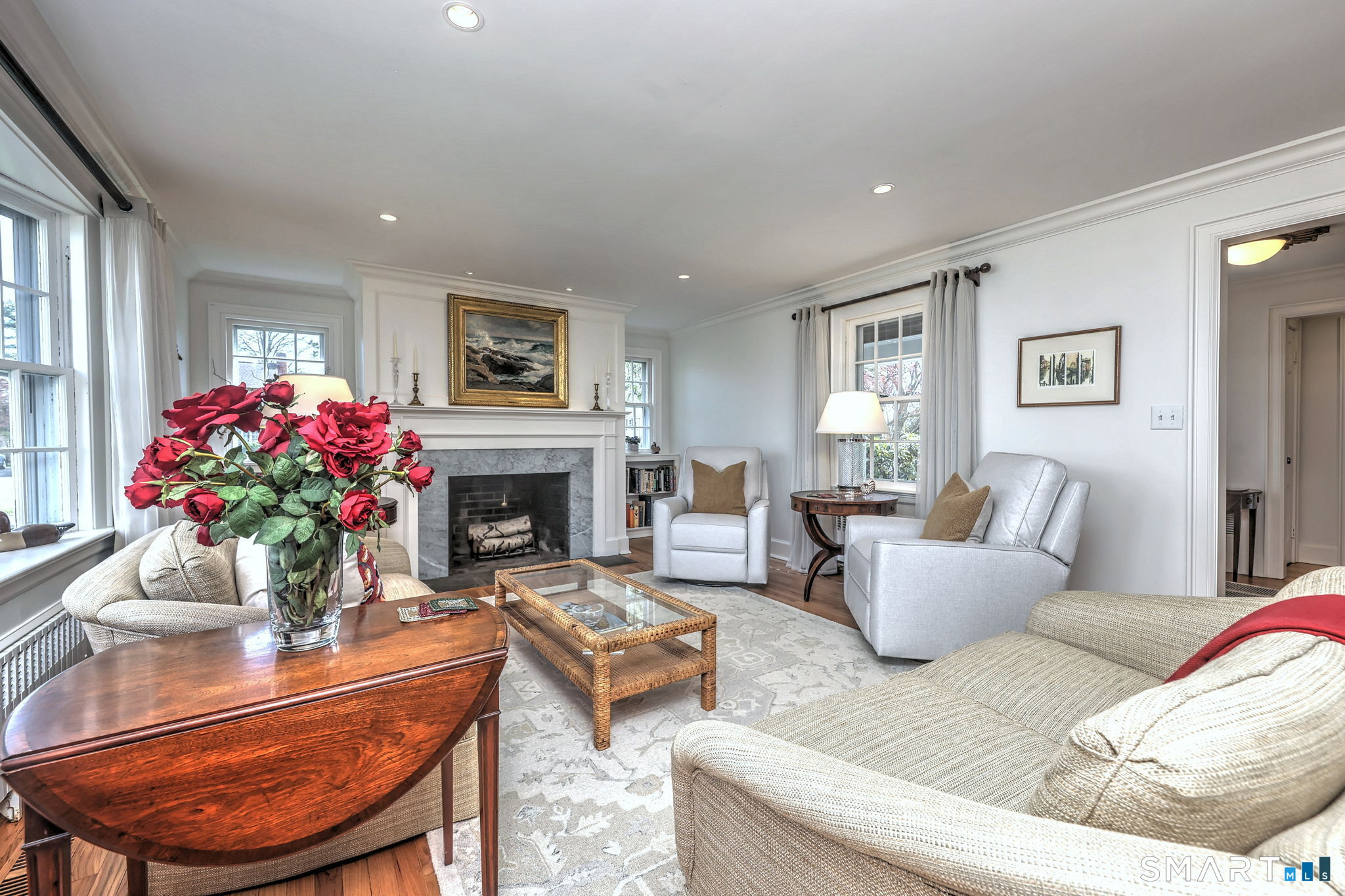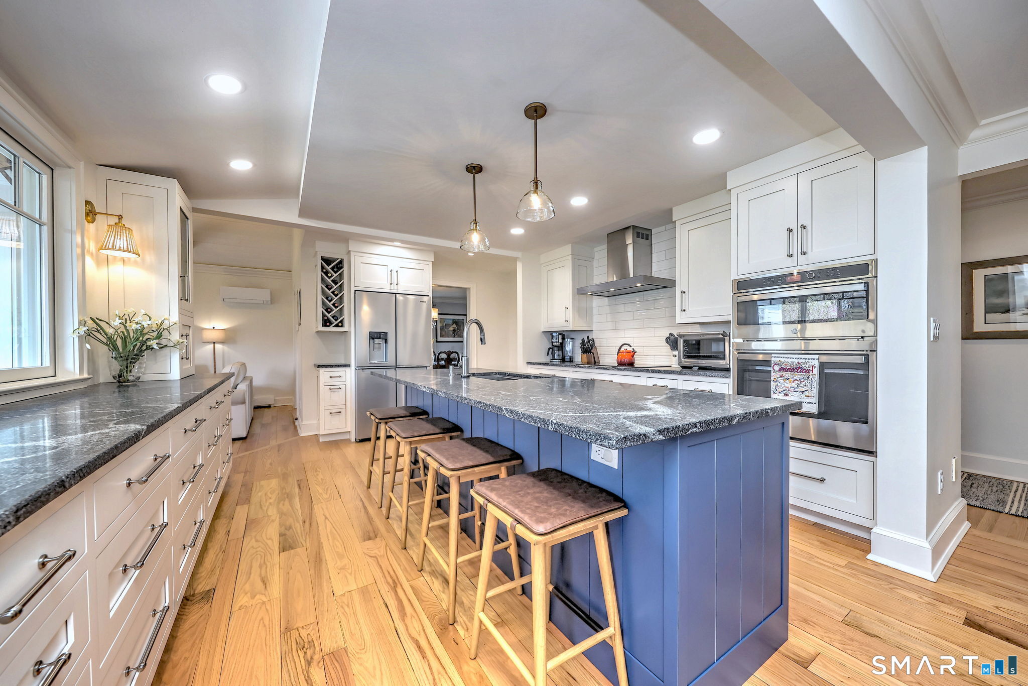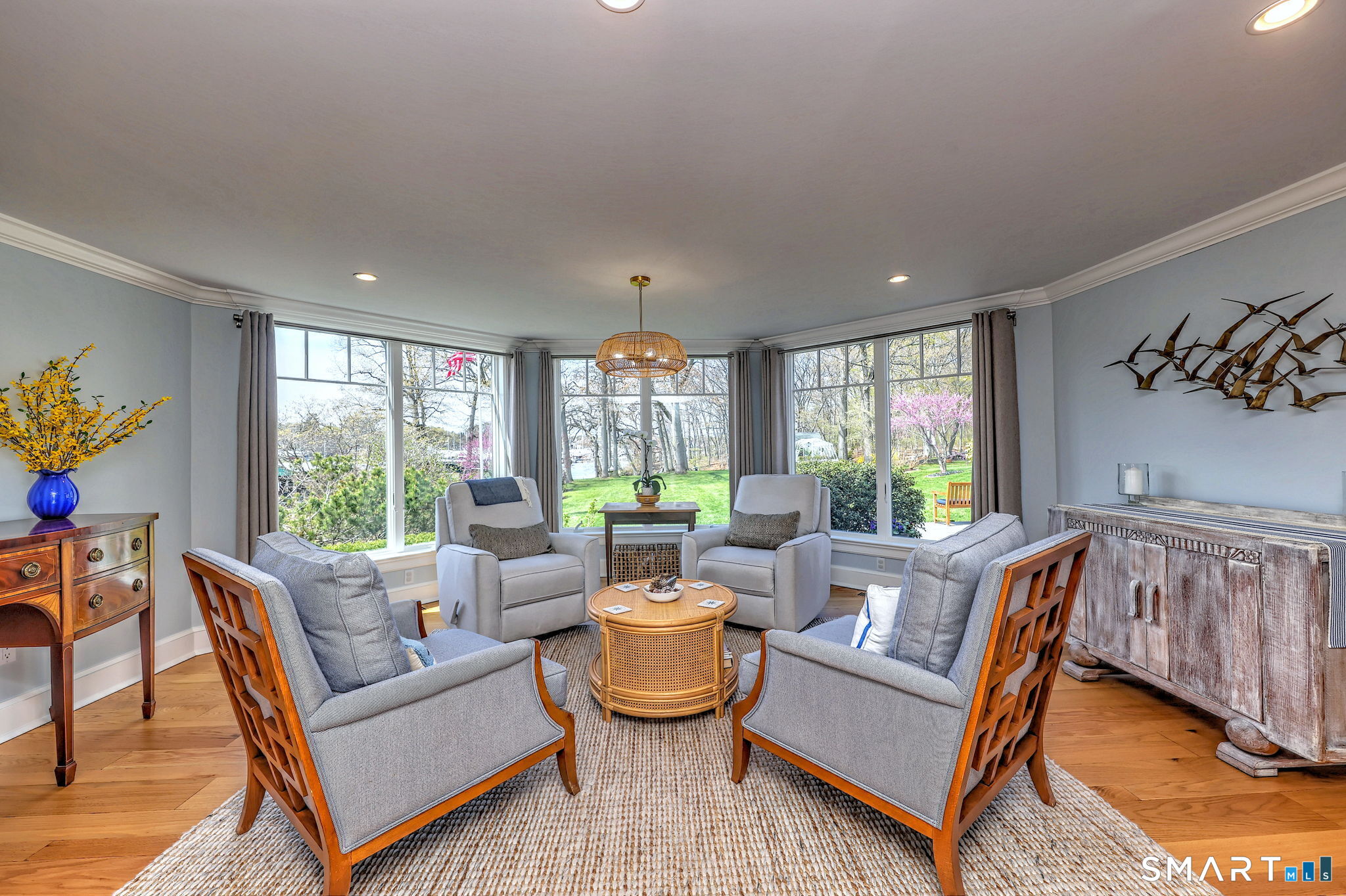 Set along a picturesque stretch of the Harbor in one of Milford's most desired neighborhoods, 77 Carrington Ave offers a rare blend of timeless architecture, privacy, and updated modern luxury. Framed by a continuous parade of vibrant blooms from spring through autumn, this exceptional property offers a serene, retreat-like setting with beautiful views of the harbor. Enjoy spectacular sunsets over the water, all while remaining just minutes from downtown Milford's vibrant shops, restaurants, and waterfront. The residence welcomes you with a light-filled interior designed for both elegance and ease. A thoughtful, free-flowing layout connects formal living and dining rooms - ideal for entertaining - with inviting casual spaces suited to everyday living. The beautifully designed and well-appointed kitchen serves as the heart of the home, featuring high- end appliances and a seamless flow to the sunroom, family room, and multi-level indoor and outdoor gathering spaces. Upstairs, unwind in the tranquil primary suite with a vaulted ceiling, two walk-in closets, and a spa-like bathroom. Additional bedrooms in a separate wing ensure comfort and privacy for everyone. With nearly an acre of level land, complete with expansive patios and a greenhouse, this home offers a private, nature-filled sanctuary in one of Milford's most desirable coastal locations.