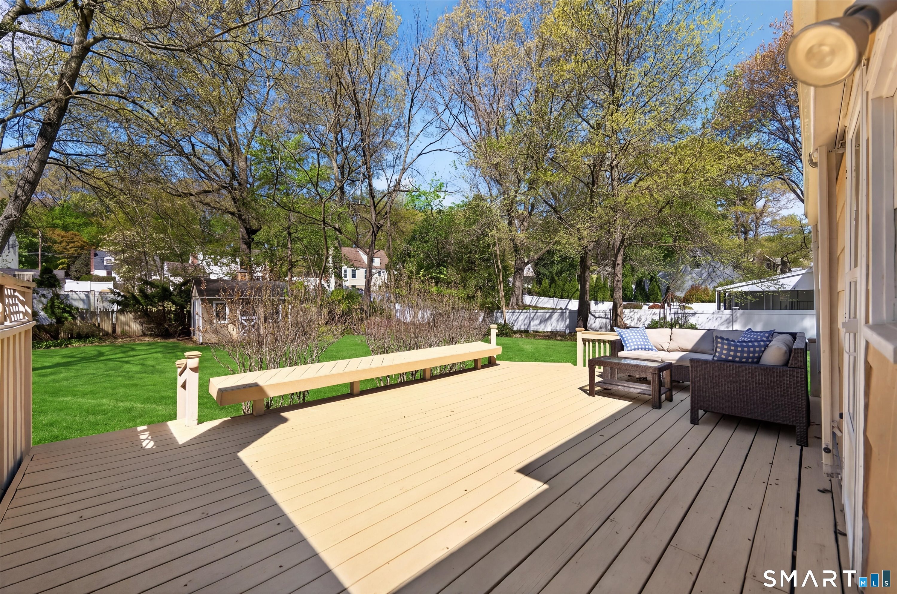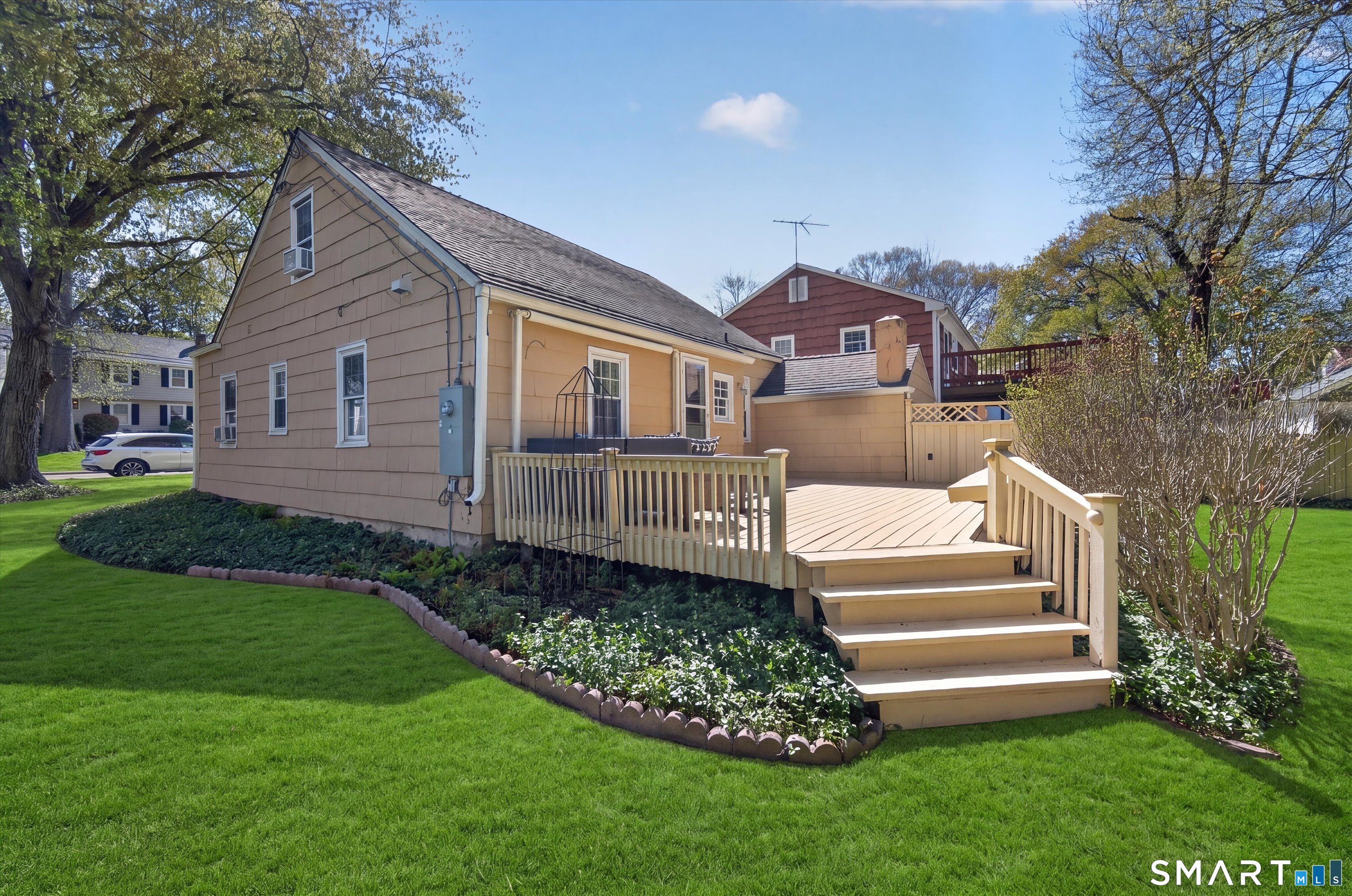 Welcome to 22 Camore Street, a charming move-in ready Cape set on a beautiful leveled lot in Stamford. This well-maintained three bedroom, one bath home offers a bright and inviting interior with hardwood floors throughout, a freshly updated kitchen featuring stainless steel appliances and quartz countertops, and the added efficiency of a tankless water heater. The home also features durable wood siding, a garage, and a spacious deck overlooking the large backyard, creating the perfect setting for outdoor entertaining, everyday enjoyment, or peaceful relaxation. Situated on a quiet street in the desirable neighborhood of Newfield, this property is within walking distance to local restaurants and offers easy access to major highways and the train, making commuting to New York City simple and convenient. This home is ideal for first-time buyers, downsizers, or anyone looking for comfort, convenience, and easy living in a sought after Stamford location.