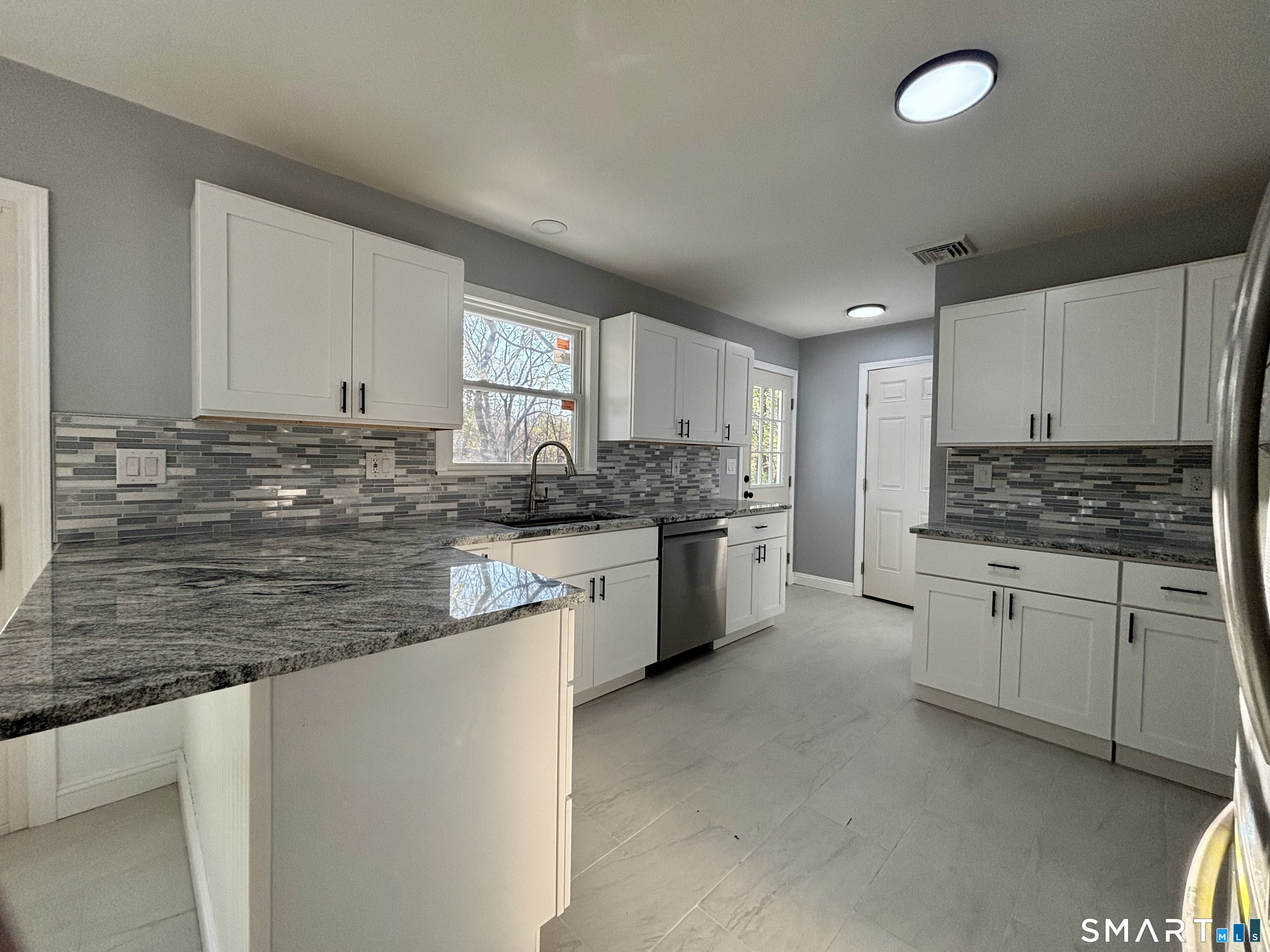 A beautifully modernized single-level home offering true turn-key living. 22 Pine St, Waterford, This 3 bedroom property has been completely redone from top to bottom, including new roof, siding, windows, heating/cooling,water heater and a stylishly updated kitchen with all new appliances and a deep farmhouse sink. The living room features a warm rear-facing fireplace and every space feels newly finished.A spacious freshly updated basement provides excellent storage or hobby space and includes a hatch exit for direct outdoor access. and the attached 2-car garage adds everyday convenience. Ideally located just minutes from Waterford's shopping,dining and community amenities.