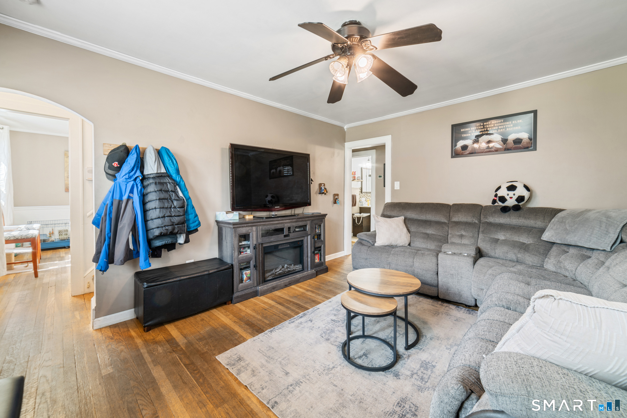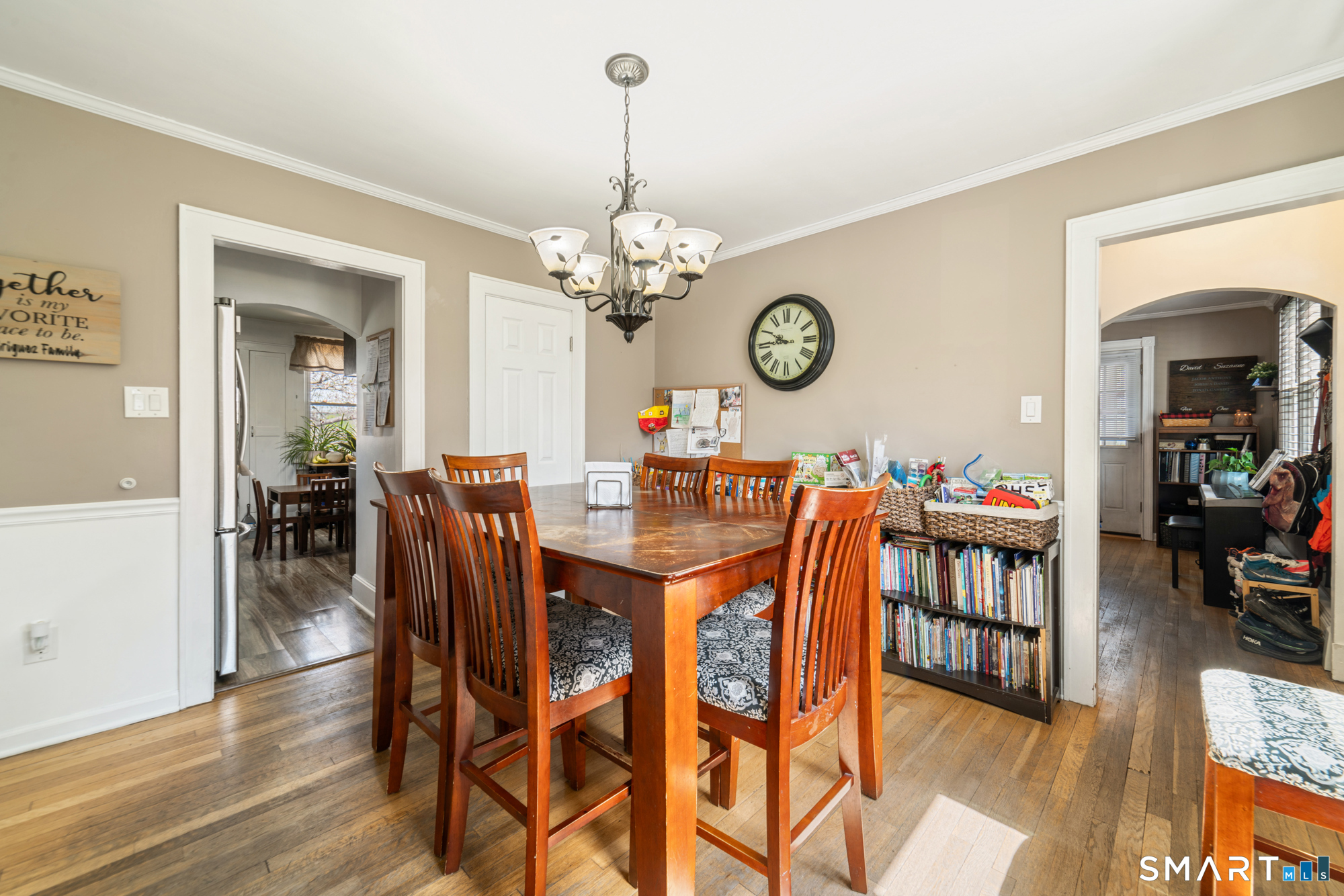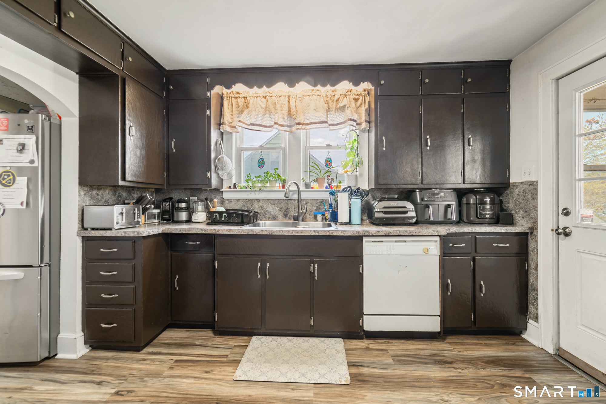 Step inside and you'll immediately notice this is no ordinary Cape. A welcoming foyer opens to a spacious living room filled with natural light from oversized windows, along with access to a relaxing screened-in side porch-perfect for morning coffee or evening unwinding. The home features a beautifully sized kitchen with wood cabinetry and abundant storage, ideal for both everyday living and entertaining. A formal dining room with classic wainscoting adds character and charm. The main level also includes a full bathroom with a newer tub. Downstairs, the walk-out basement offers fantastic space, including a second living area with a bar, a workout room, and a dedicated laundry area. Throughout the home, you'll find hardwood floors, along with the added value of newer windows and a newer roof. Additional highlights include an attached one-car garage, a covered patio, and a fully fenced backyard-great for outdoor enjoyment. Situated on a quiet, low-traffic road, this home offers both peace and convenience, just minutes from shopping, schools, and major highways.