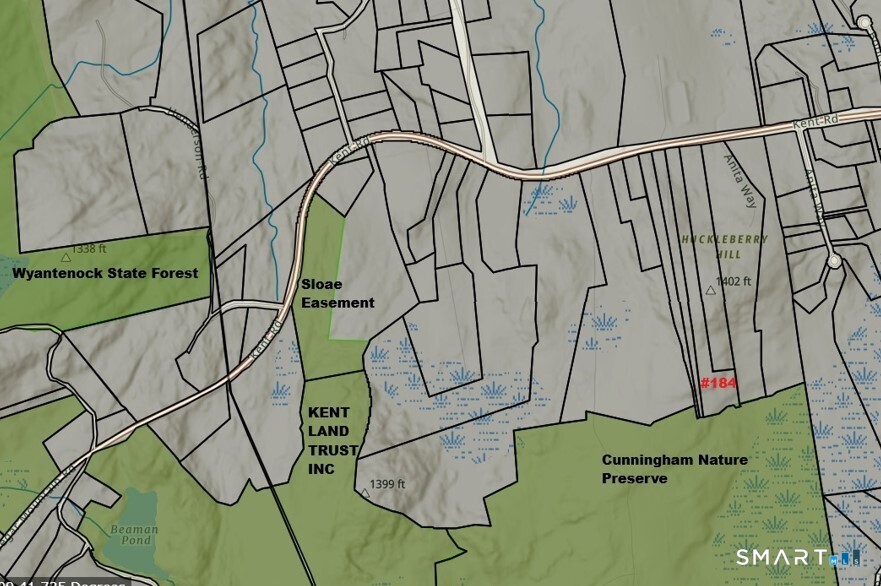 Build your private getaway on 10.56 acres of woodland located between the two quaint New England towns of Kent and Warren in beautiful Litchfield County. Abutting hundreds of acres of Land Trust. Beautiful new access road has just been completed which provides entry to the front of the property from the road. Additional 14"+ added to driveway for proper drainage. Also replaced existing drain with a new plastic pipe under the driveway. The beginning of the driveway is shared with another lot. Buyer will need to extend the driveway to the back building envelop which is very private. There is an easement on this lot to the adjacent lot (184 Kent Rd., Parcel A) Kent Rd. is a main road but the lots are long, fairly level and deep so the building site could be situated well off the road. There is 150 feet of road frontage. Close to chic shops and fine dining in New Preston and Kent. Access to the town beach on Lake Waramaug! 20 minutes to skiing at Mohawk mountain. There are no perc test available. For Sale 'As Is'