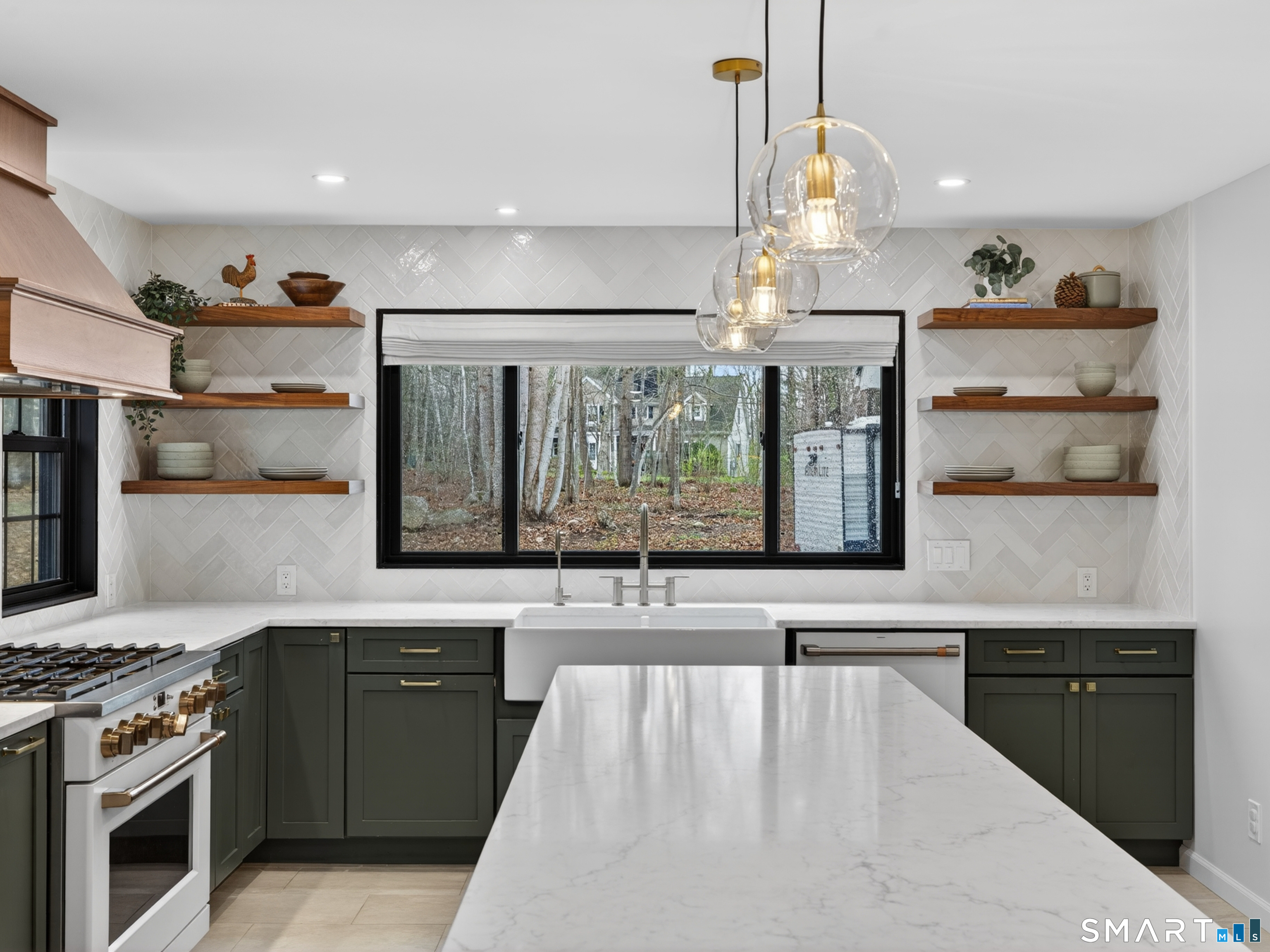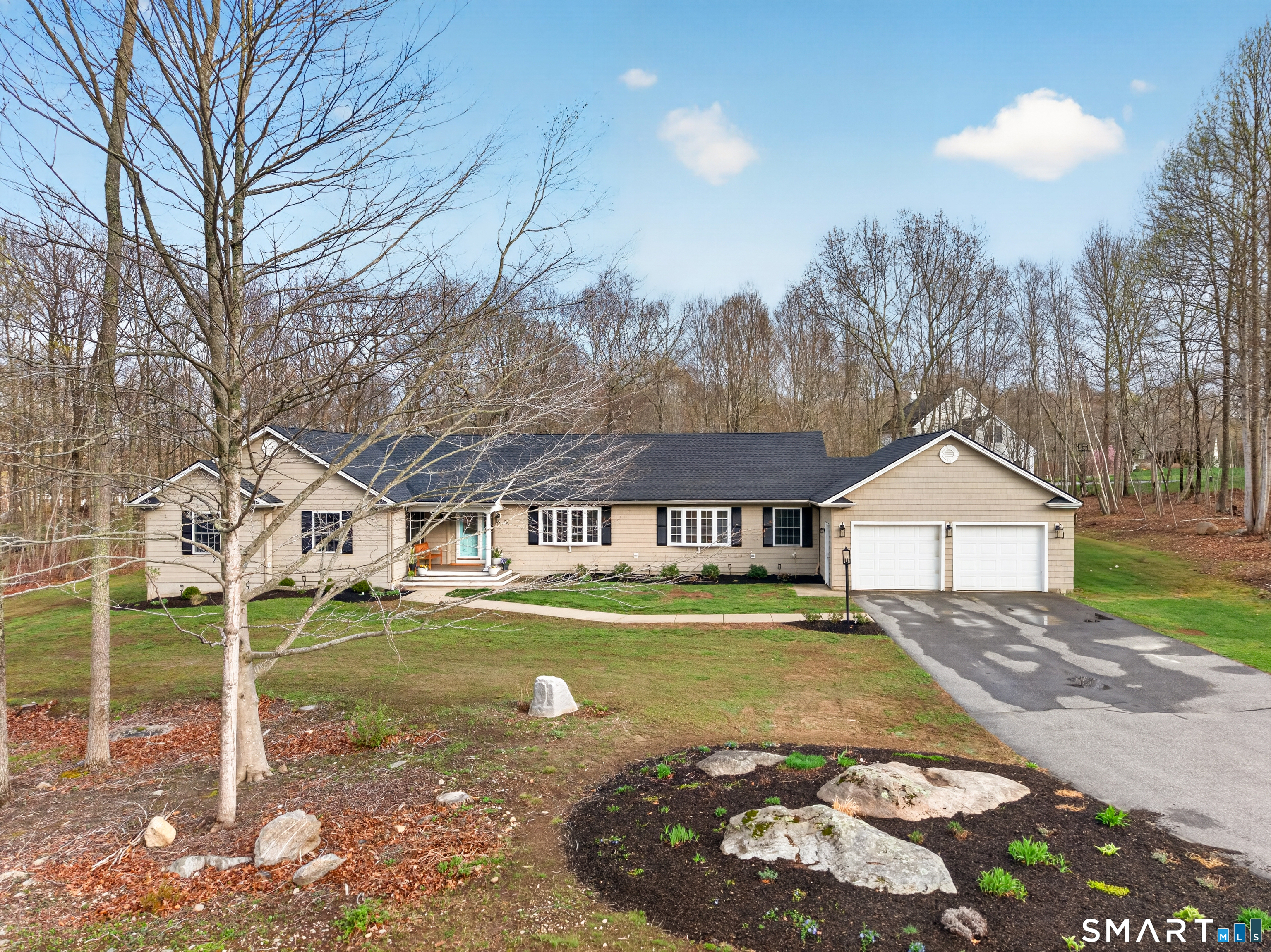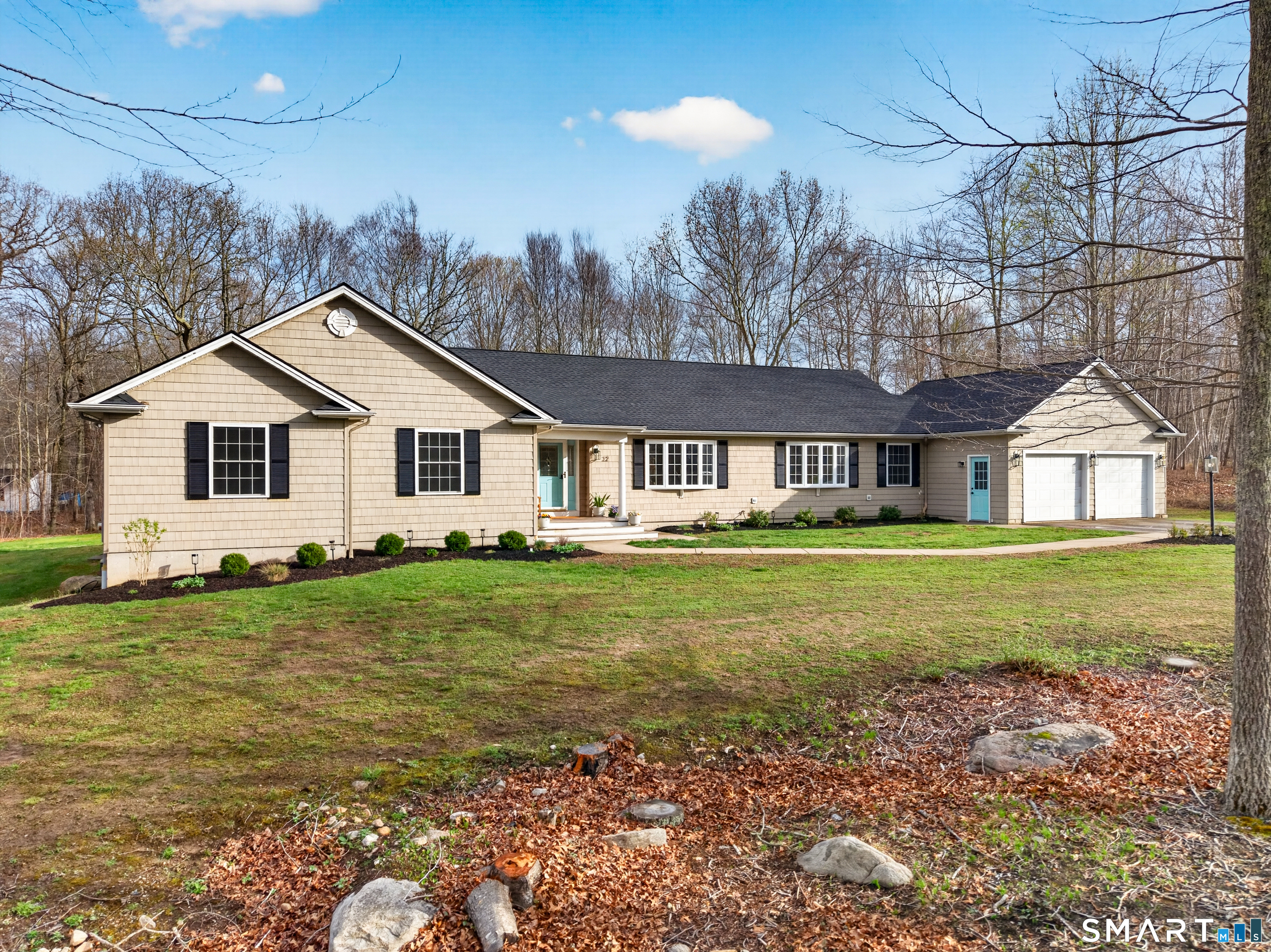 Gorgeous 4-bedroom designer Ranch with 2.5 baths and an attached 2-car garage, set on 1.38 level acres in a desirable subdivision! Offering a total of 2,828 sf, this oversized home showcases numerous upgrades and thoughtful improvements throughout. The beautifully renovated kitchen features new windows, a sliding glass door, new cabinetry including a walnut island, pantry, and floating shelves, along with a striking 39" farm sink and added gas service for the range. Outfitted with GE Cafe appliances, including a counter-depth refrigerator, 36" six-burner gas range with electric oven, and dishwasher. Kitchen opens to a dining area with direct access to the backyard through glass slider and flows seamlessly into the family room. Just off the kitchen is a formal dining room with a bowed window, complemented by a second bowed window in the spacious living room, filling the home with natural light. This well-designed Ranch offers 4 bedrooms that includes a primary suite with a walk-in closet and private full bath featuring a soaking tub, and separate shower, along with a dedicated office space. Three (3) additional generously sized bedrooms provide flexibility and comfort. This home also includes a full basement, central air, Thermopane windows, and programmable thermostats for year-round comfort.